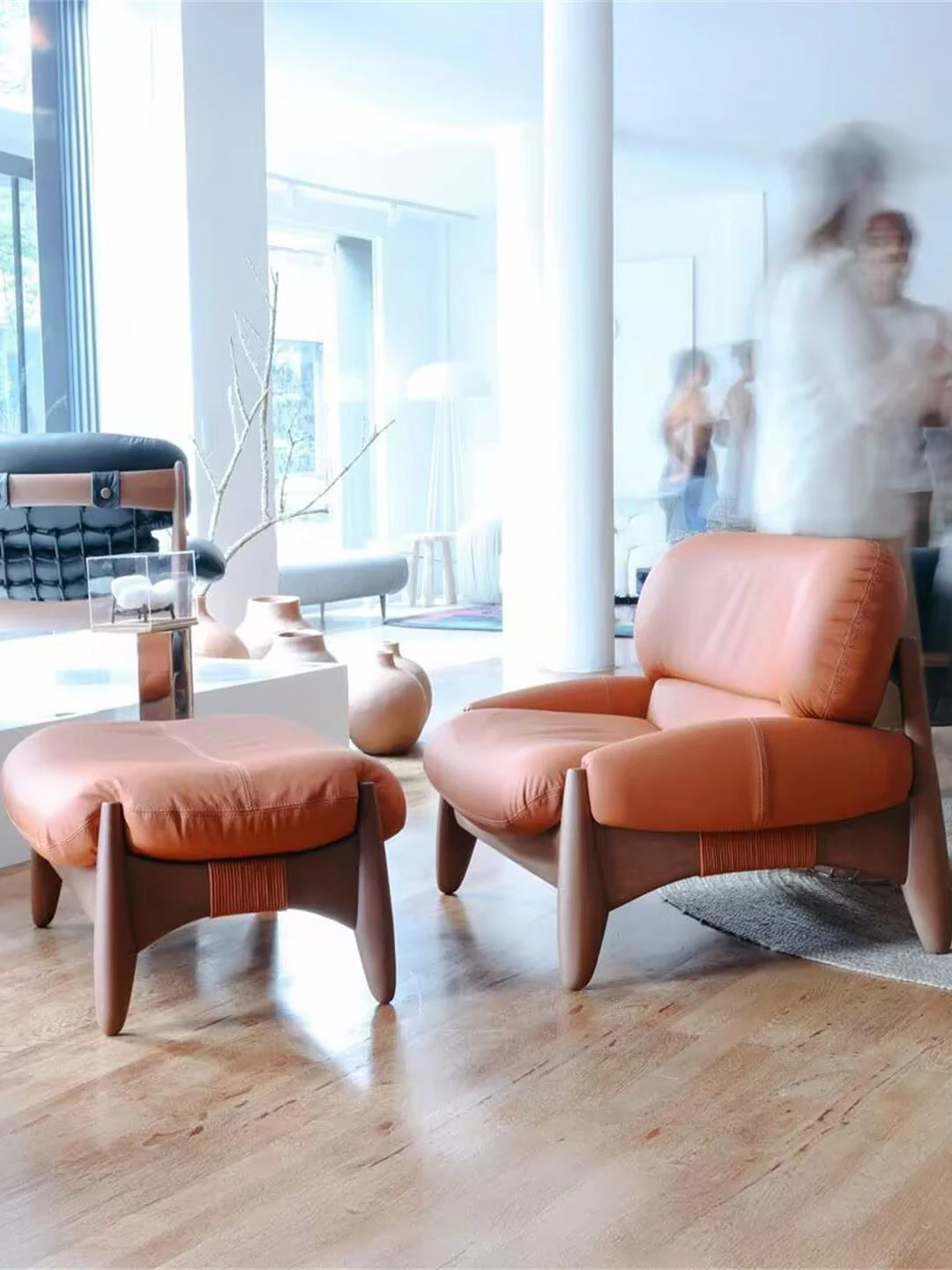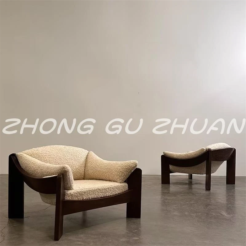 ヴィンテージ風シンプルな無垢材の別荘用談話椅子|カフェにぴったりのリラックスチェア|カニ型デザインのイタリアンスタイル一人掛けソファ。おしゃれな空間を演出し、快適なひとときを提供します!