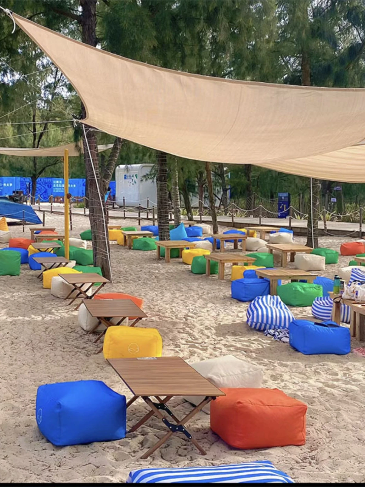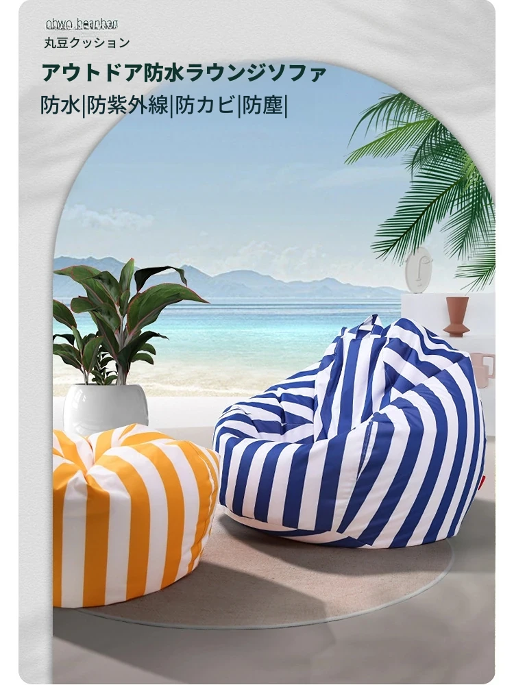 アウトドア用リラックスソファ!ビーチ・庭・キャンプ・オフィスで大活躍!室内外で使える快適なビーズバッグ。カジュアルな休息時間を楽しむための必須アイテム!