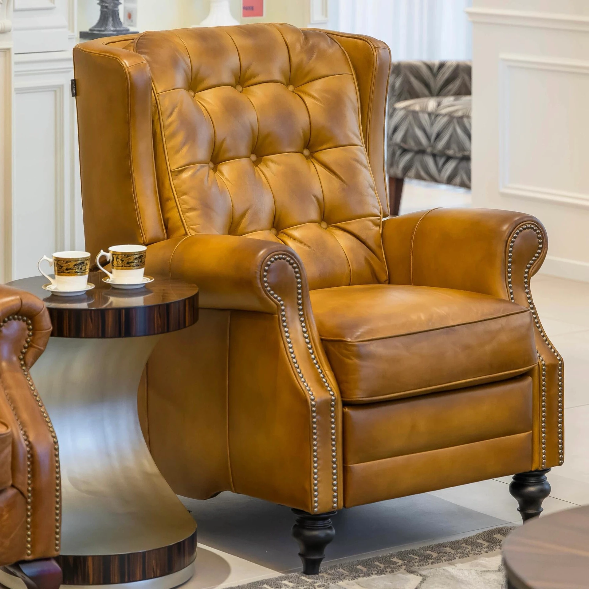 アメリカンカントリー風レトロ一人掛けソファ・オットマンセット 本革使用の快適なリラックスチェア!リビングにぴったりなスタイリッシュなデザインで、くつろぎの時間を演出します。