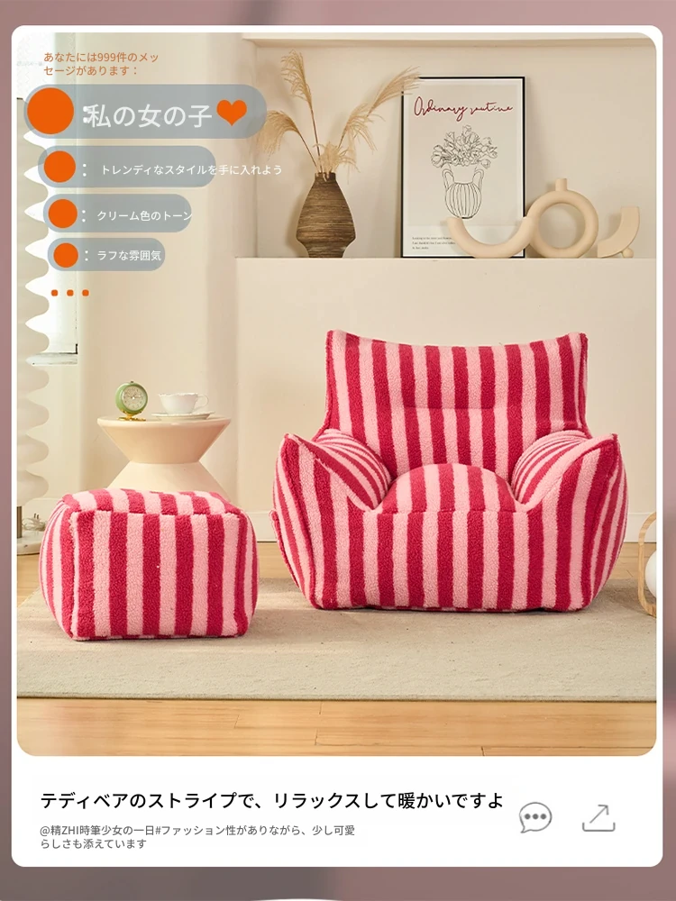 カートゥーンストライプのリラックスソファ|おしゃれな寝室・リビングにぴったり!一人用の快適なラウンジチェアで、くつろぎのひとときをお楽しみください。