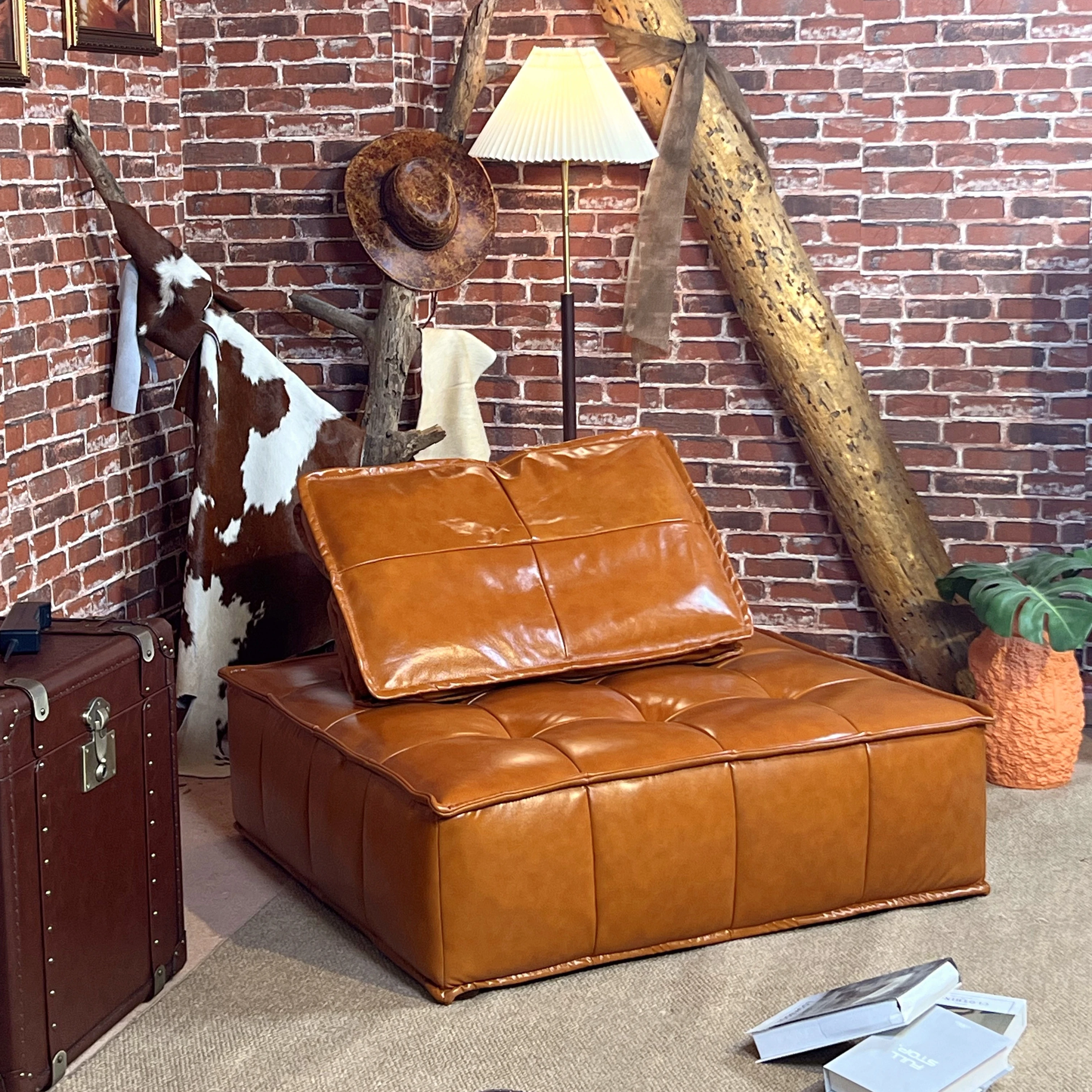 American Vintage Piedmont Sofa - Waxed Genuine Leather Single Seat, Nordic Small Space-Friendly, Retro Cube Design for Cozy Living.