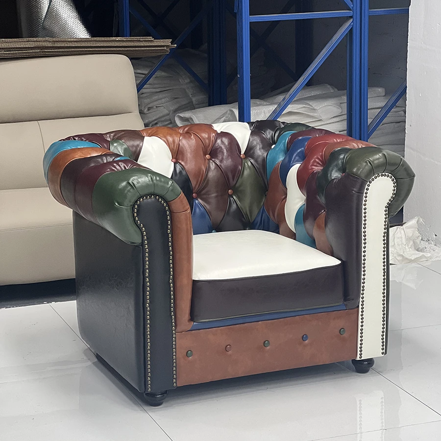 Vintage American Waxed Leather Sofa for KTV, Cigar Lounge, Clothing Stores, and Bars - Unique Color-Block Design, Perfect for Stylish Interiors!