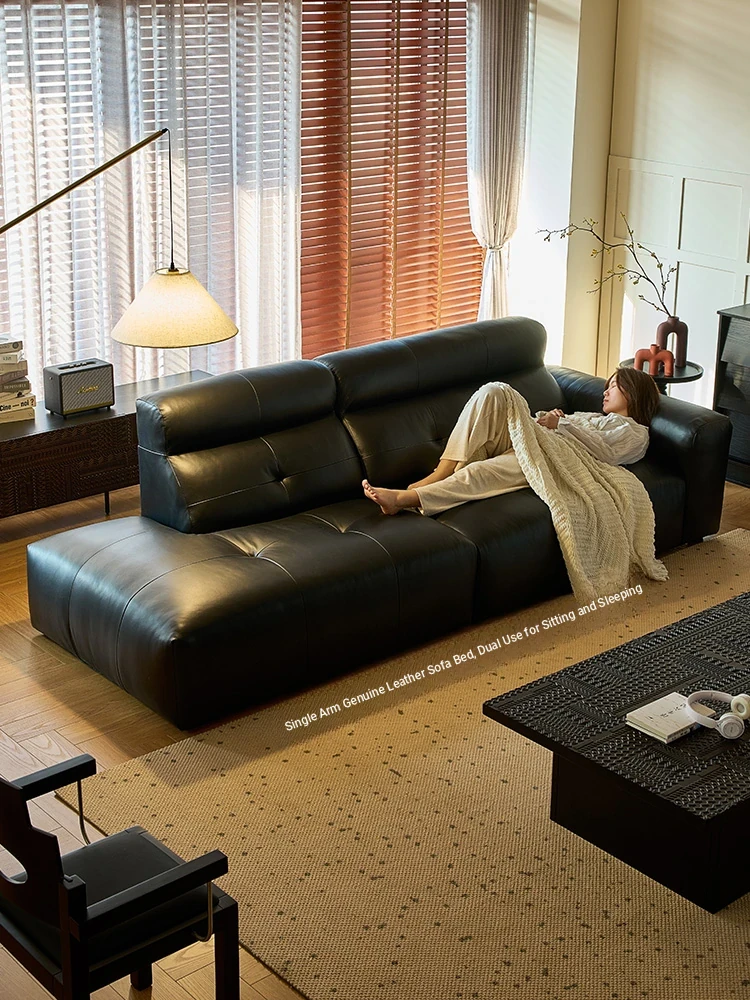 Modern Minimalist High-End Living Room Chaise Lounge - Luxury Genuine Leather Sofa with Top Grain Cowhide for a Stylish Contemporary Living Space