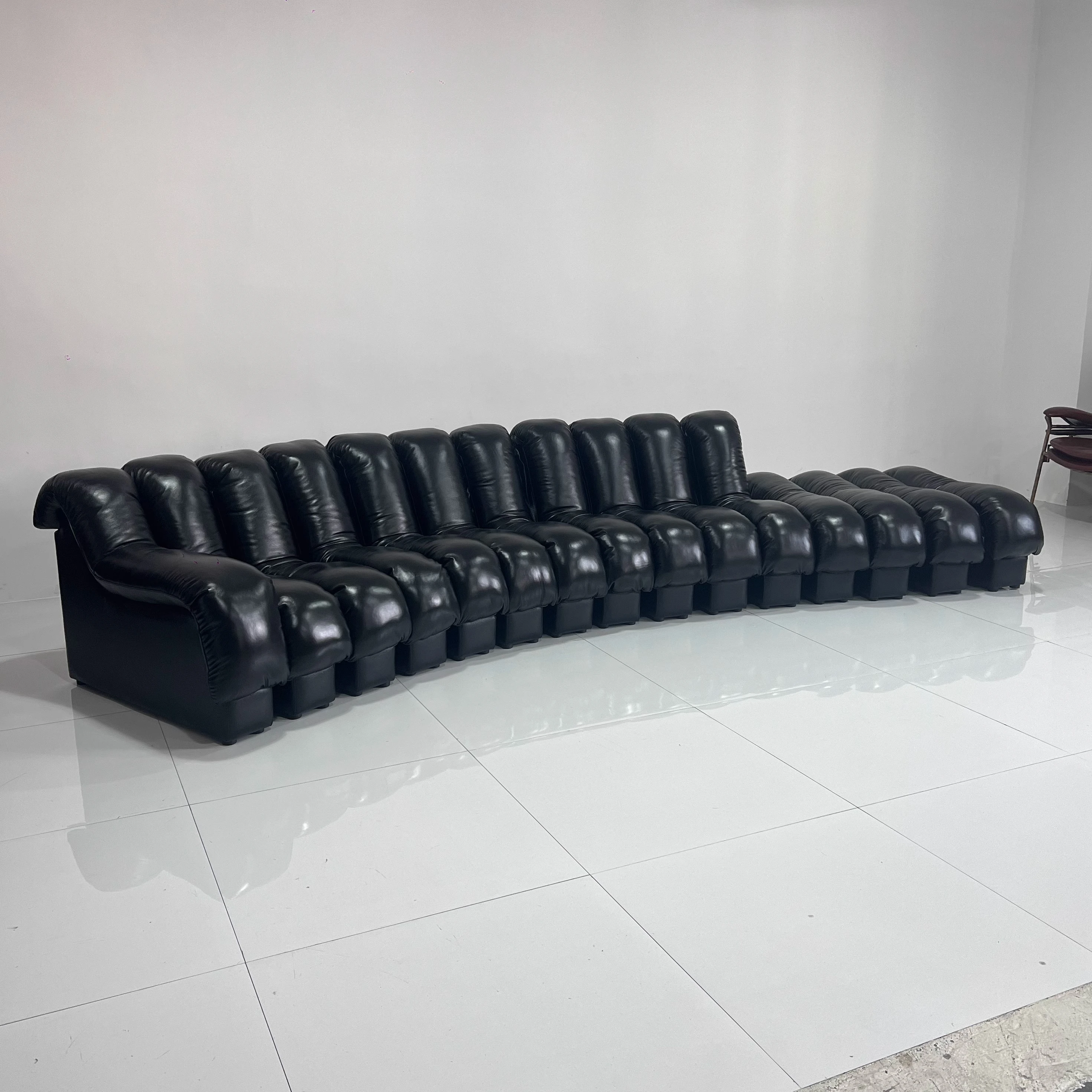 Vintage Italian Claire Sofa - High-End Black Genuine Leather with Waxed Finish, Perfect for Designer Living Rooms