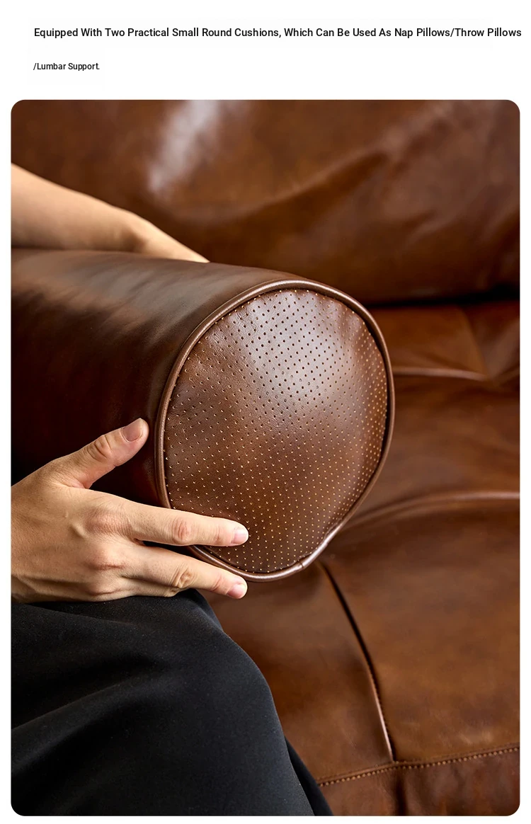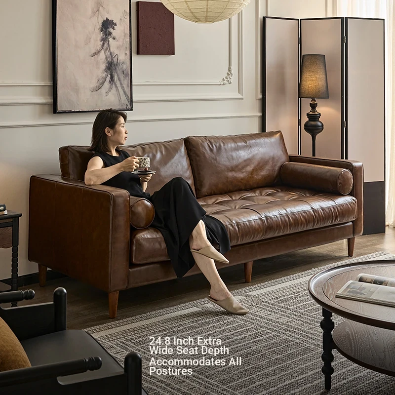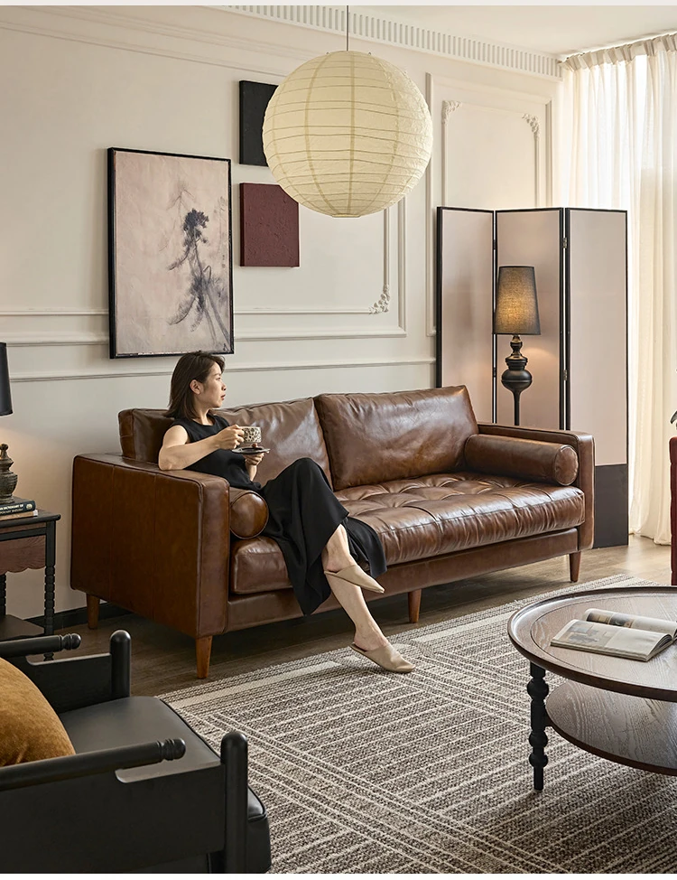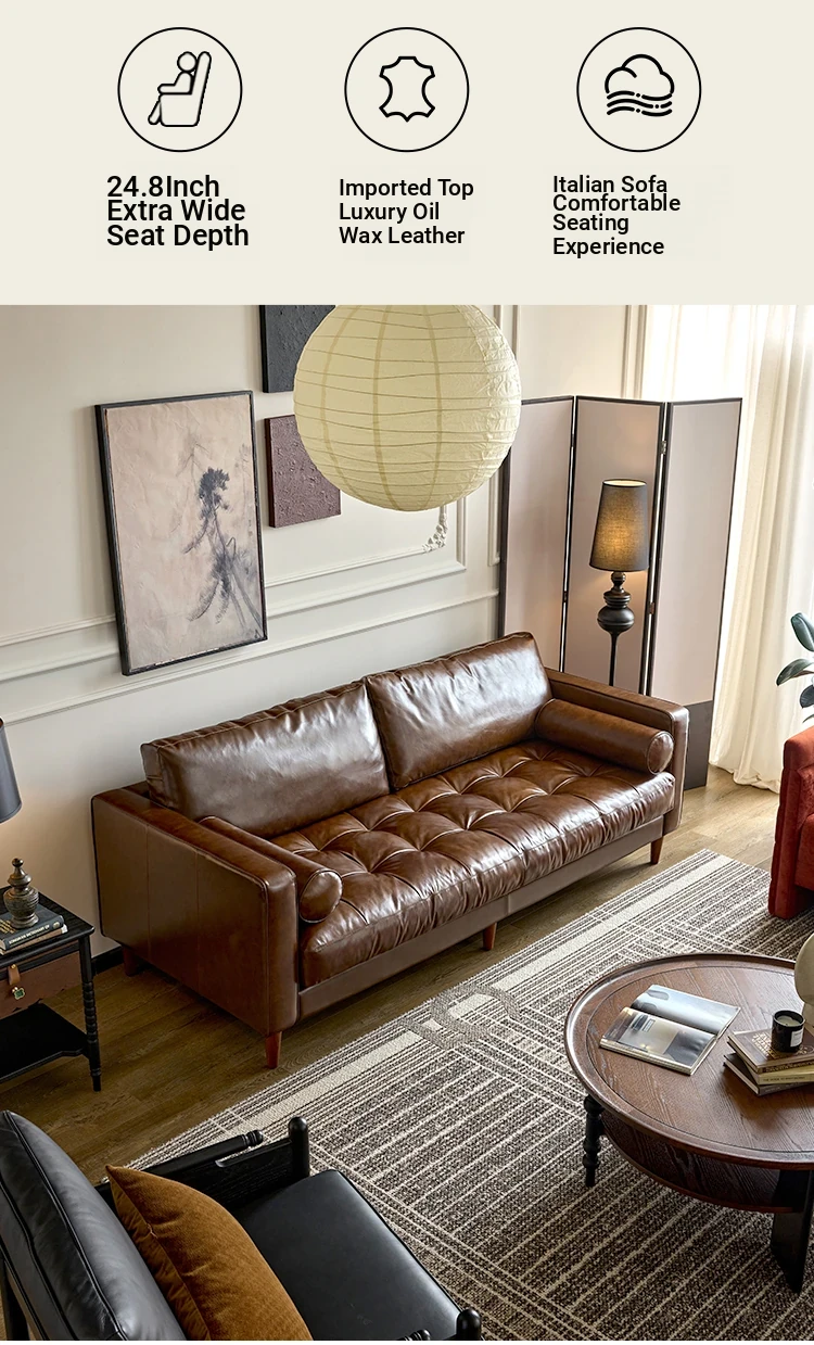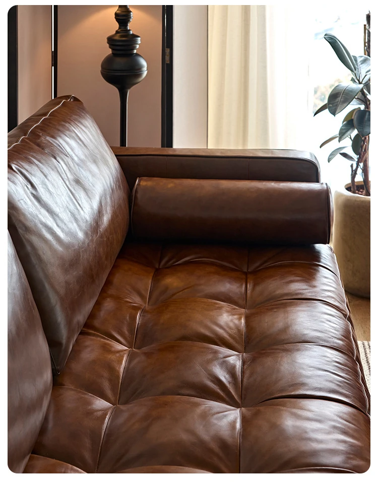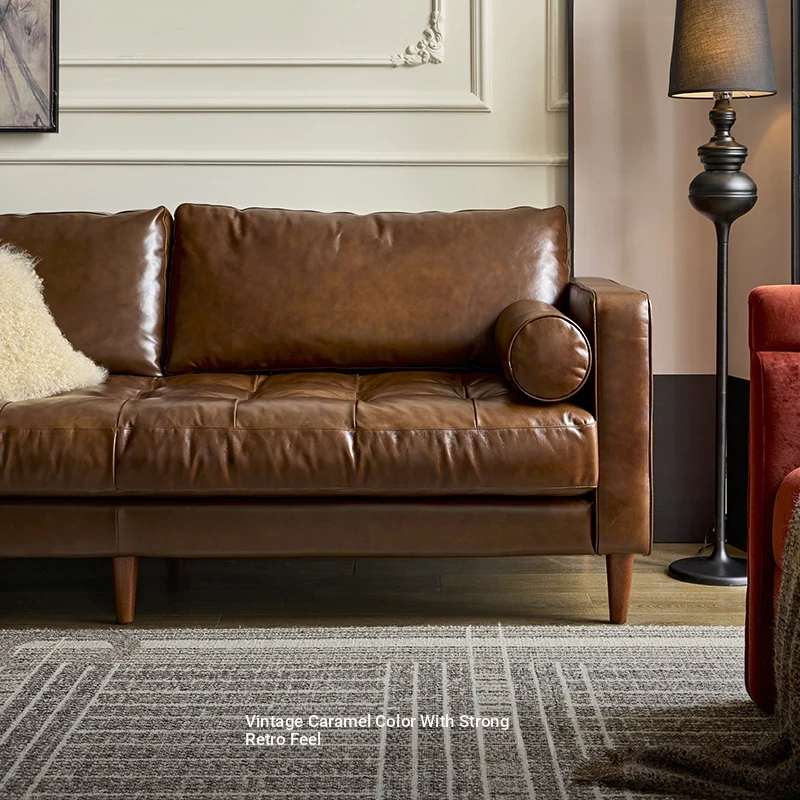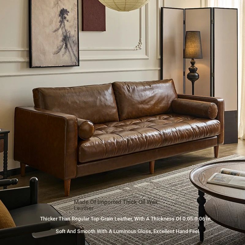 2025 New French Vintage Genuine Leather Sofa - Small Space Friendly, Made with Top Grain Cowhide and Waxed Leather, Perfect for Your Living Room in American Style