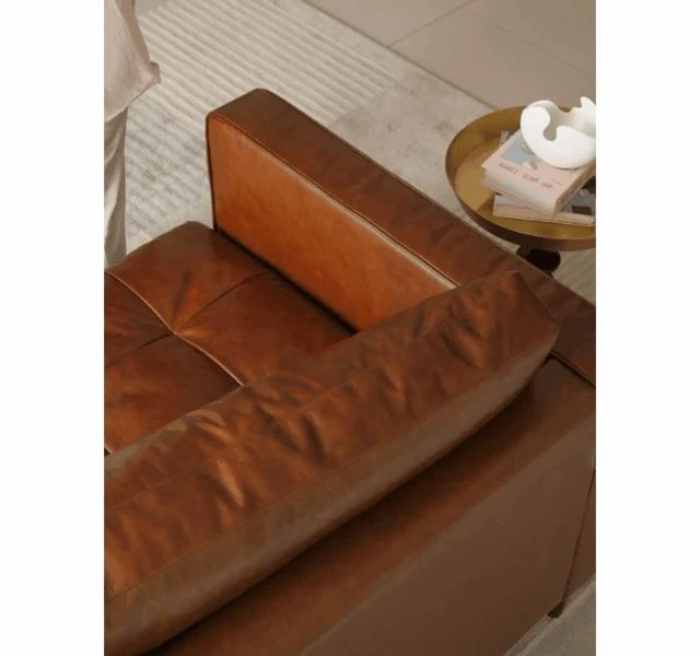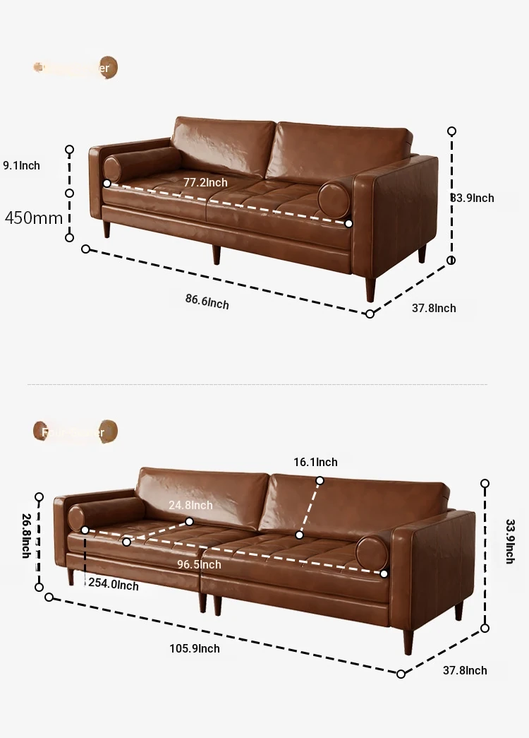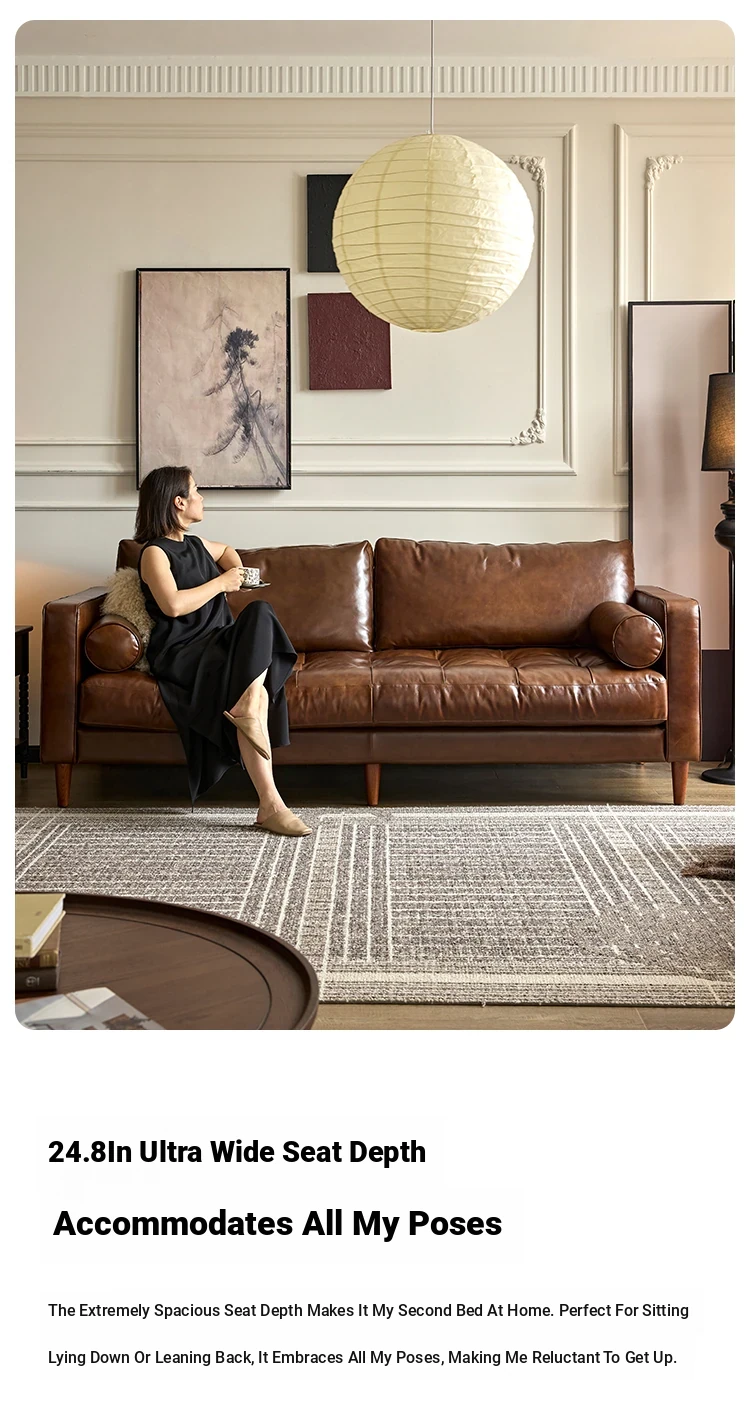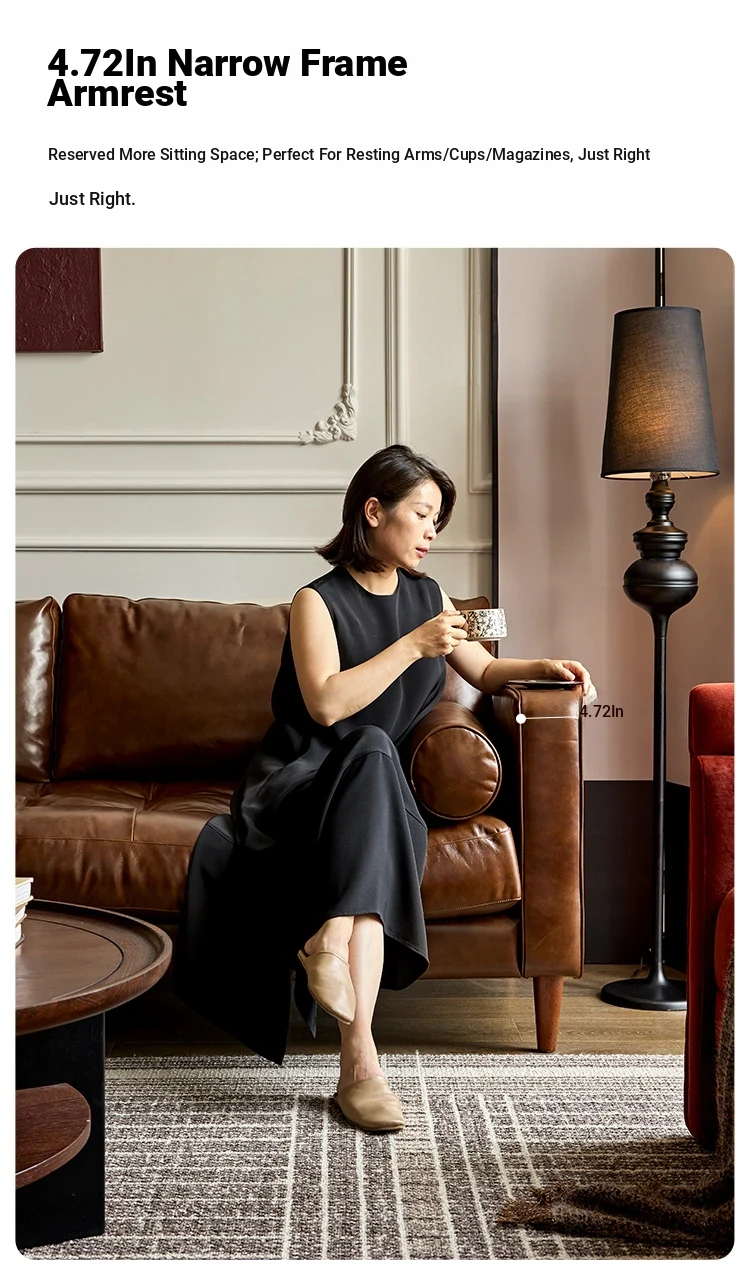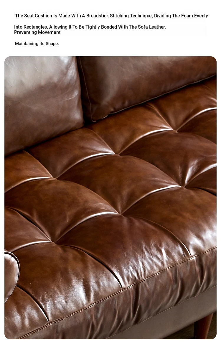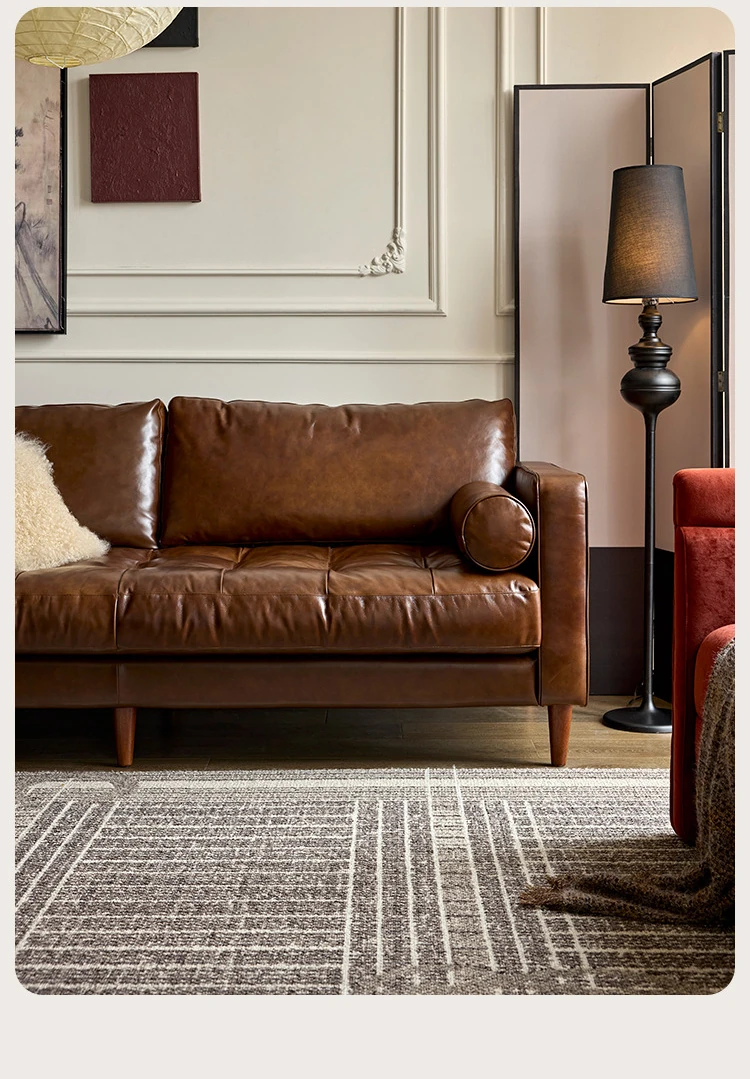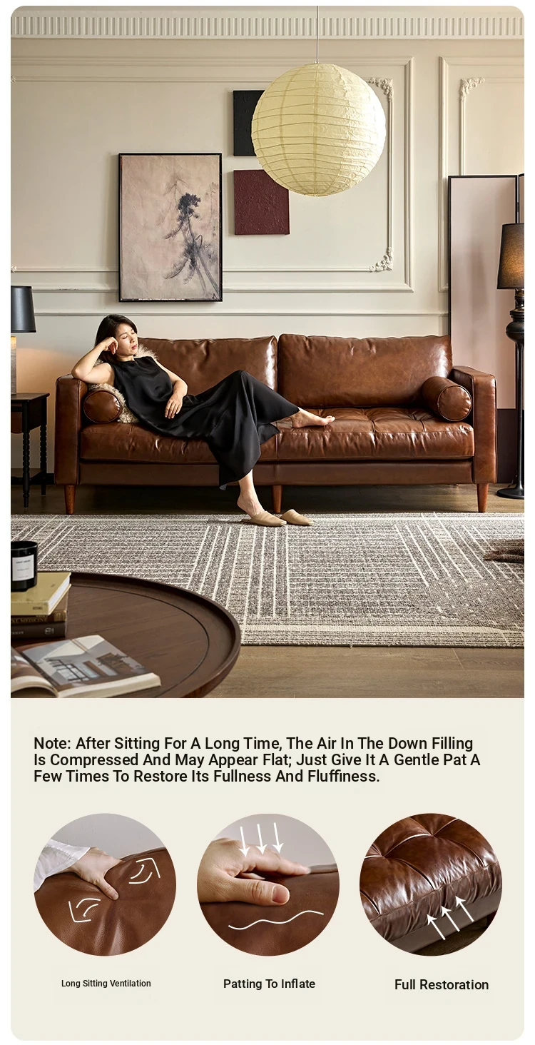 2025 New French Vintage Genuine Leather Sofa - Small Space Friendly, Made with Top Grain Cowhide and Waxed Leather, Perfect for Your Living Room in American Style