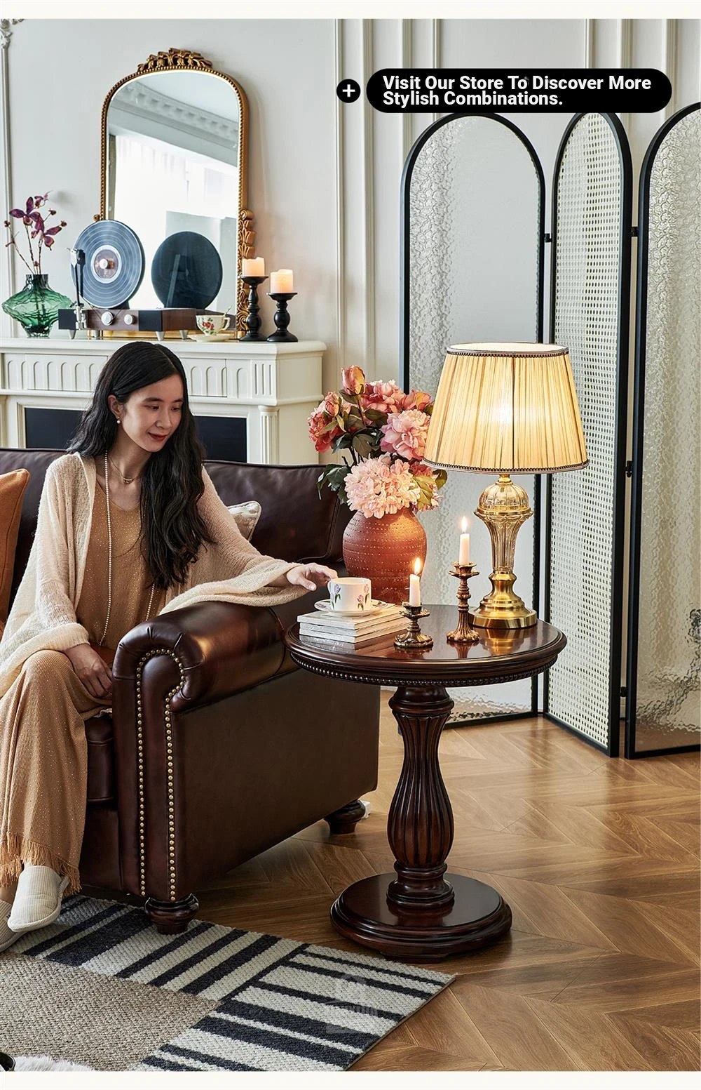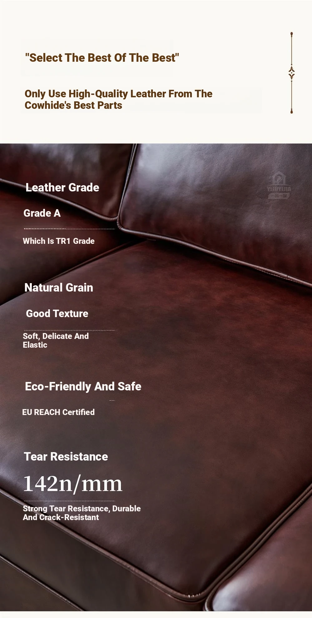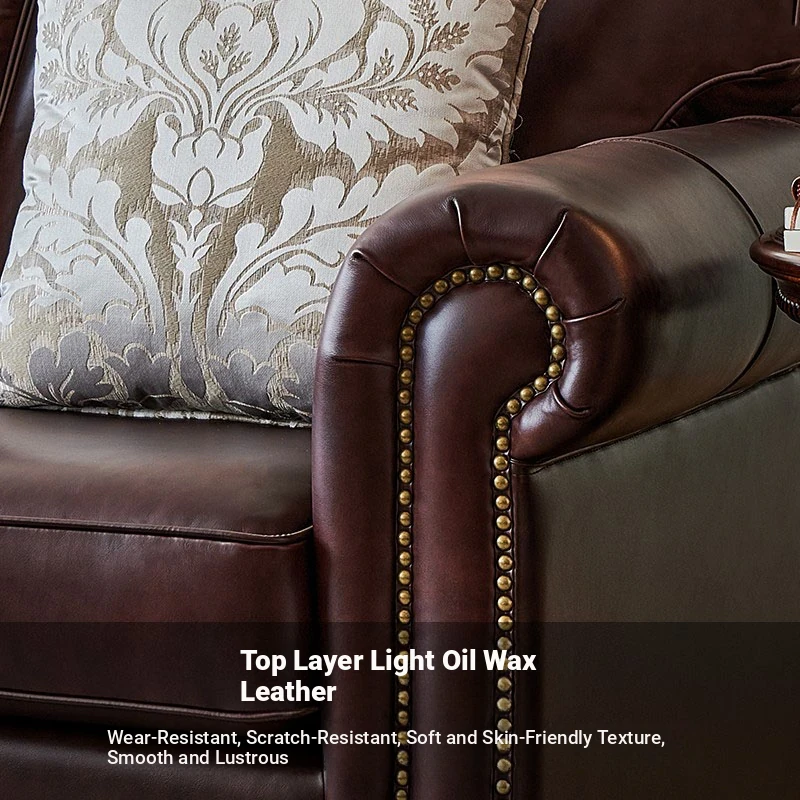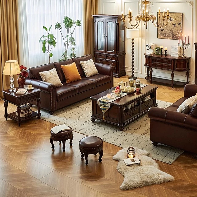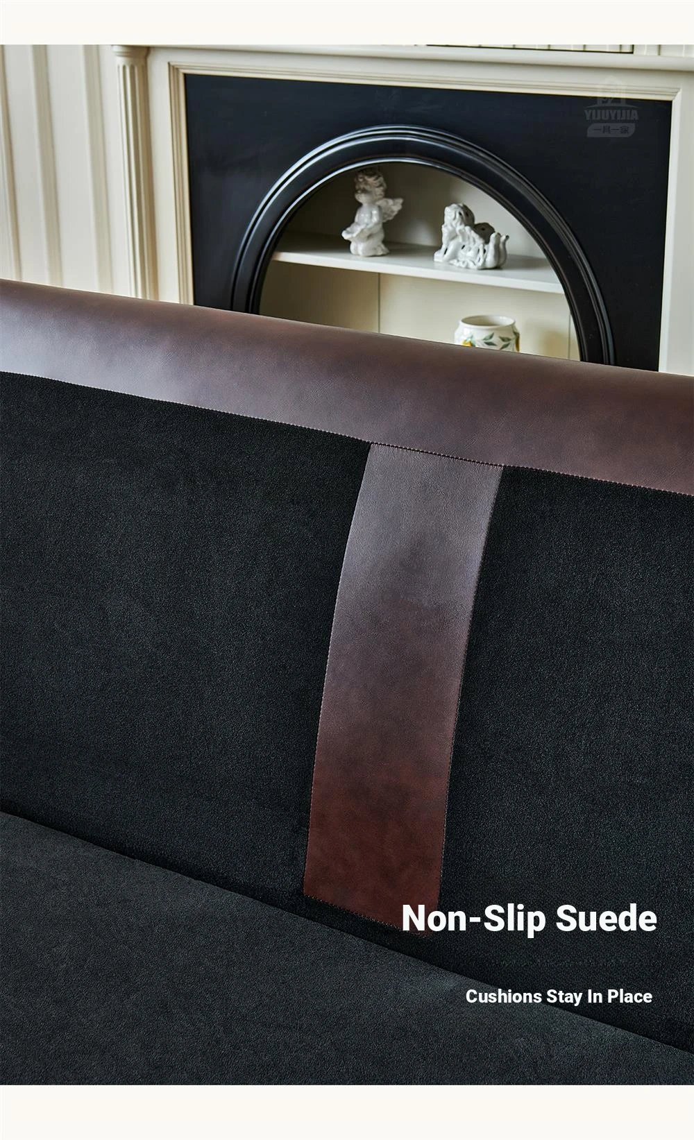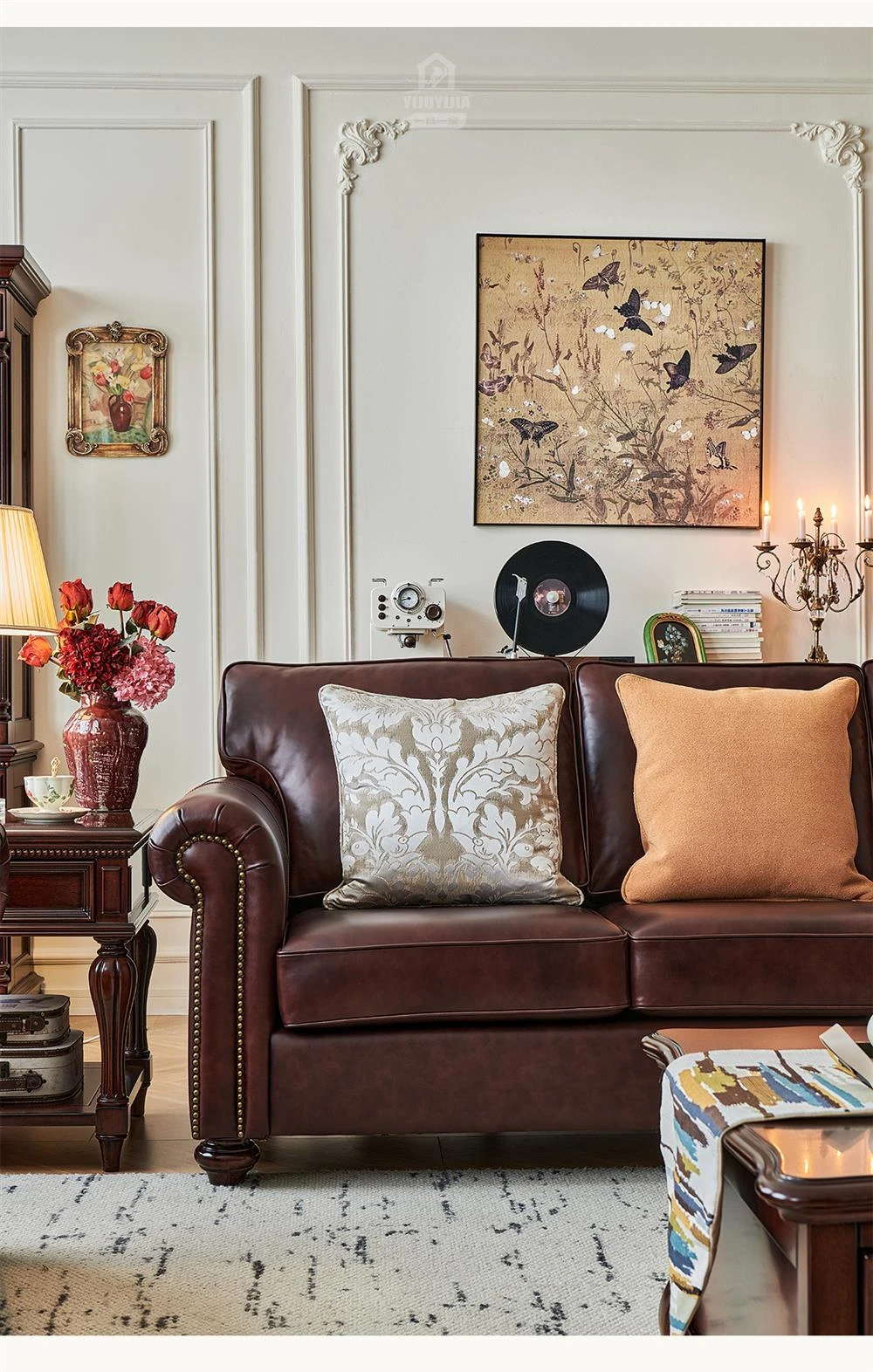 American Vintage Genuine Leather Sofa - Large Button Design, Top Grain Oil Wax Leather, Perfect for Small Living Rooms, 3-Seater Solid Wood Sofa