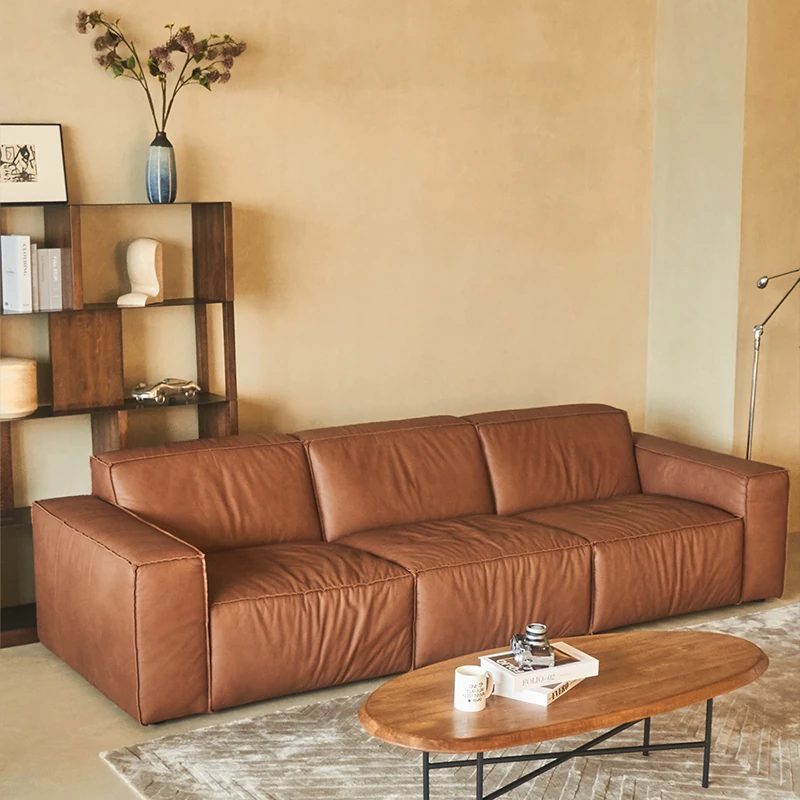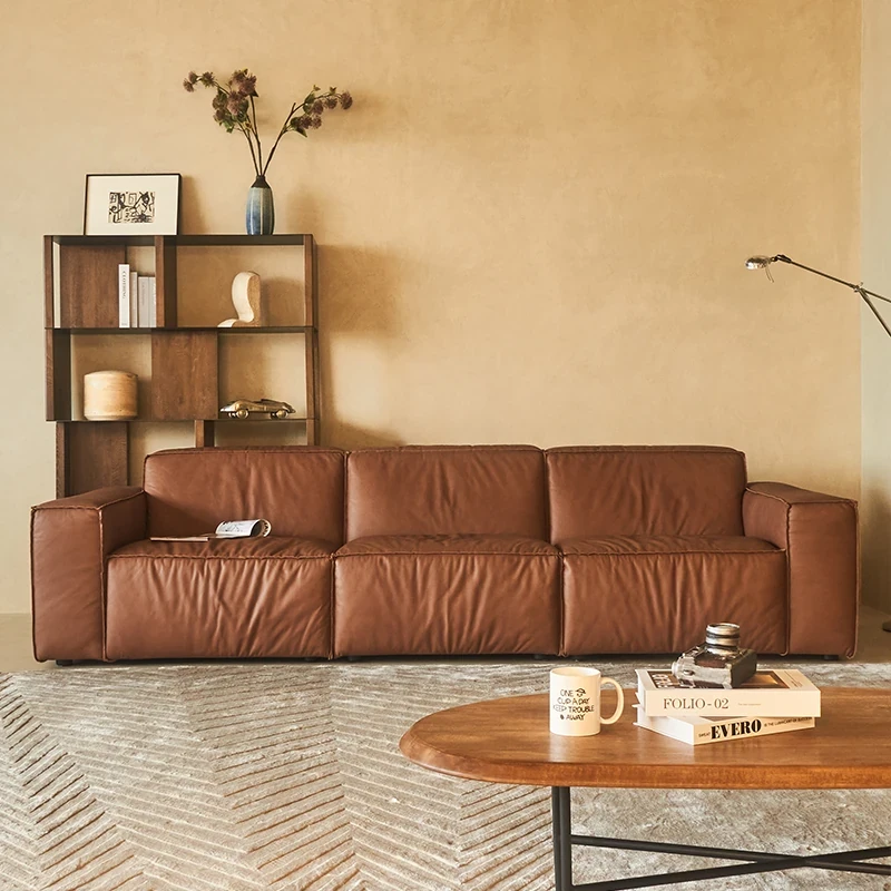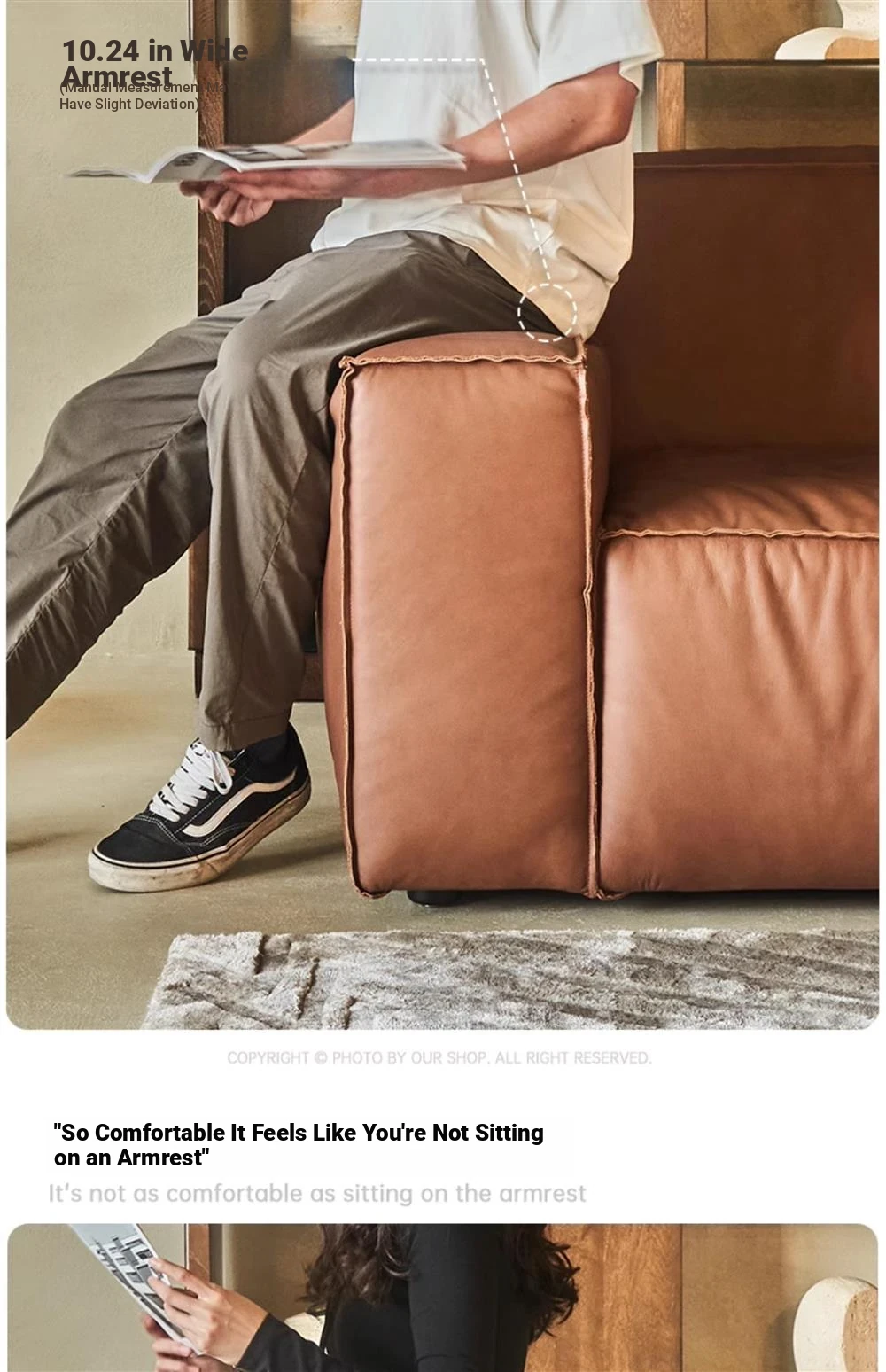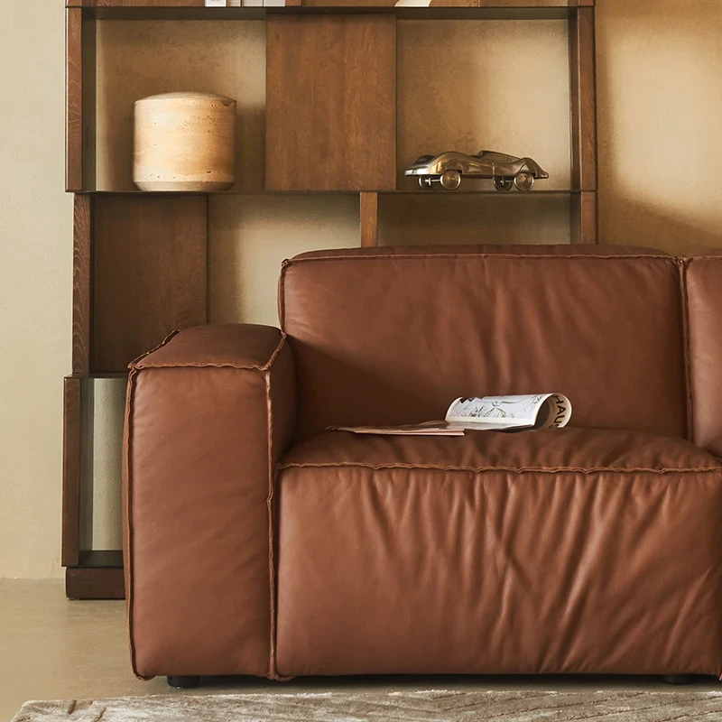 American Vintage Laid-Back Wabi-Sabi Elysian Tofu Block Genuine Leather Sofa - Modular Designer Style for Your Living Room