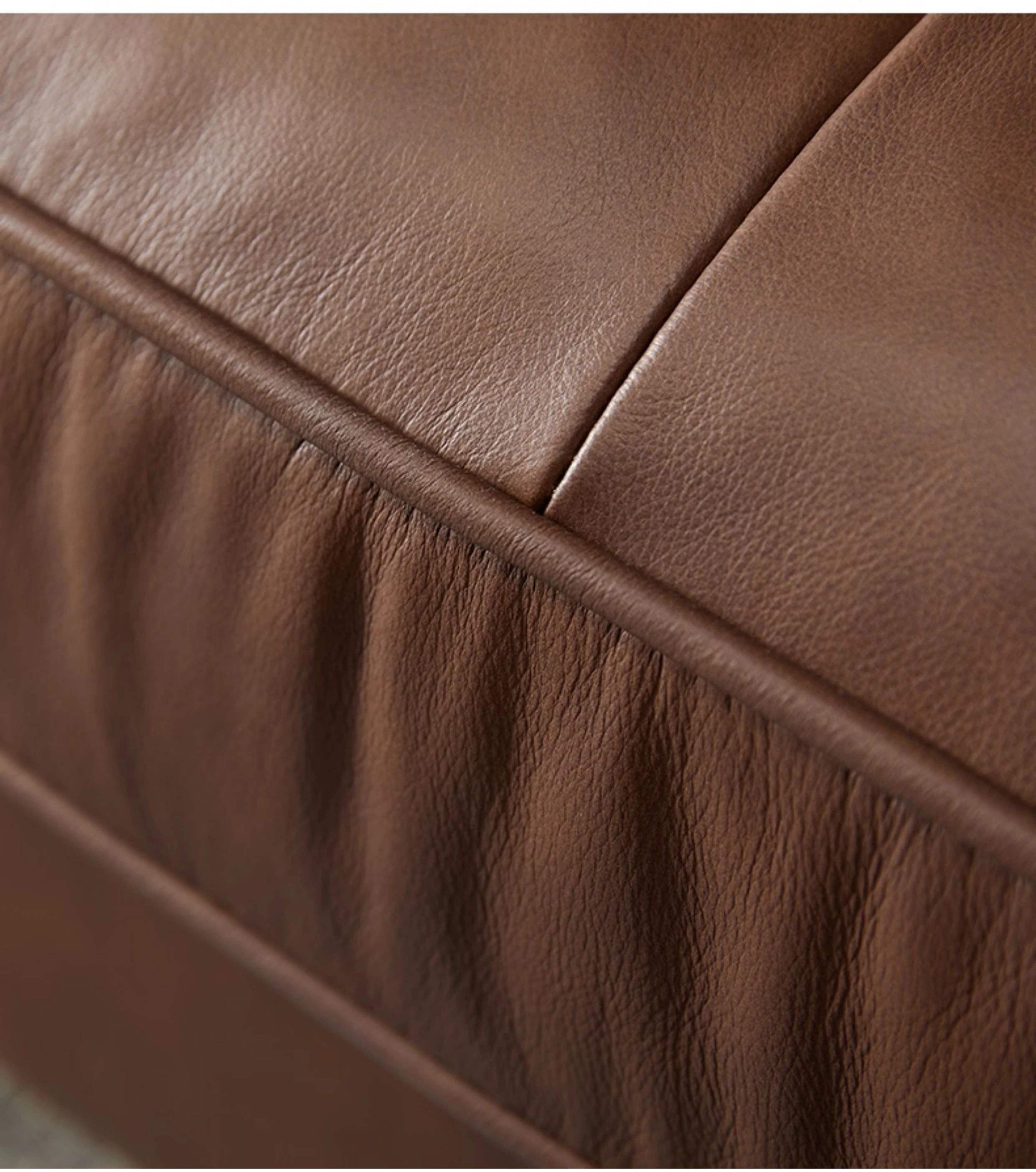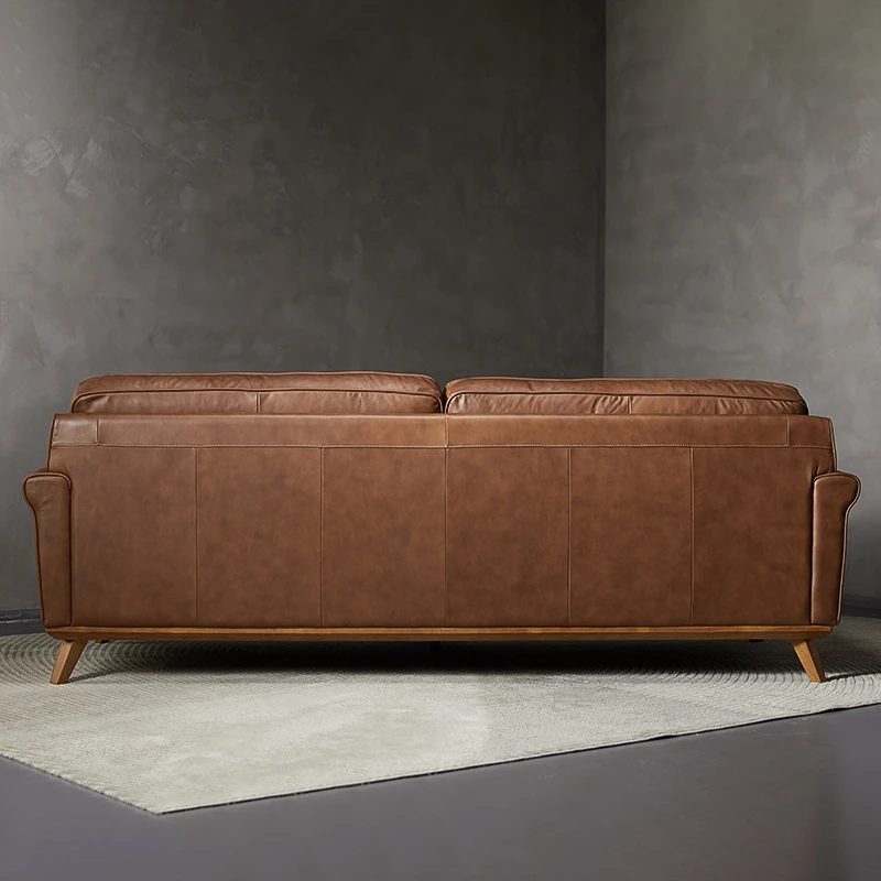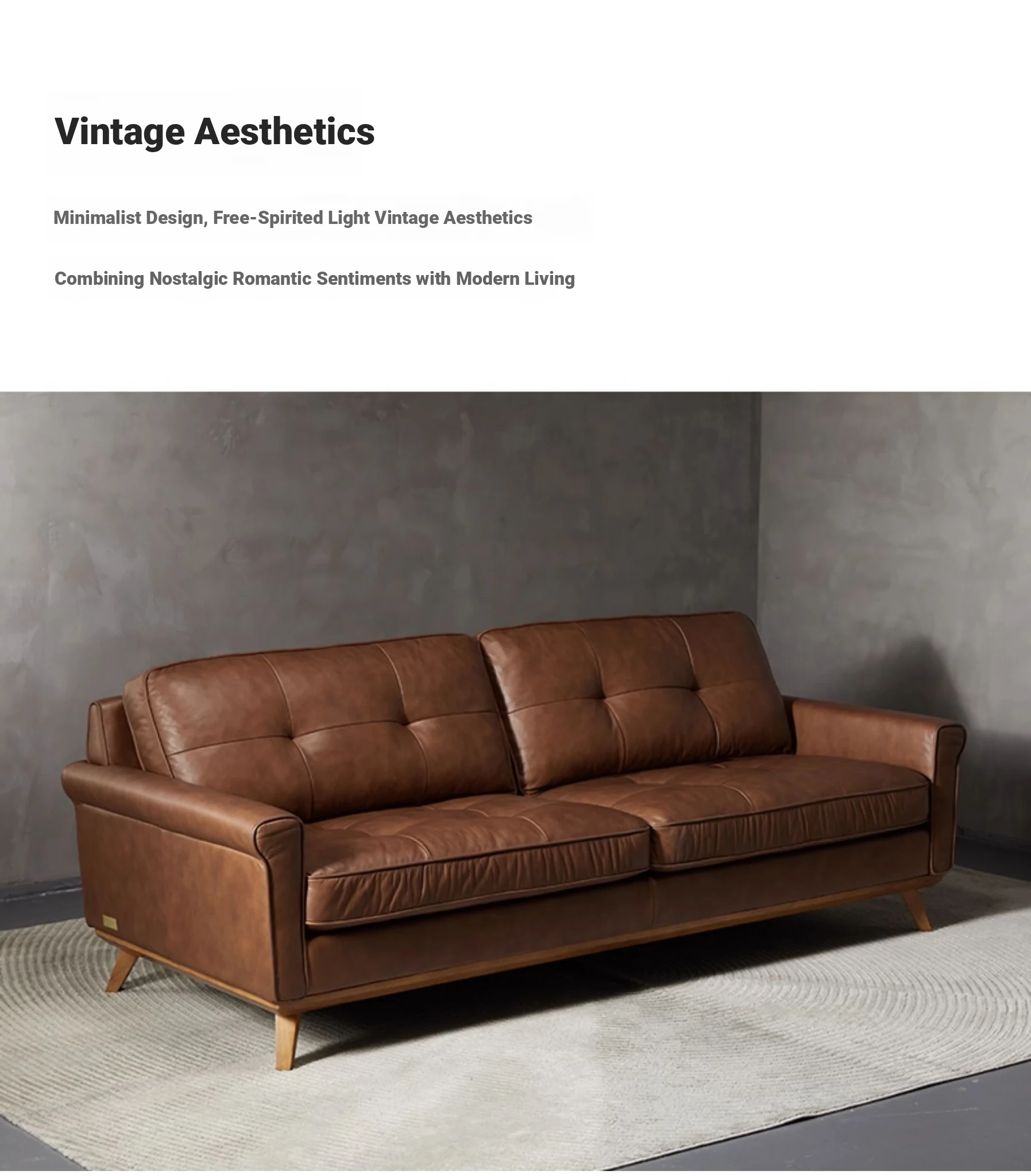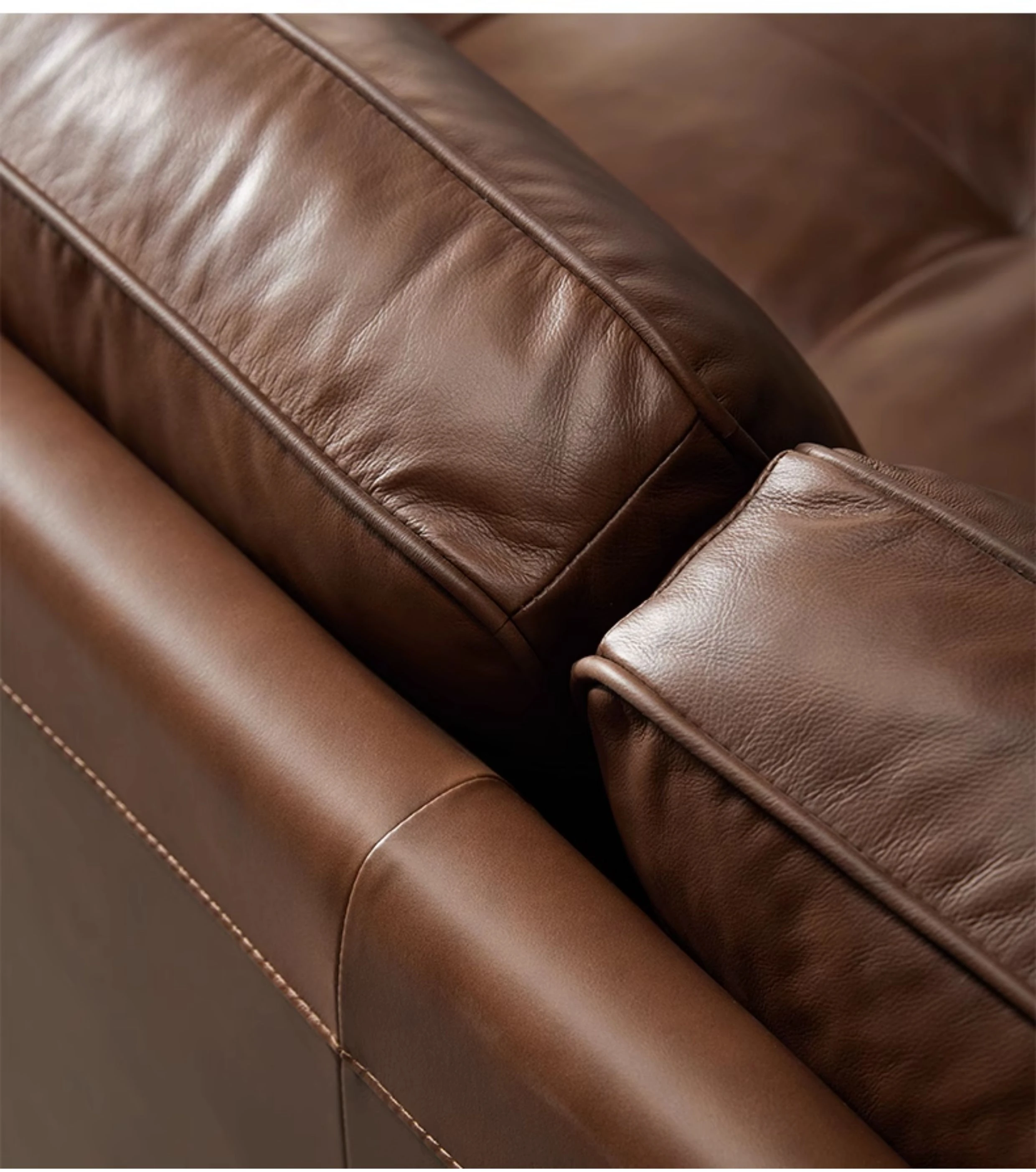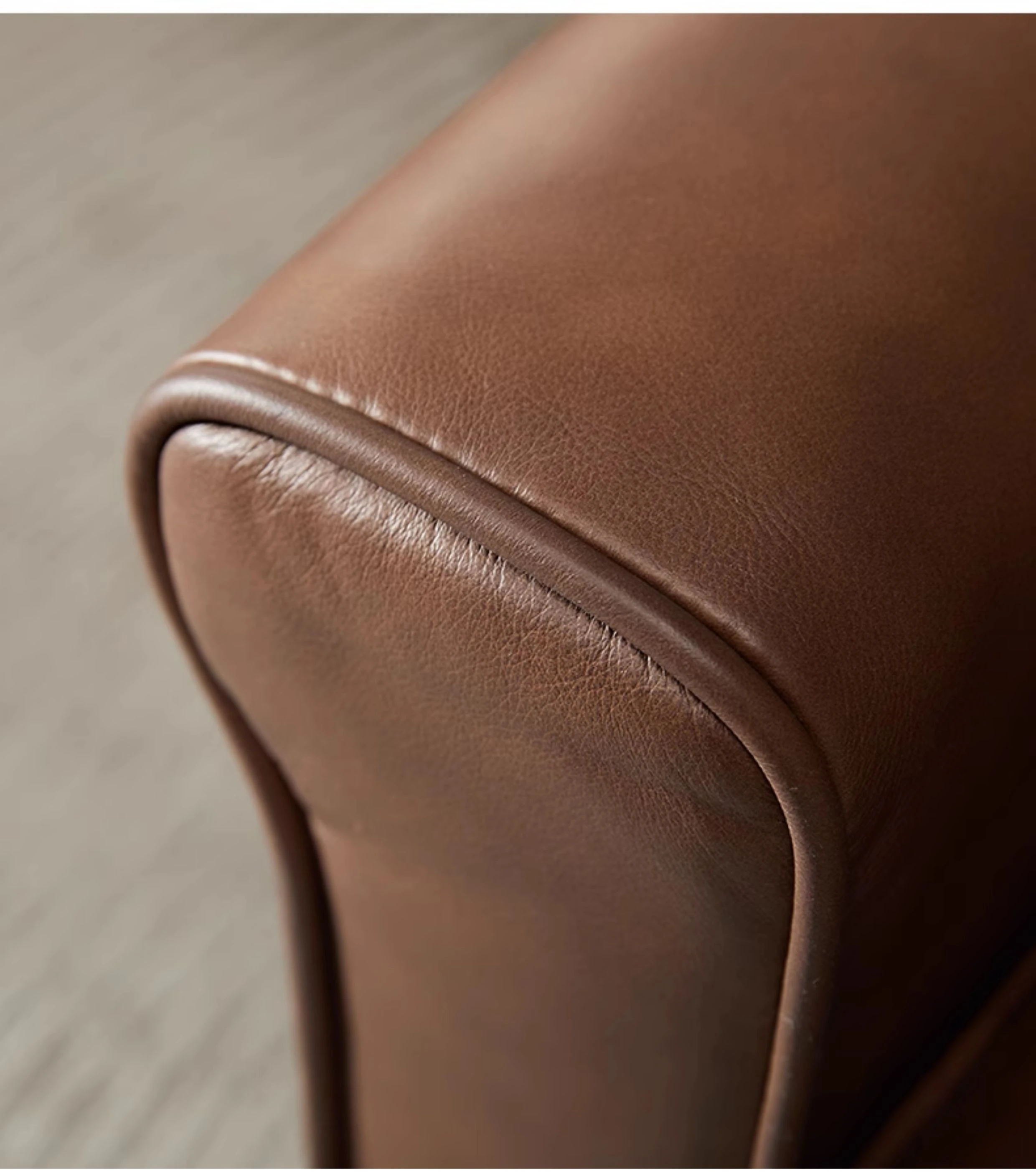 American Vintage Light Luxury Straight Back Top Layer Leather Sofa - Antique Style Oil Wax Leather Couch for Small Living Rooms
