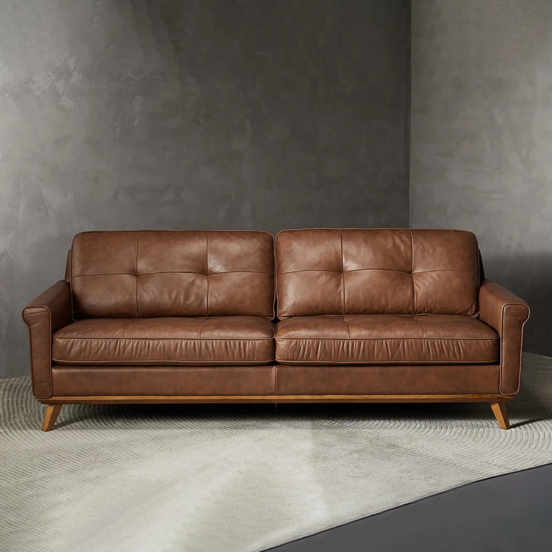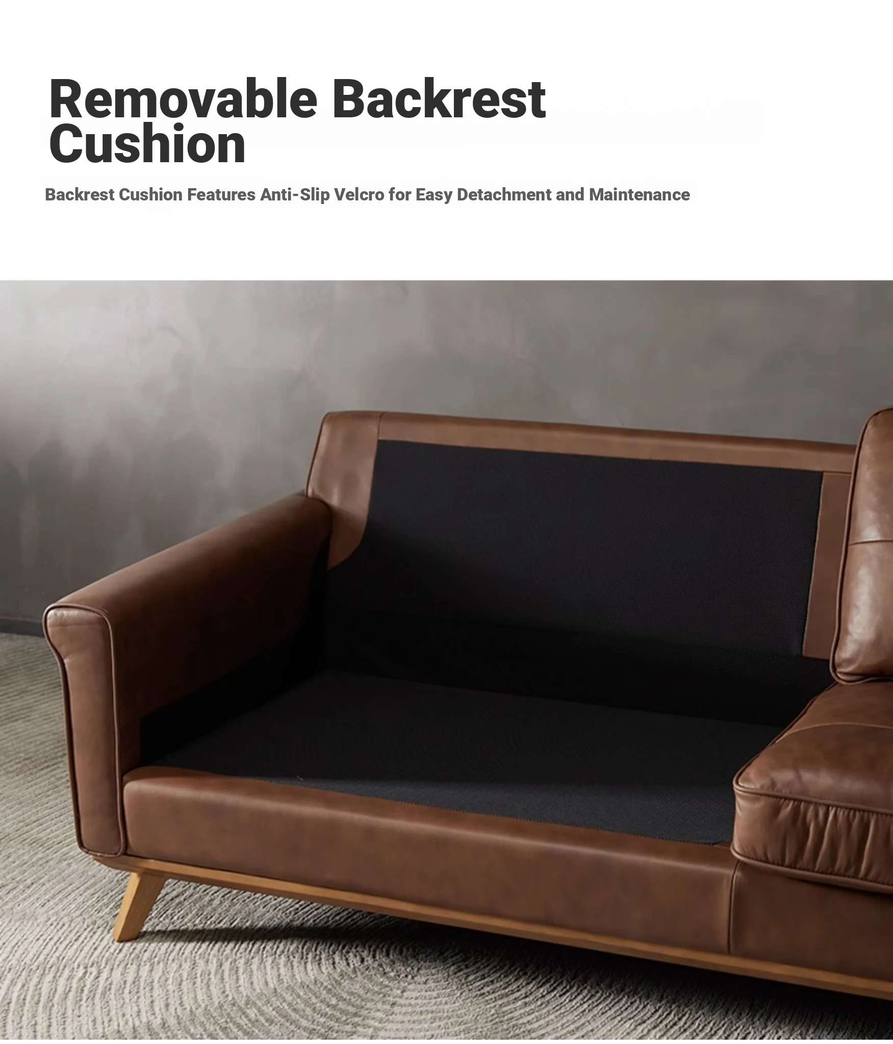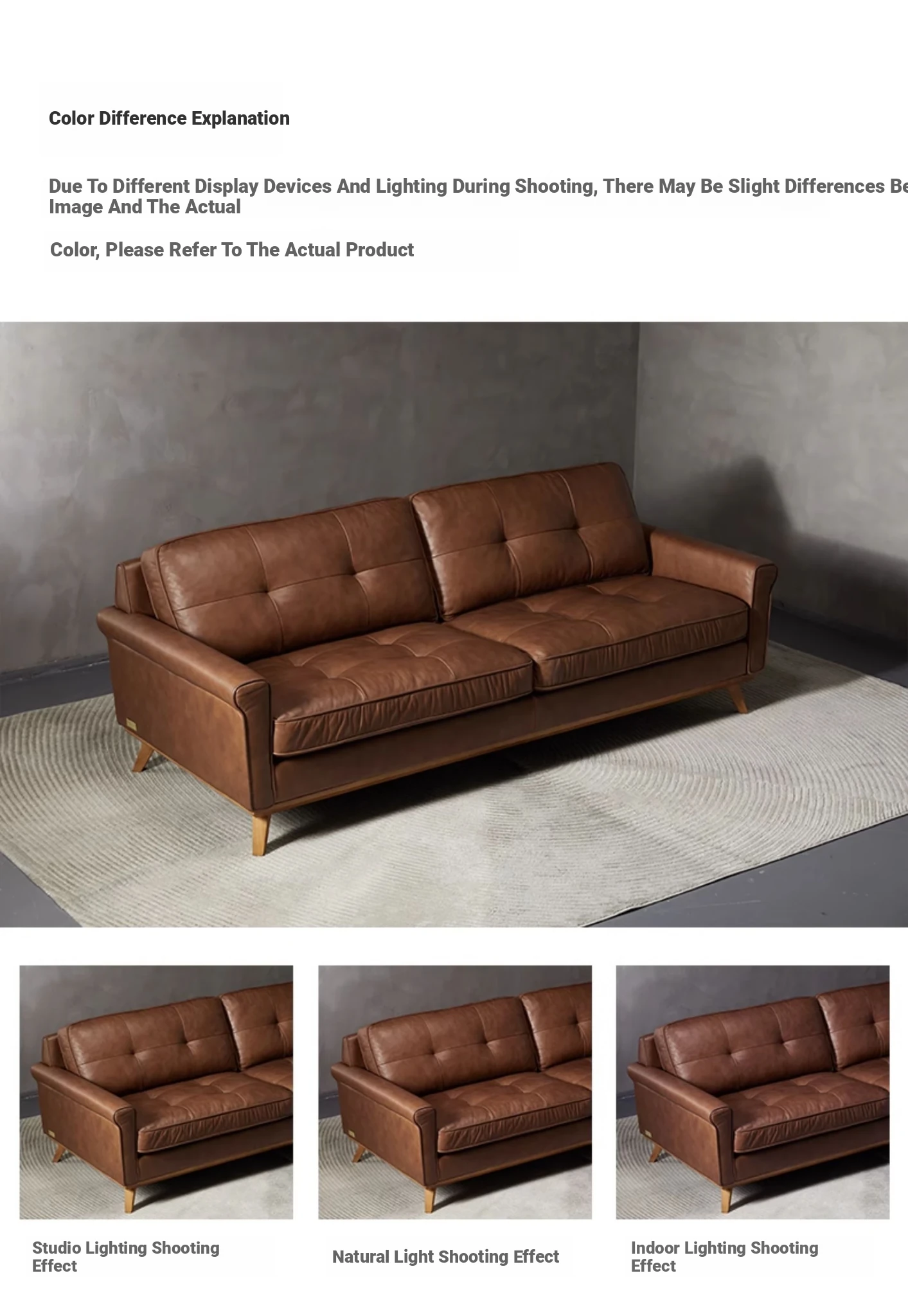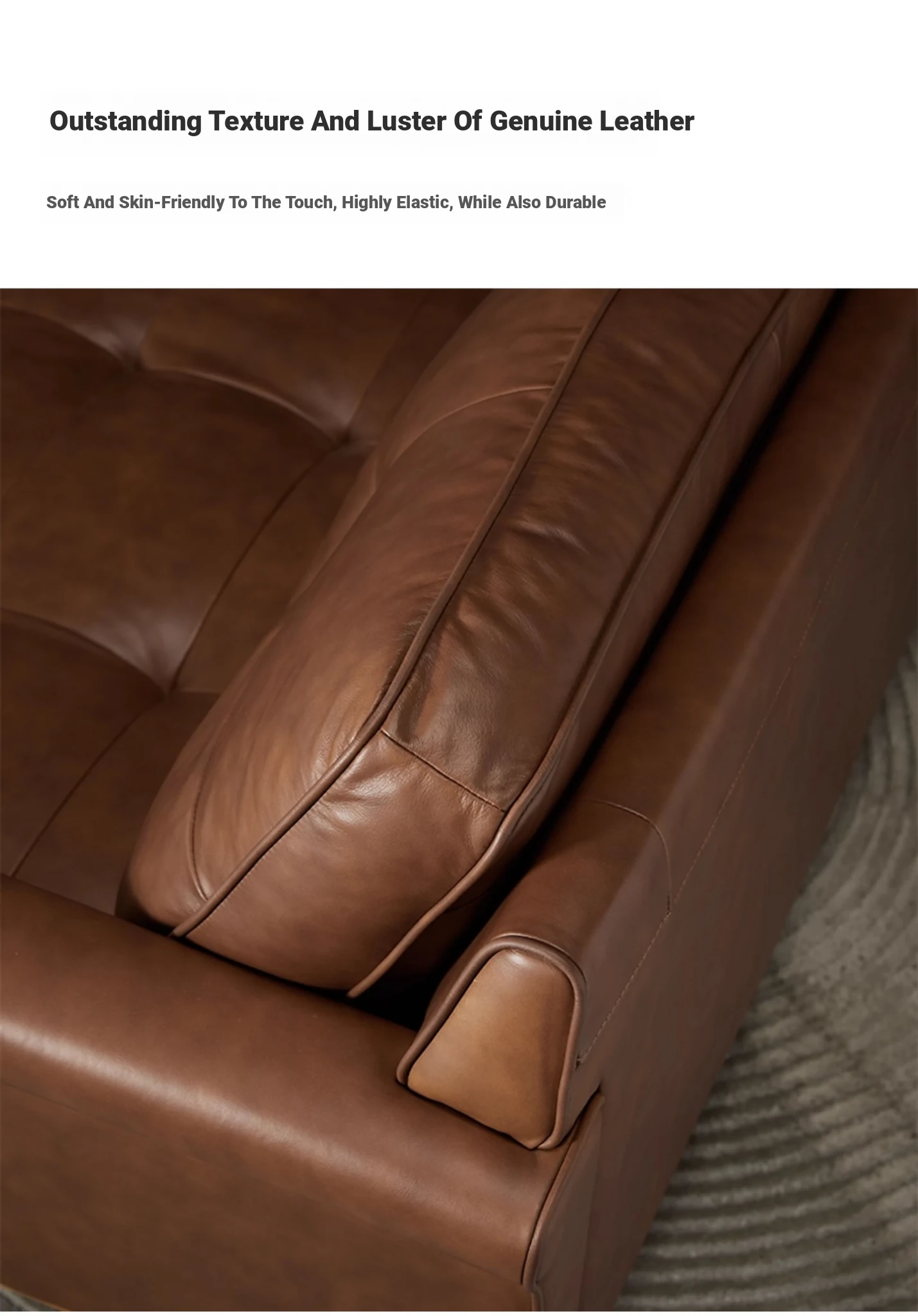 American Vintage Light Luxury Straight Back Top Layer Leather Sofa - Antique Style Oil Wax Leather Couch for Small Living Rooms