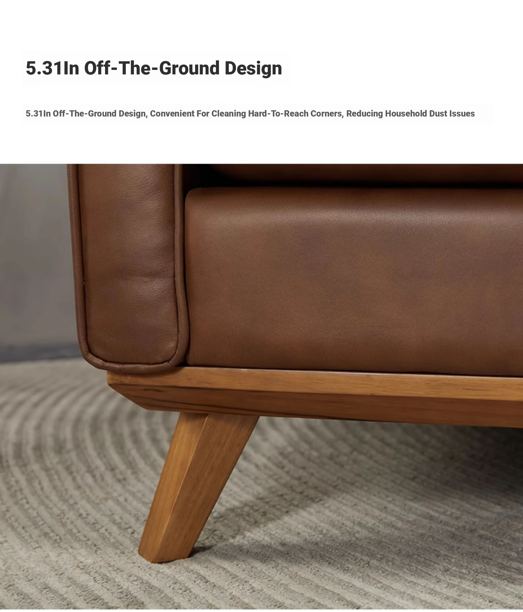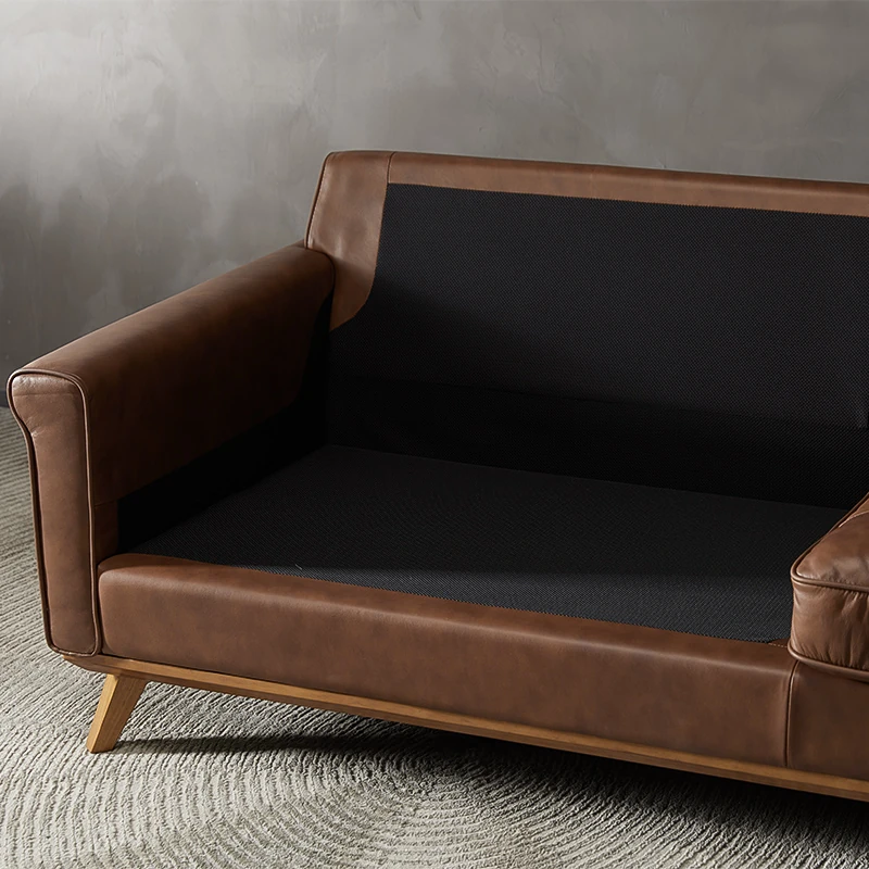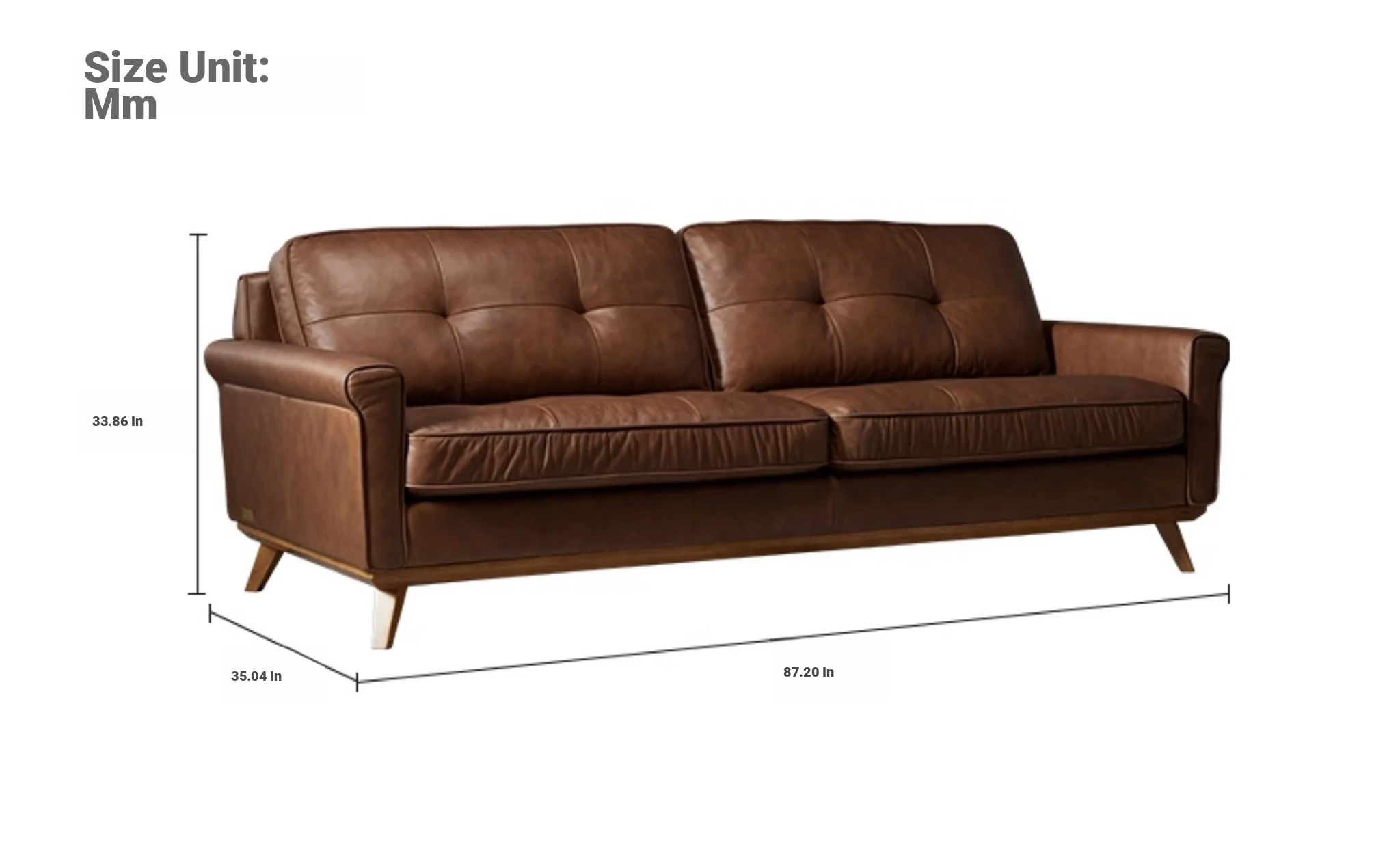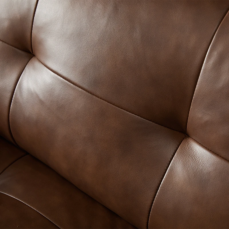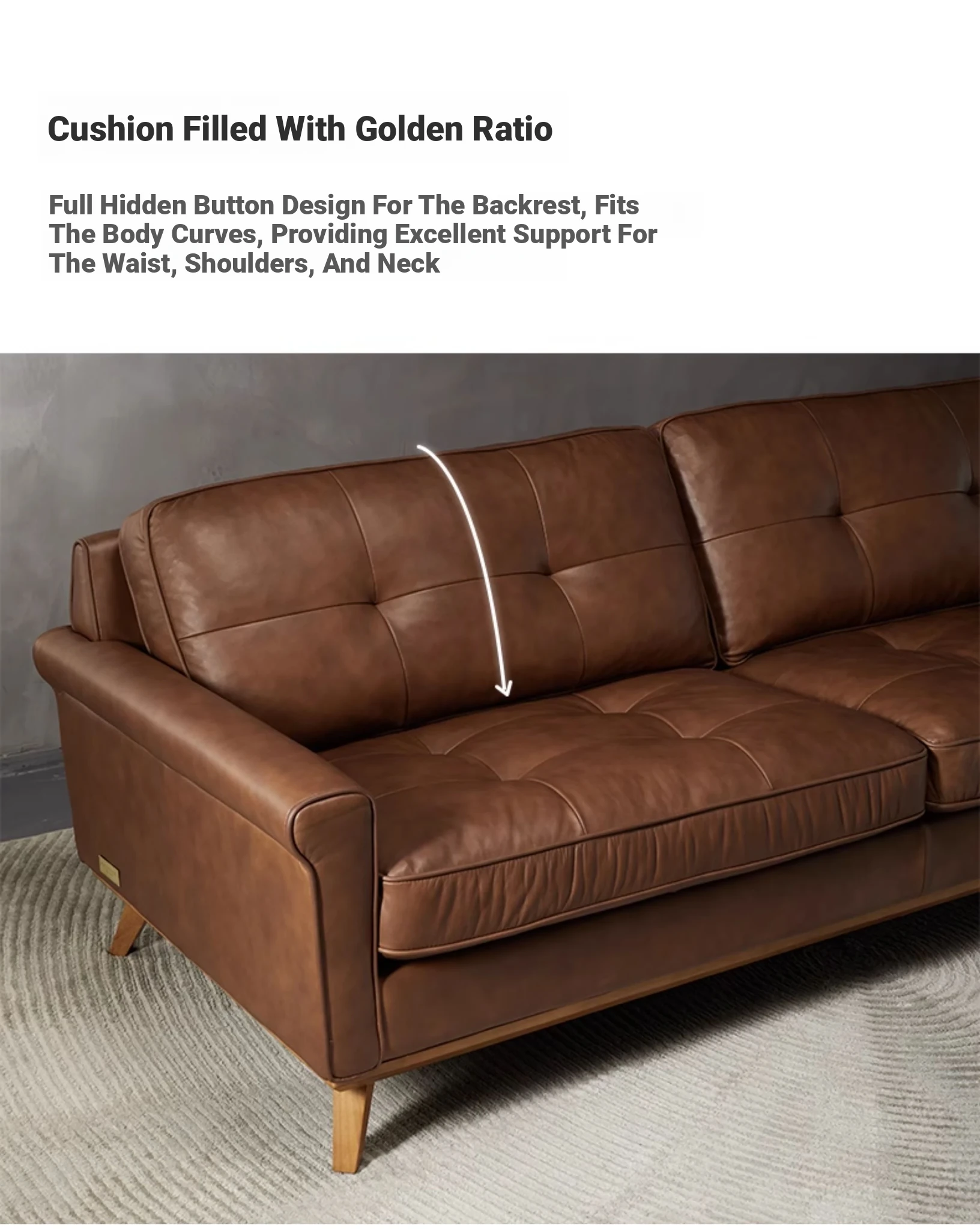 American Vintage Light Luxury Straight Back Top Layer Leather Sofa - Antique Style Oil Wax Leather Couch for Small Living Rooms