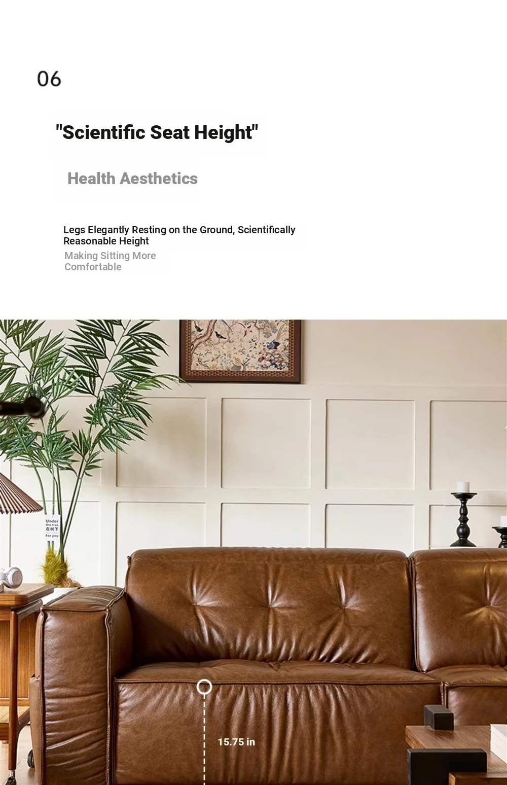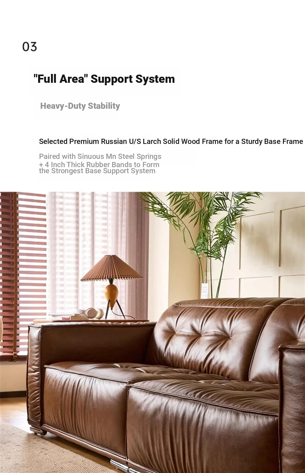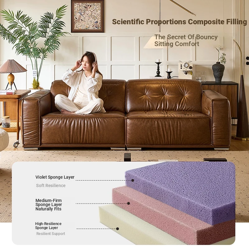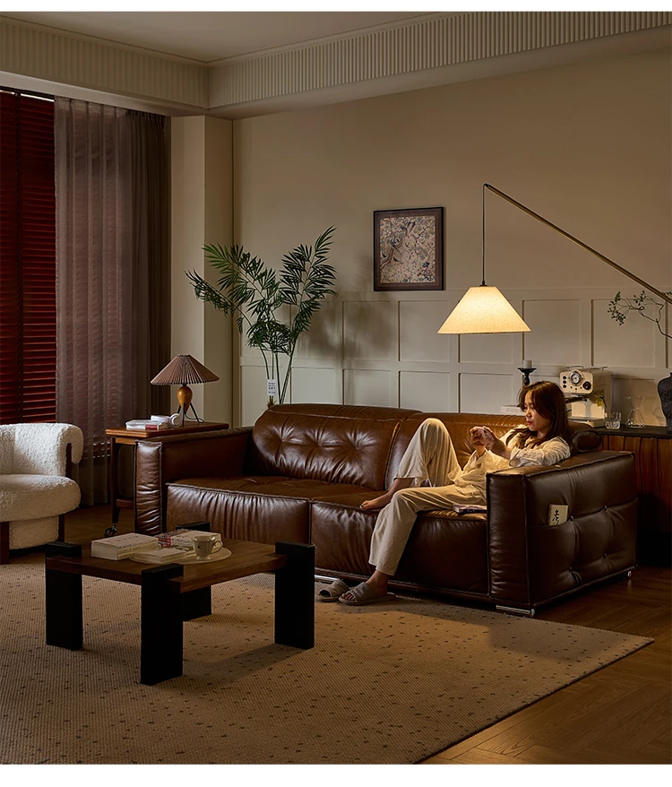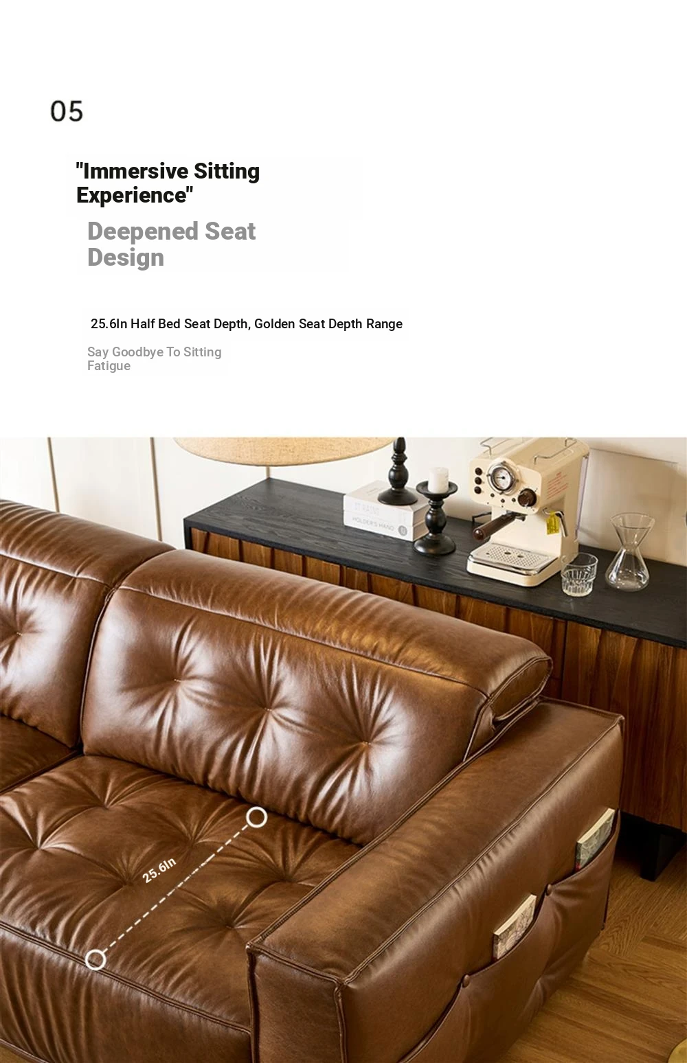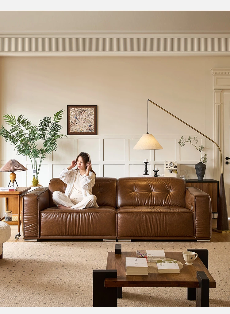Dream Sofa Retro Waxed Leather Genuine Leather Sofa - Adjustable Backrest Vintage Style Three-Seat Living Room Couch