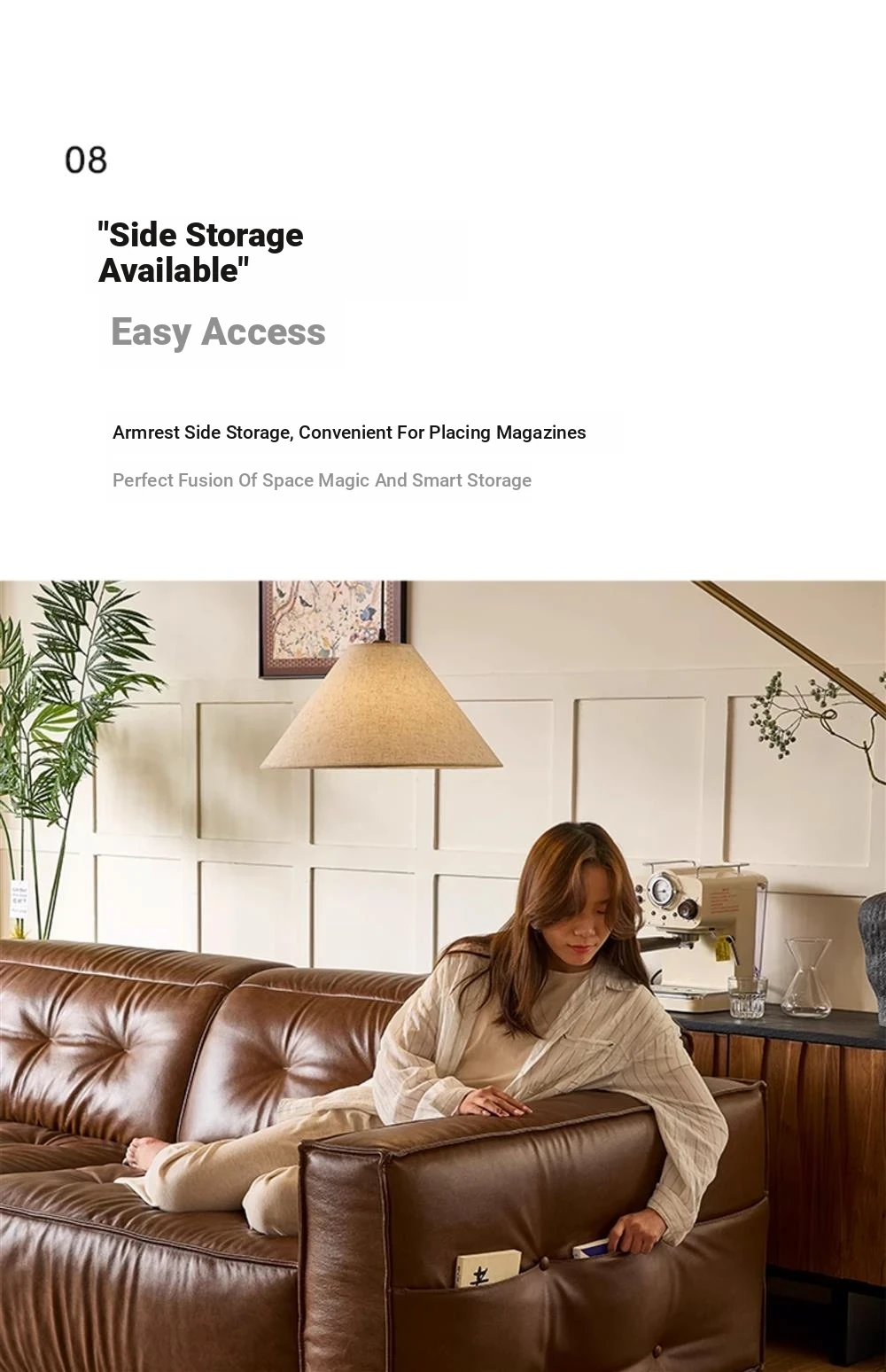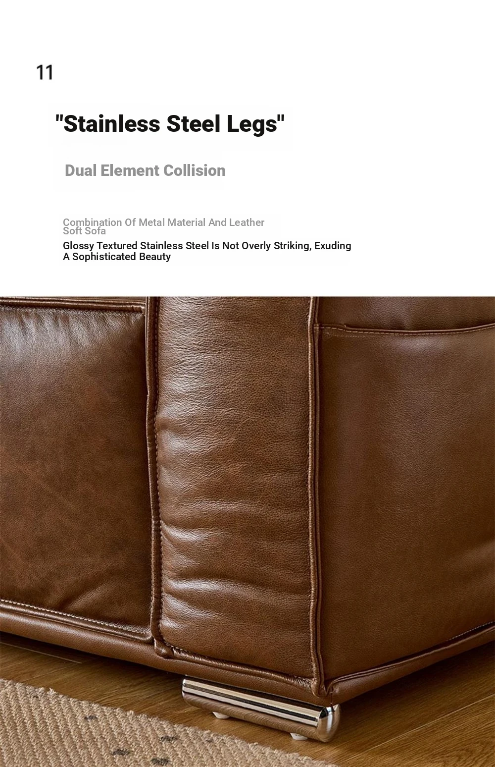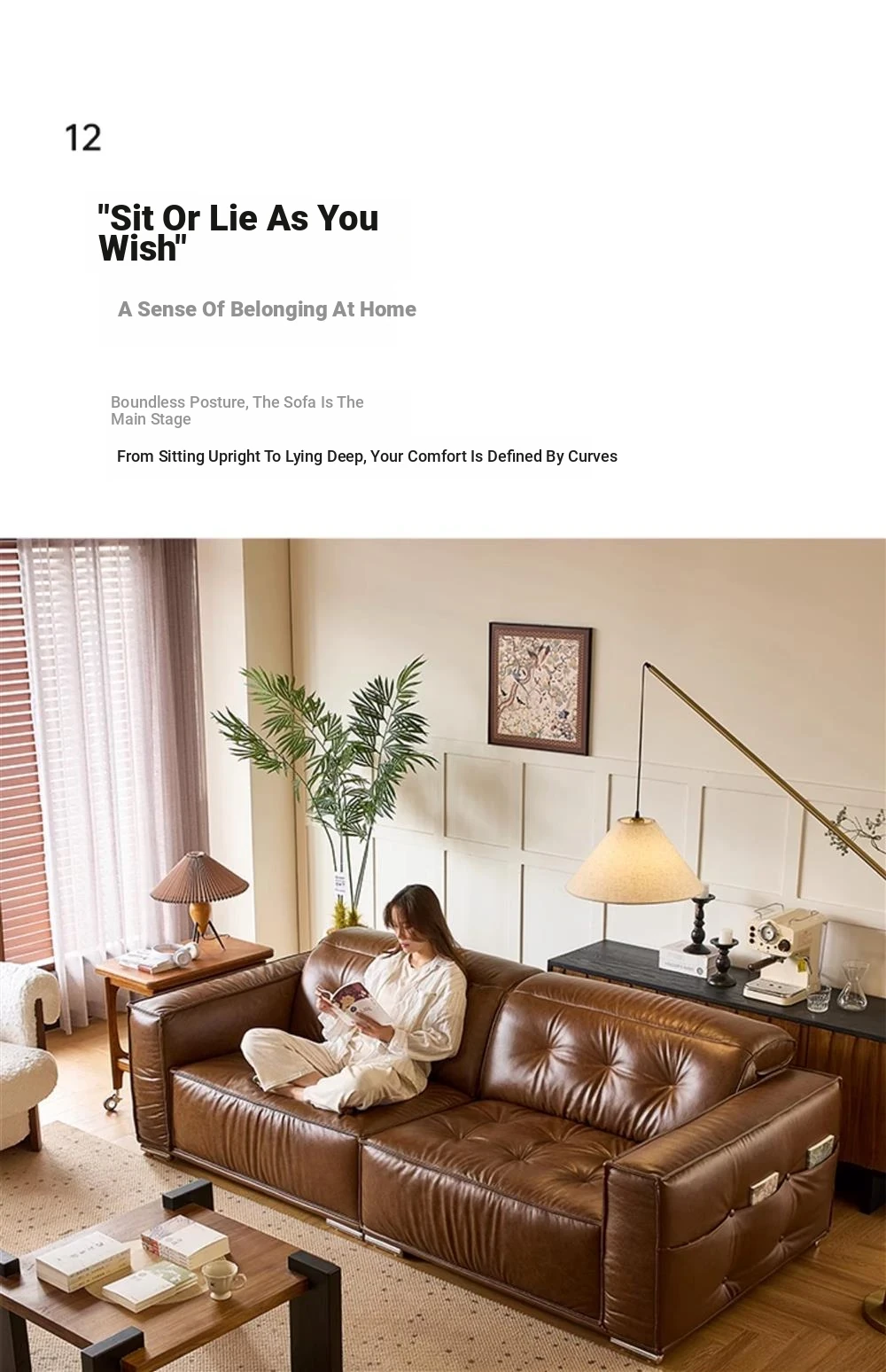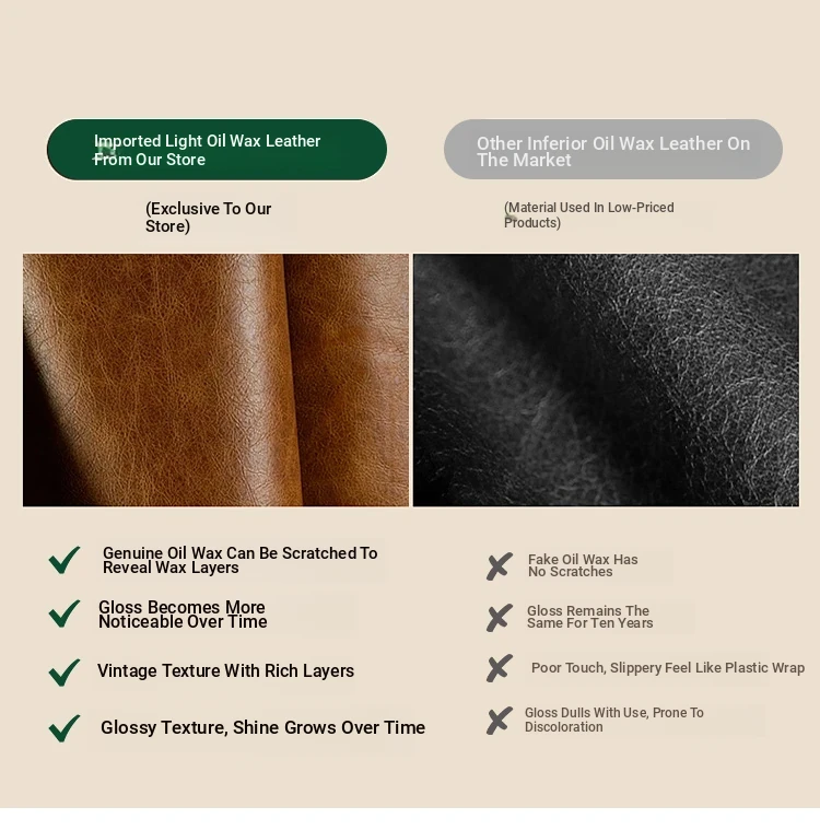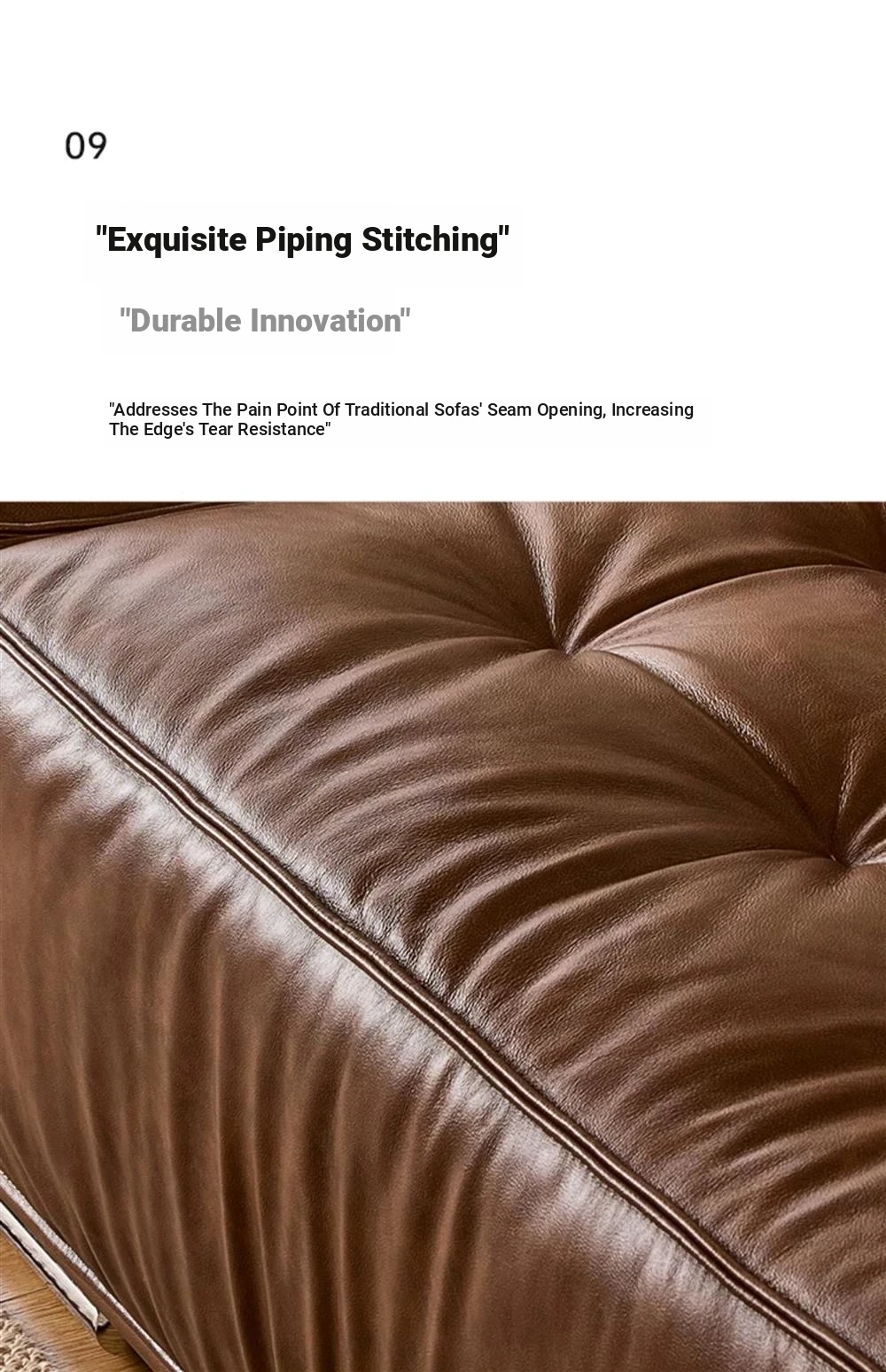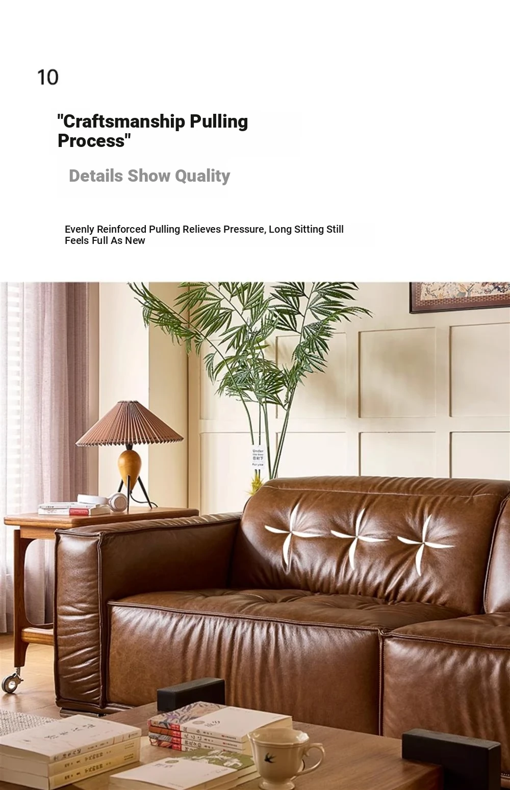 Dream Sofa Retro Waxed Leather Genuine Leather Sofa - Adjustable Backrest Vintage Style Three-Seat Living Room Couch