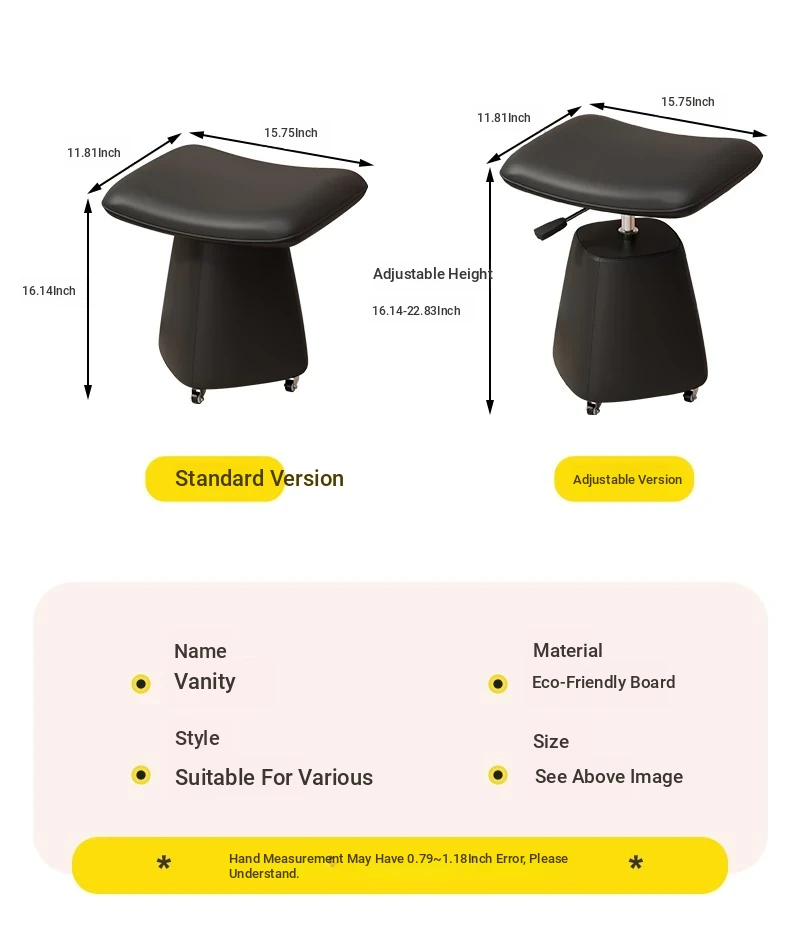 Elegant Makeup Stool with Adjustable Height - Modern Minimalist Vanity Chair for Girls' Bedrooms, Perfect for Home Use