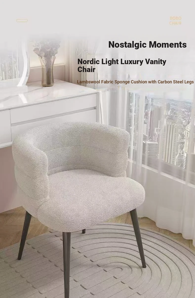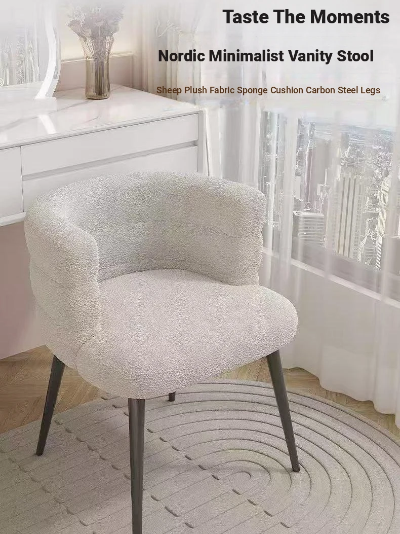 Elegant Minimalist Bedroom Makeup Stool - Chic Vanity Chair for Home Use, Perfect for Nail Art, Creamy Aesthetic Design, Comfortable and Stylish!