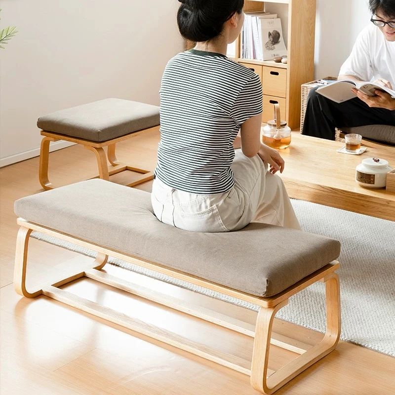 Japanese-Style Long Bench: Versatile Shoe Changing Stool for Living Room & Dining Room, Solid Oak Wood End Bench for Bedroom or Dining Use