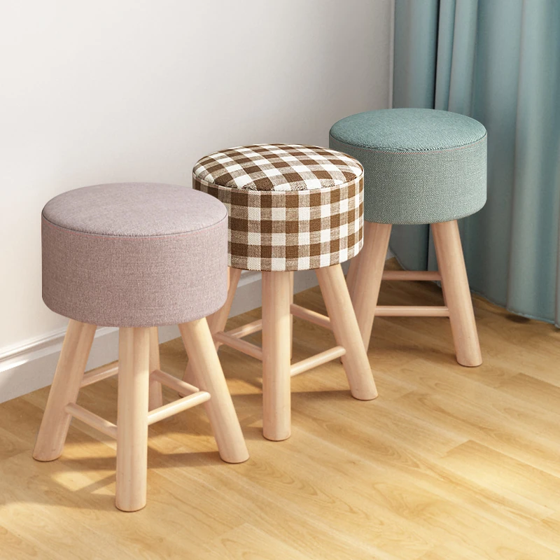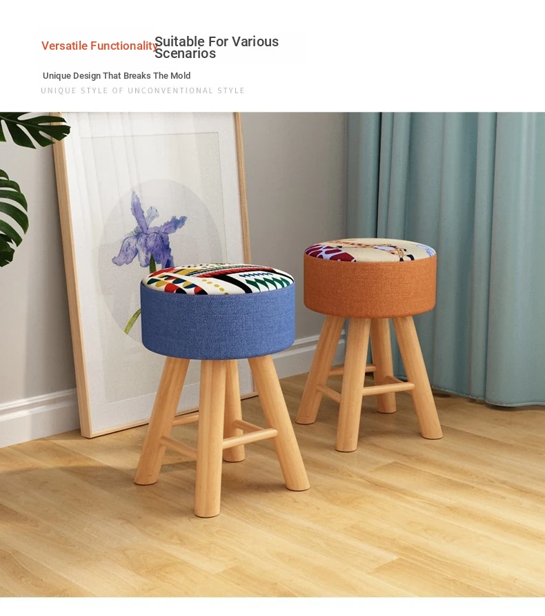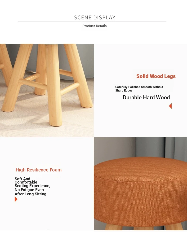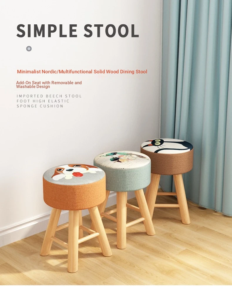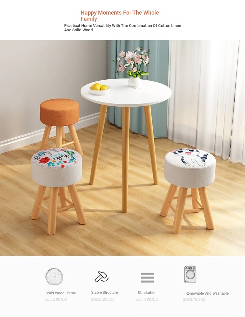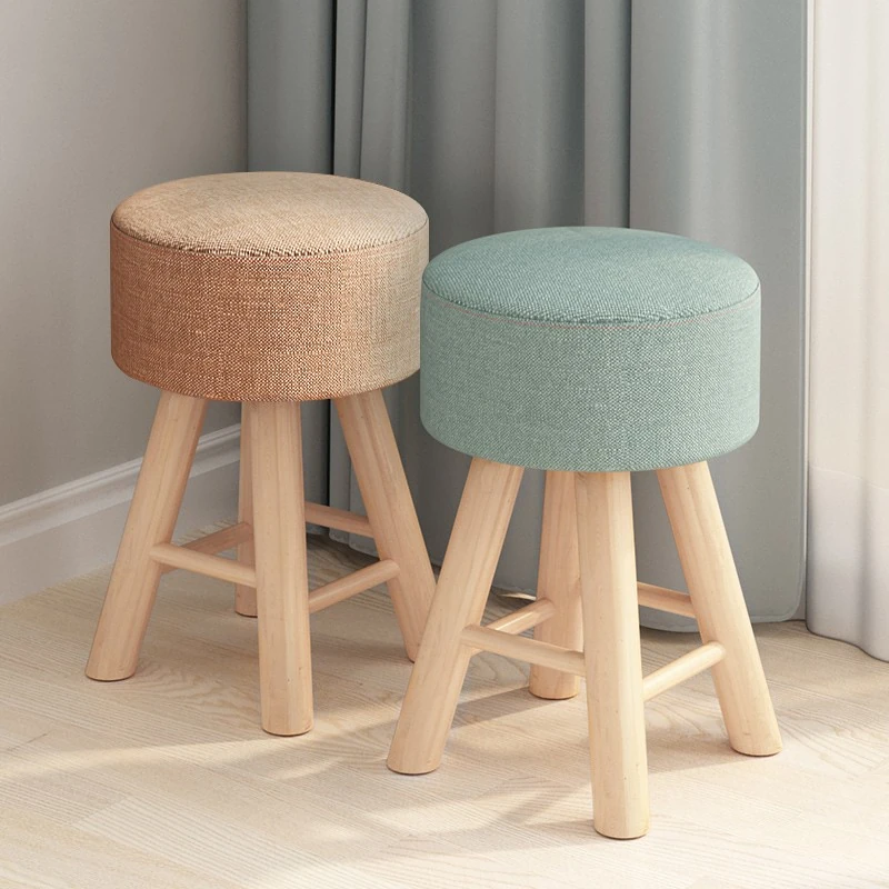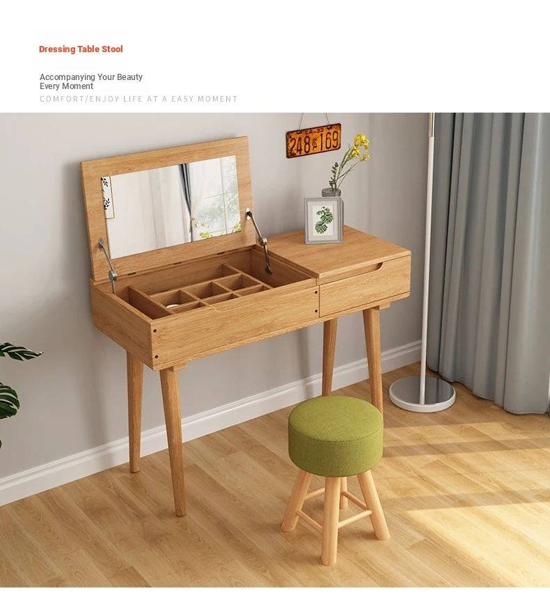 Modern Minimalist Solid Wood Vanity Stool - Cute and Stylish Makeup Chair for Girls, Perfect for Bedroom Use and Relaxation.