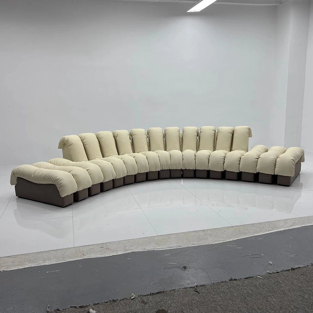 Vintage Style Genuine Leather Serpent-Shaped Sofa – Modern Minimalist Luxury Top-Grain Cowhide Modular Sectional for Living Room