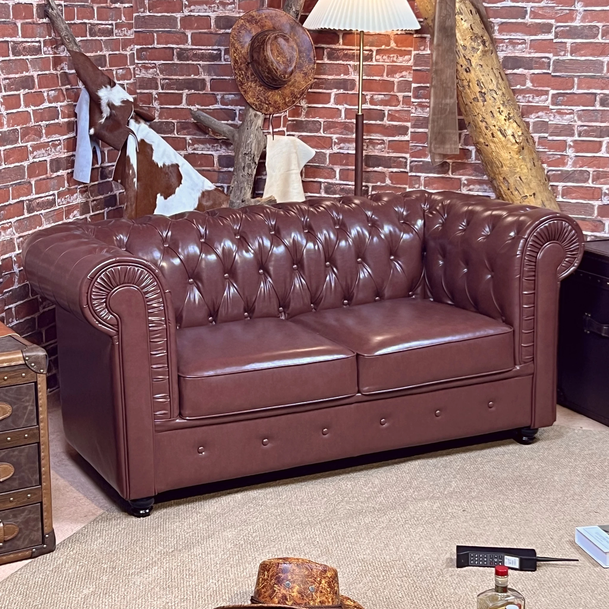 Premium American Leather Sofa for Small Living Rooms - Vintage Button-Tufted Design, Solid Wood Frame, Elegant Faux Leather Upholstery, Perfect for Chic and Stylish Spaces