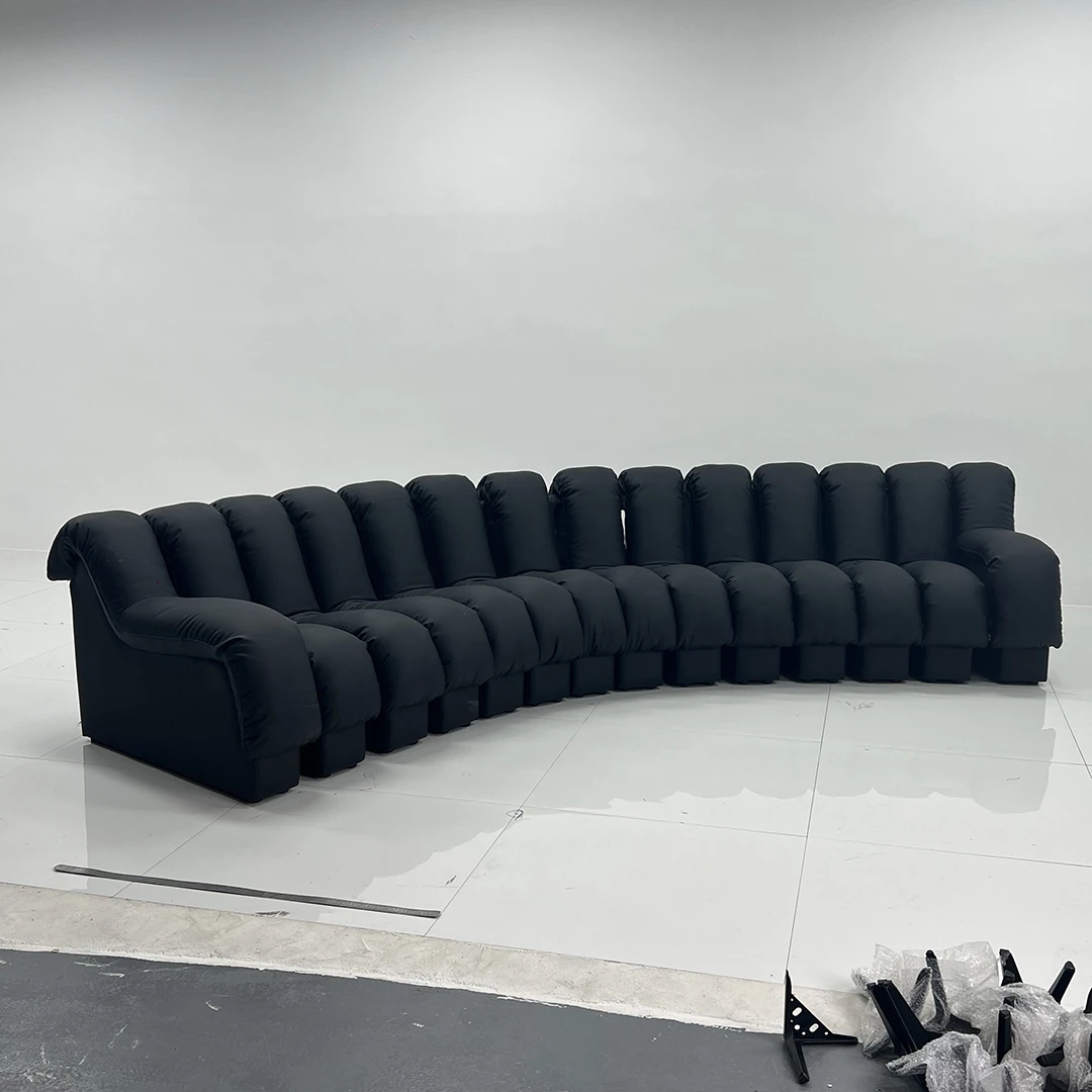 Vintage Genuine Leather Curved Centipede Serpent Shape Sofa - Modern Irregular Corner Combination Furniture for Beauty Salons