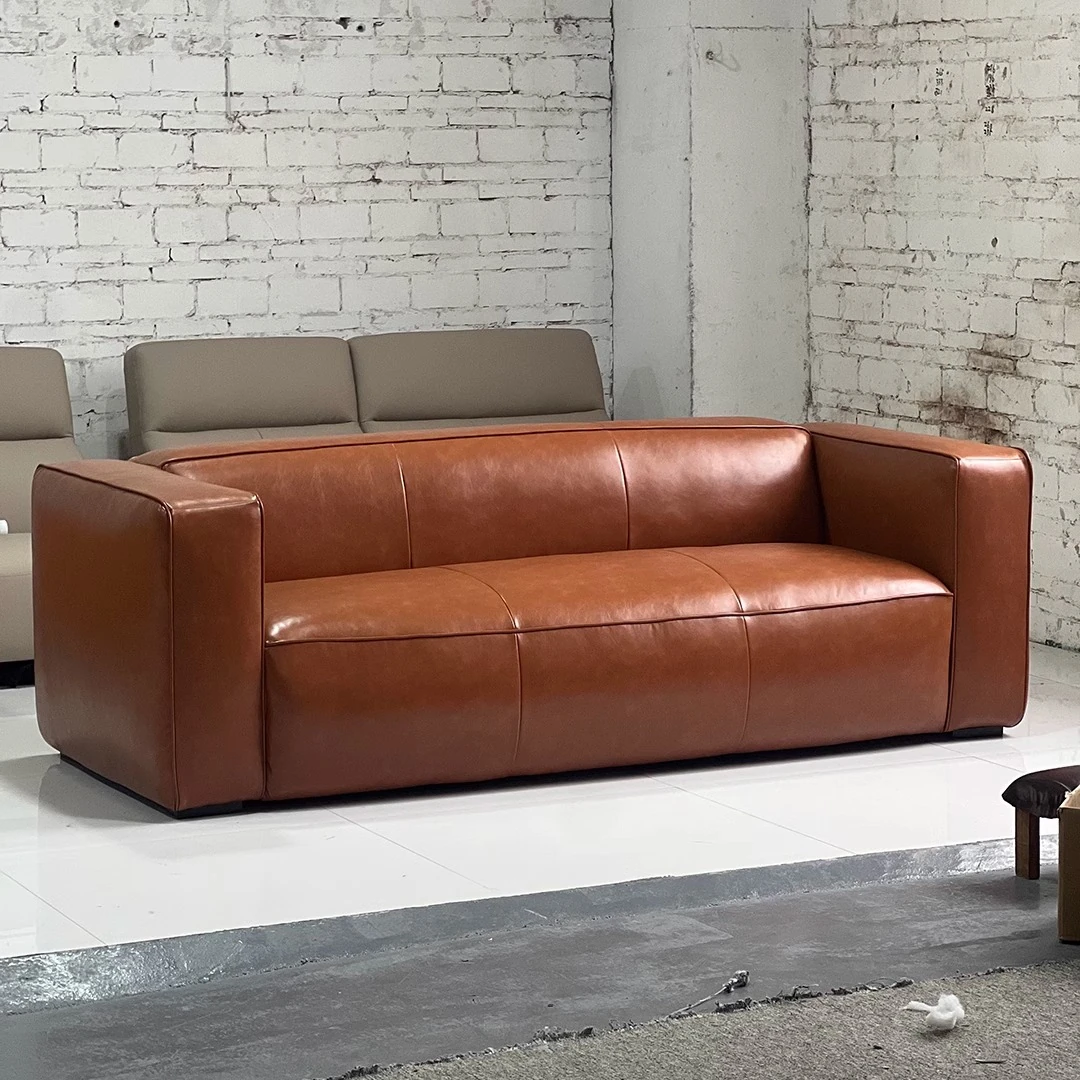 Vintage American Retro Leather Tofu Block Sofa - Stylish 3-Seater for Living Room, Villa, or Hotel - Perfect Blend of Comfort and Elegance