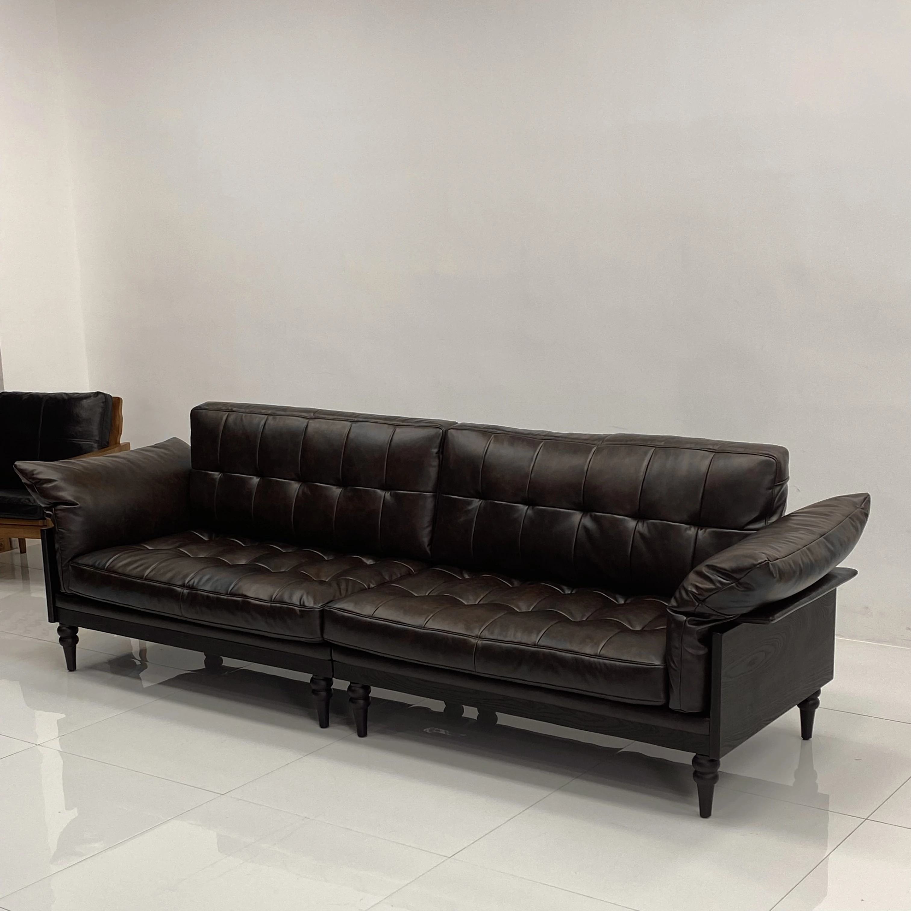Vintage American Style Kenny Genuine Leather Sofa - Elegant Black, High-Quality Real Leather with Solid Wood Frame for Your Living Room - New Arrival!