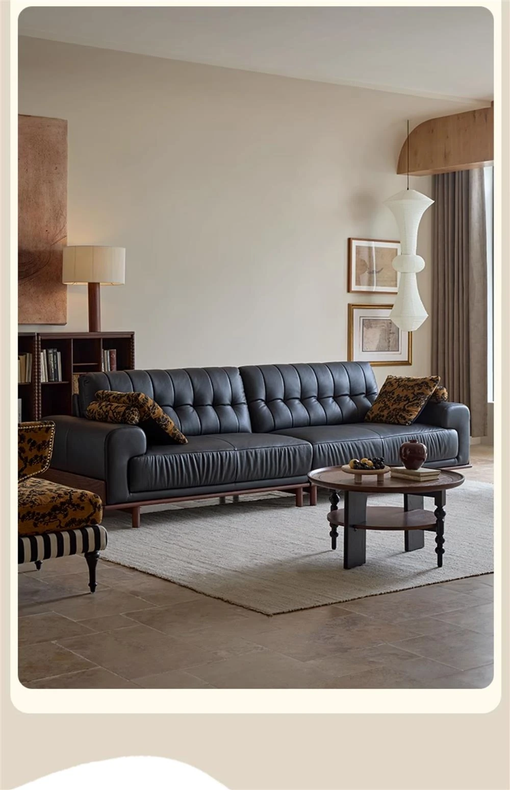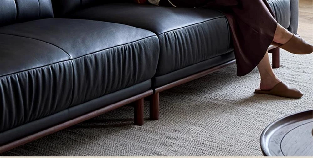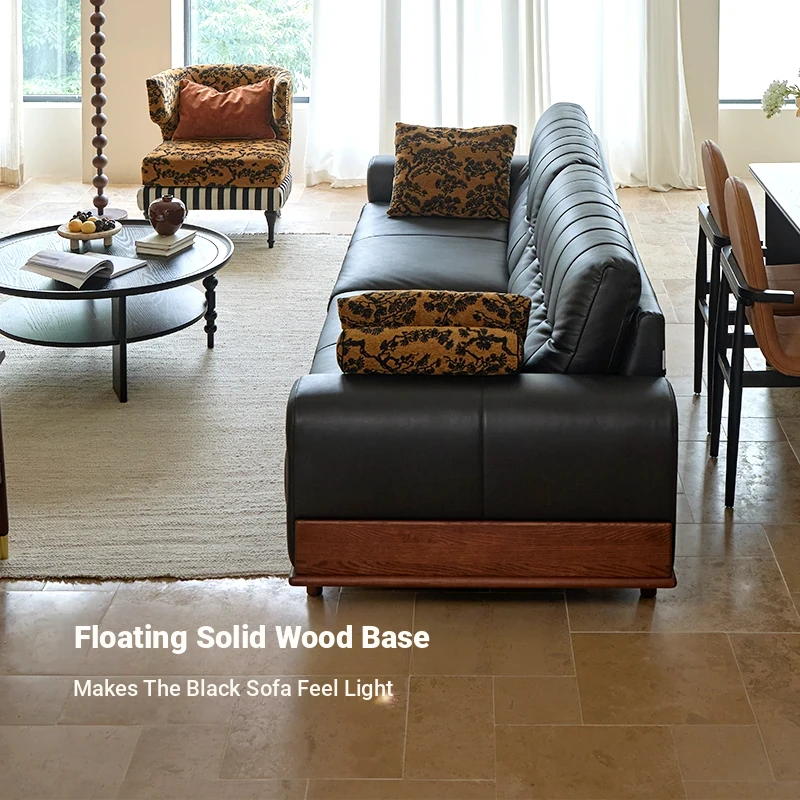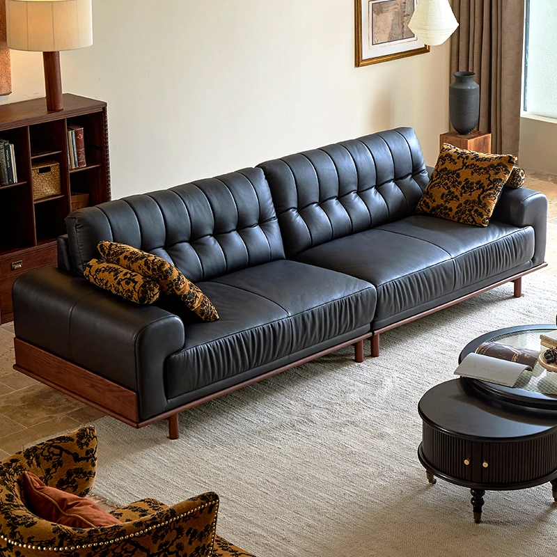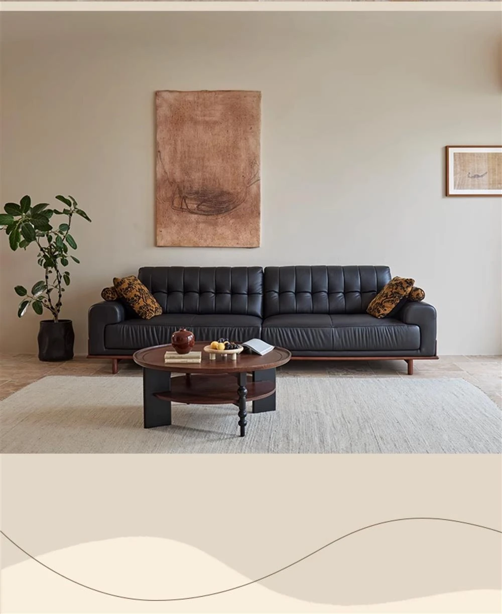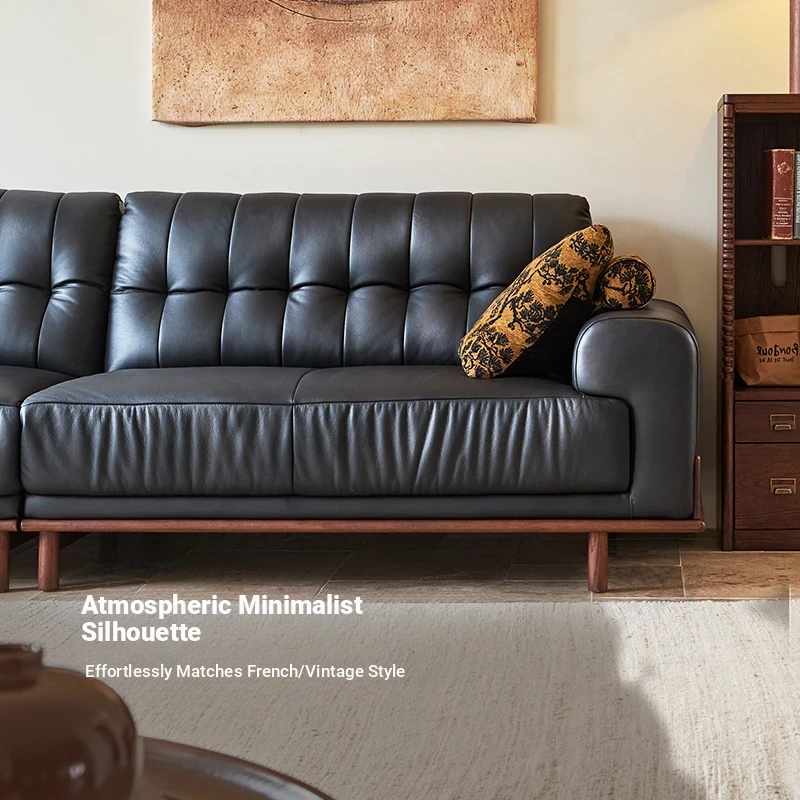 2025 New Vintage French Style Genuine Leather Sofa for Small Living Rooms - Chic Black Design for a Sophisticated Touch in Your Home