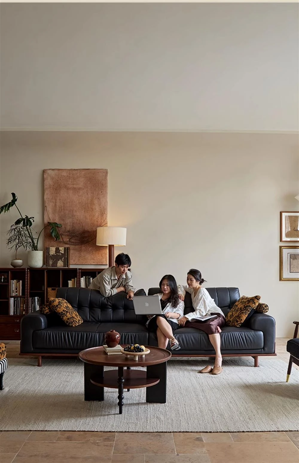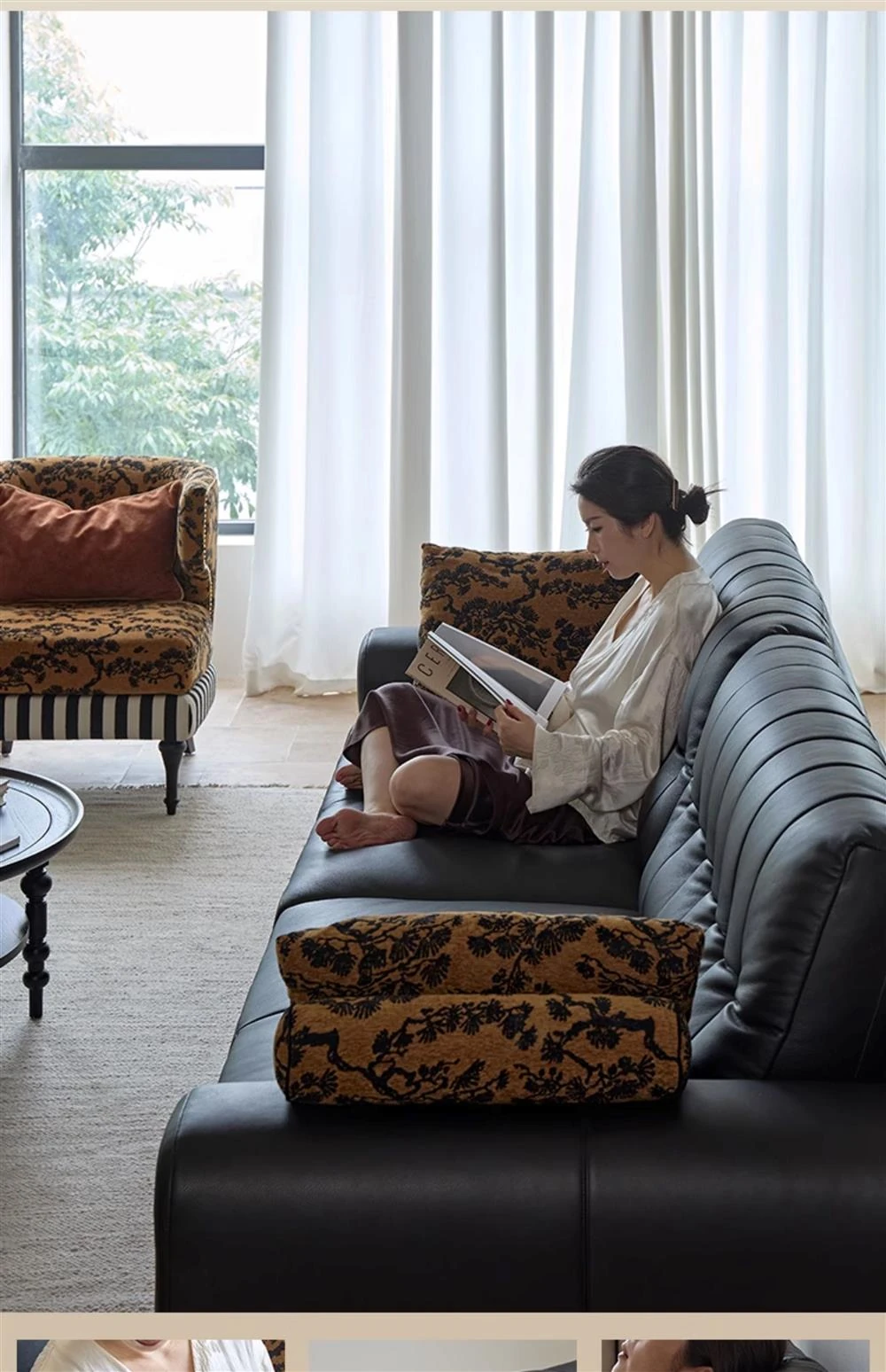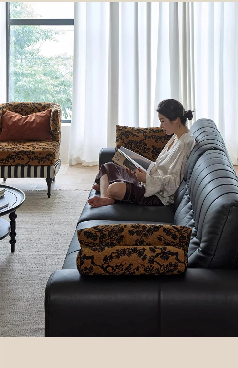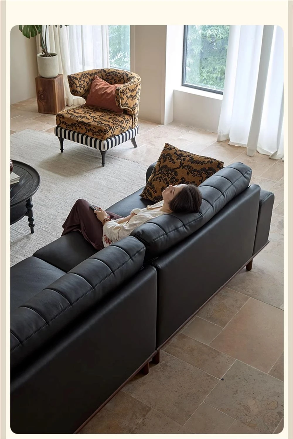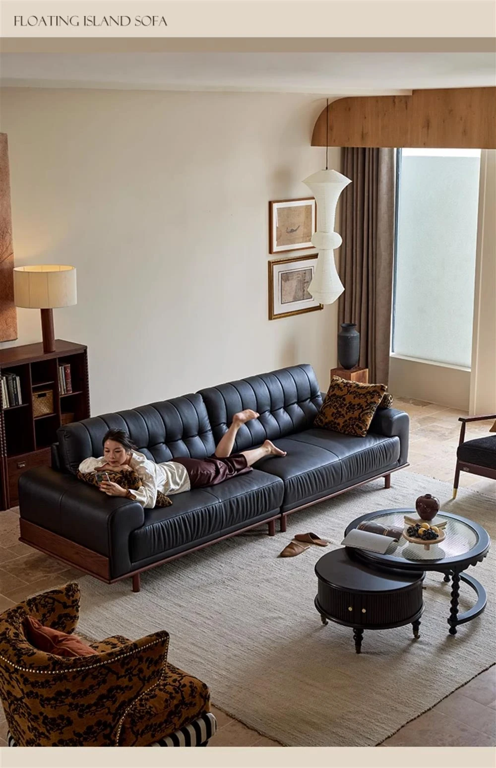 2025 New Vintage French Style Genuine Leather Sofa for Small Living Rooms - Chic Black Design for a Sophisticated Touch in Your Home