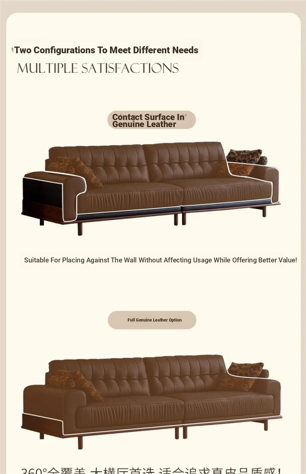 298x 99x 34.65in high quality ultra-fiber leather