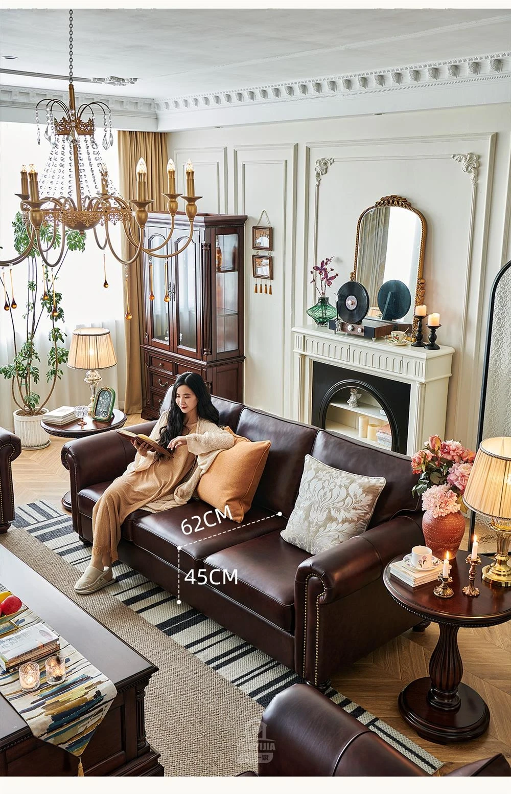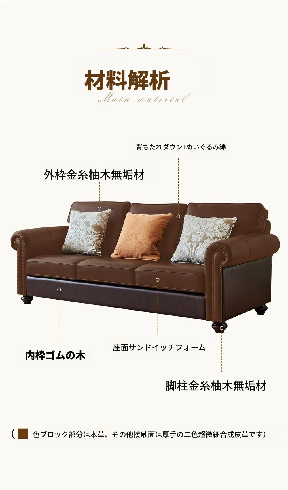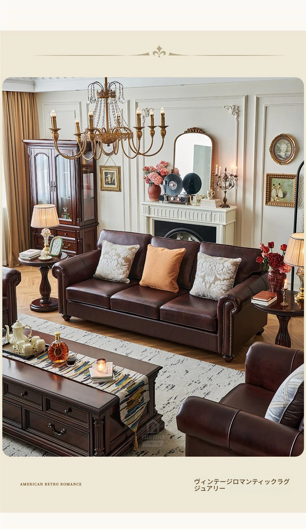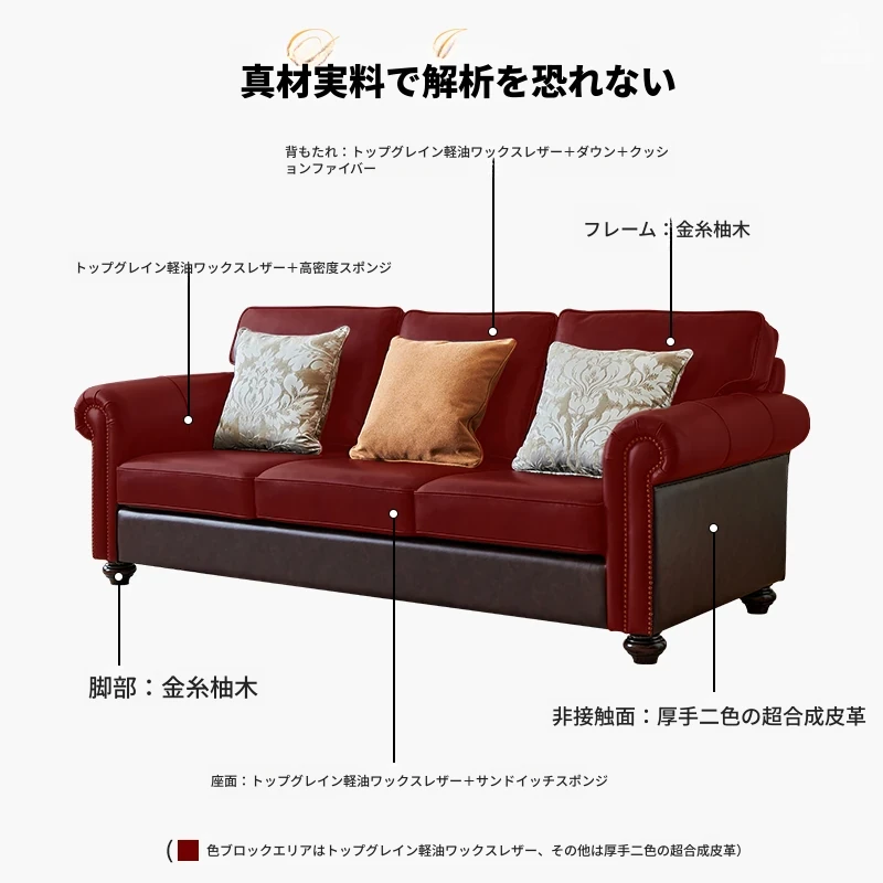 アメリカンレトロ本革ソファー - 大バットンのトップグレインオイルワックスレザー使用、小型リビングにぴったりな3人掛け無垢材ソファ!高級感溢れるデザインで、居心地の良い空間を演出します。
