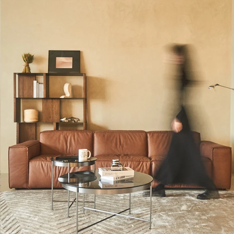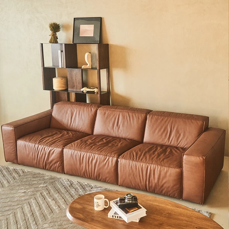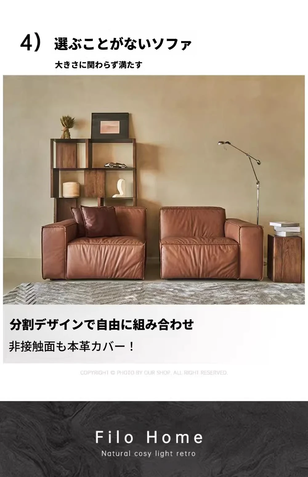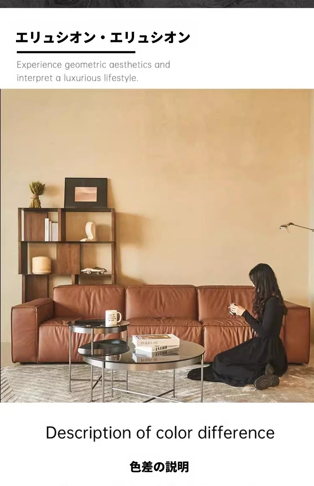 アメリカンレトロのラフな雰囲気、侘び寂びのエッセンスを取り入れたエルジシャンスタイルの本革ソファ。モジュールデザインで自由自在に配置可能、あなたのリビングルームをスタイリッシュに演出します!