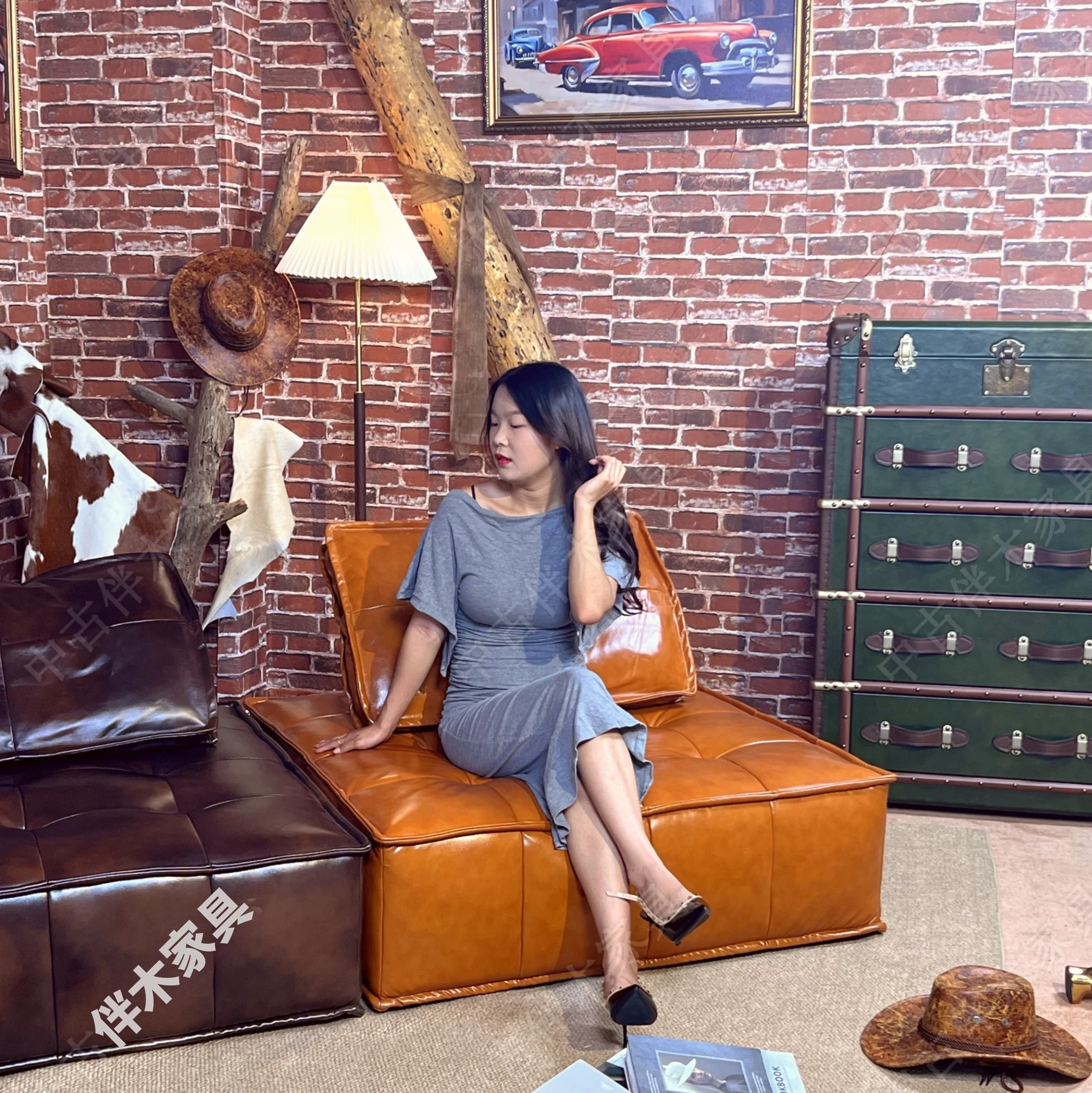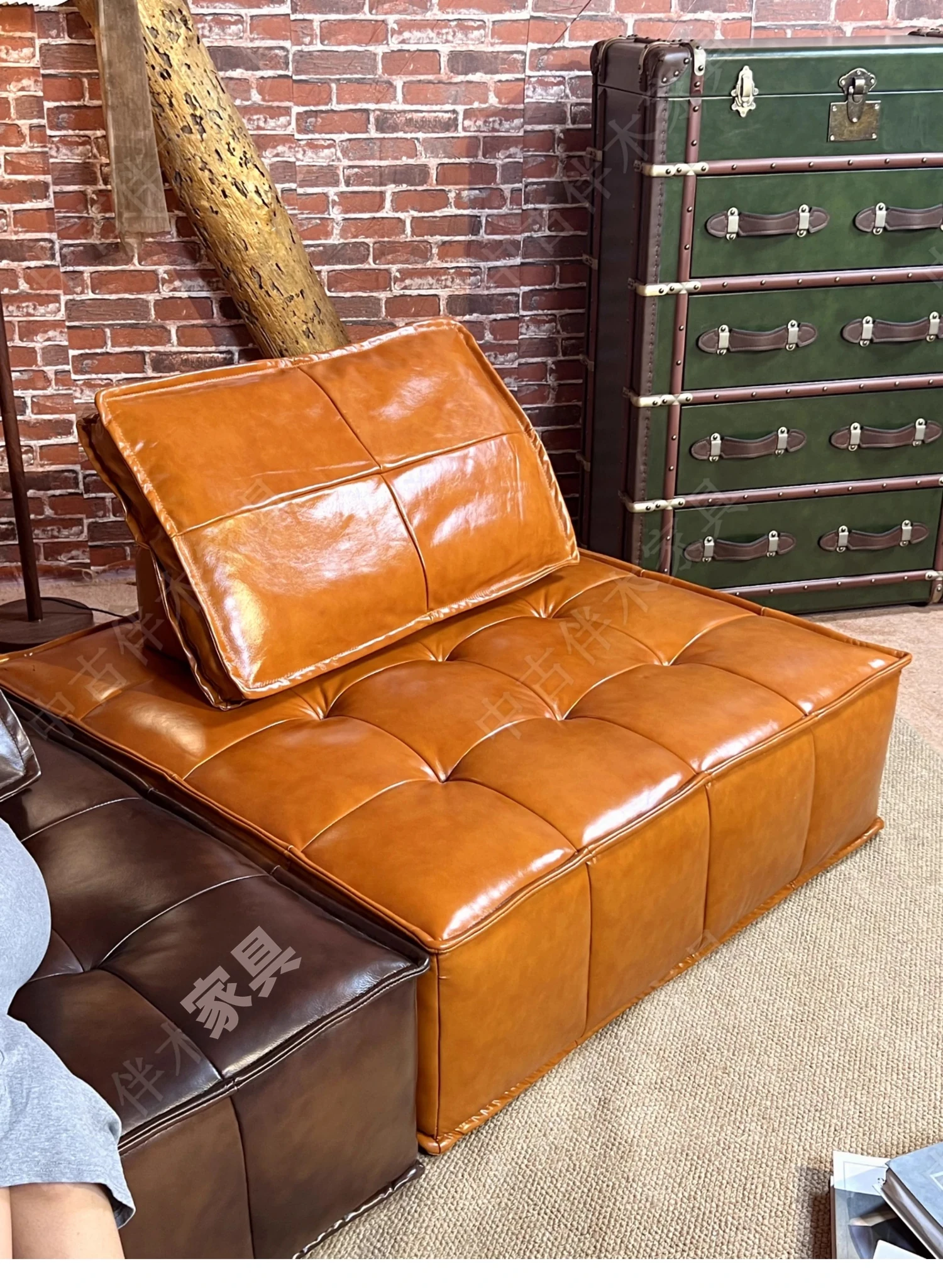アメリカンレトロ・ピエモンテソファ オイルワックス本革・一人掛け・トーフクッションスタイル 北欧ヴィラ・リビングルームに最適な中古品!洗練されたデザインで、心地よい空間を演出します。