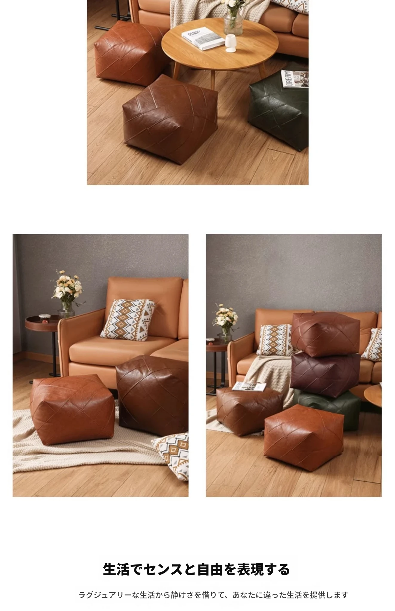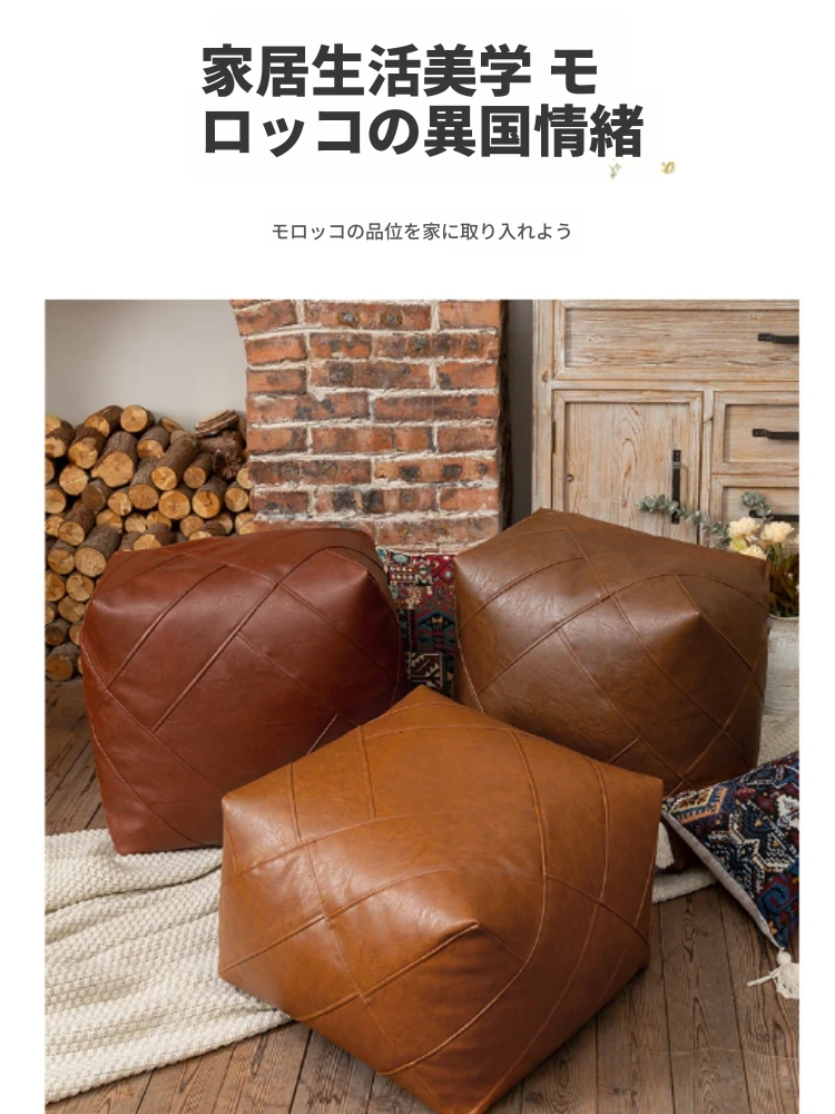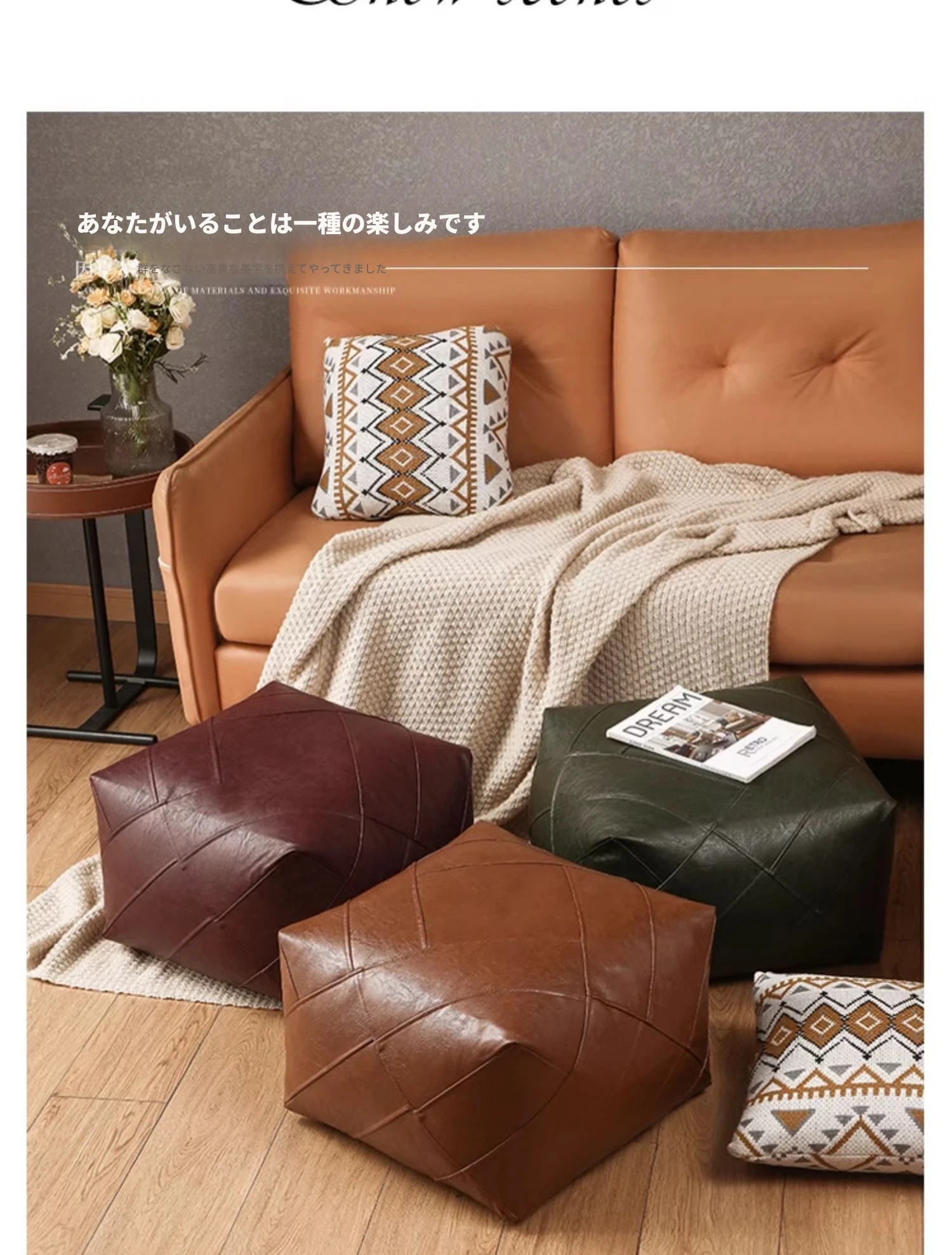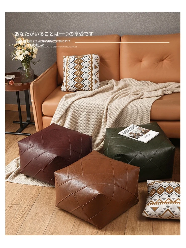 アメリカンライトラグジュアリー レザー ラウンジオットマン 足置き 座布団 家庭用 シューズチェンジベンチ 創造的なデザインで、リラックスした空間を演出!