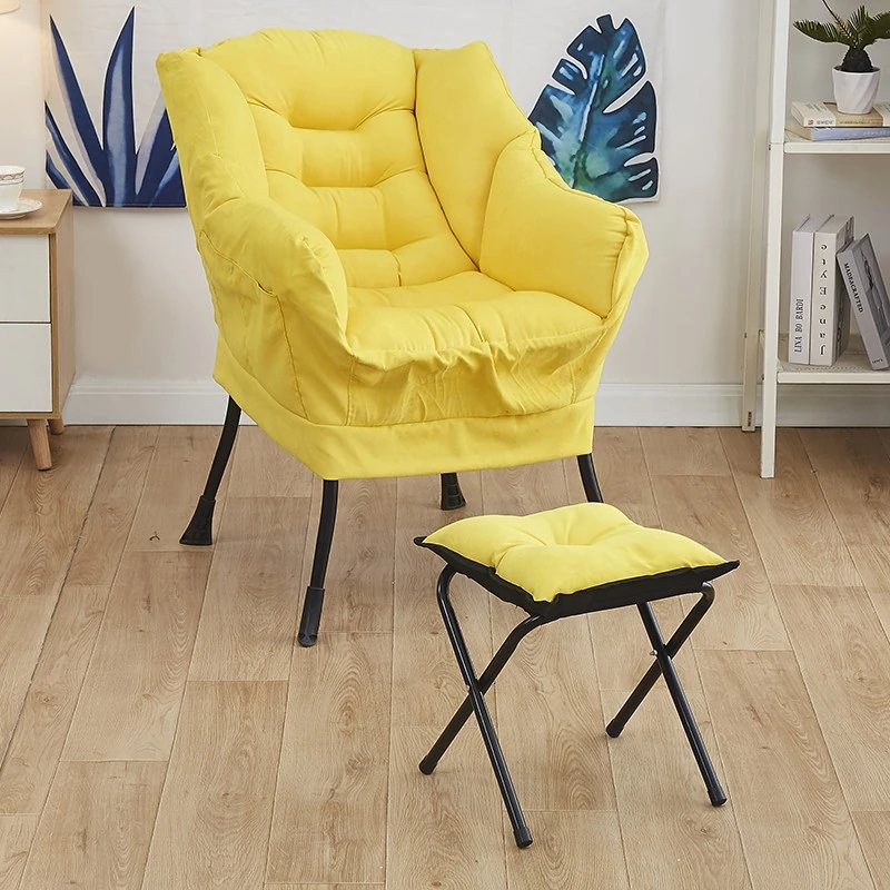 TJアップグレード厚手タイプ-黄色-ダメ人間チェア+フットスツール-コットンリネン