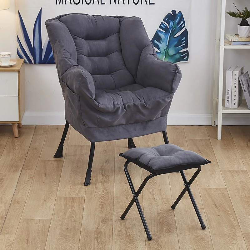 TJアップグレード厚手タイプ-灰色-ダメ人間チェア+フットスツール-スエード