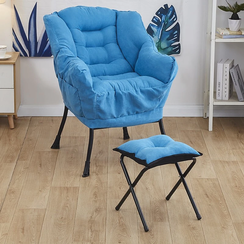 TJアップグレード厚手タイプ-青色-ダメ人間チェア+フットスツール-スエード