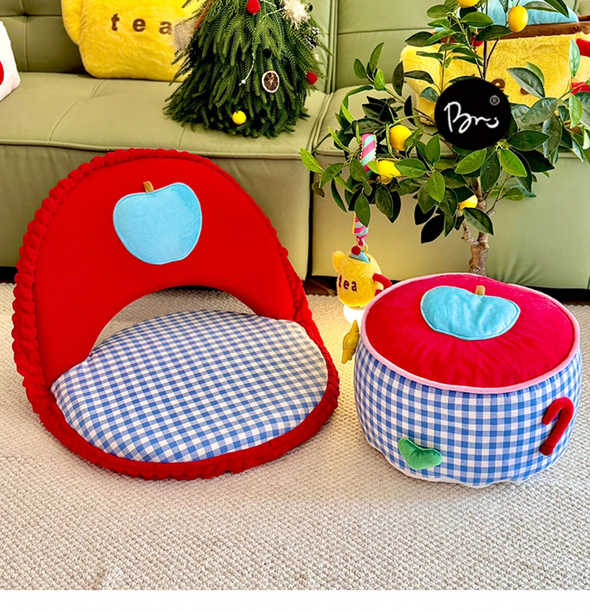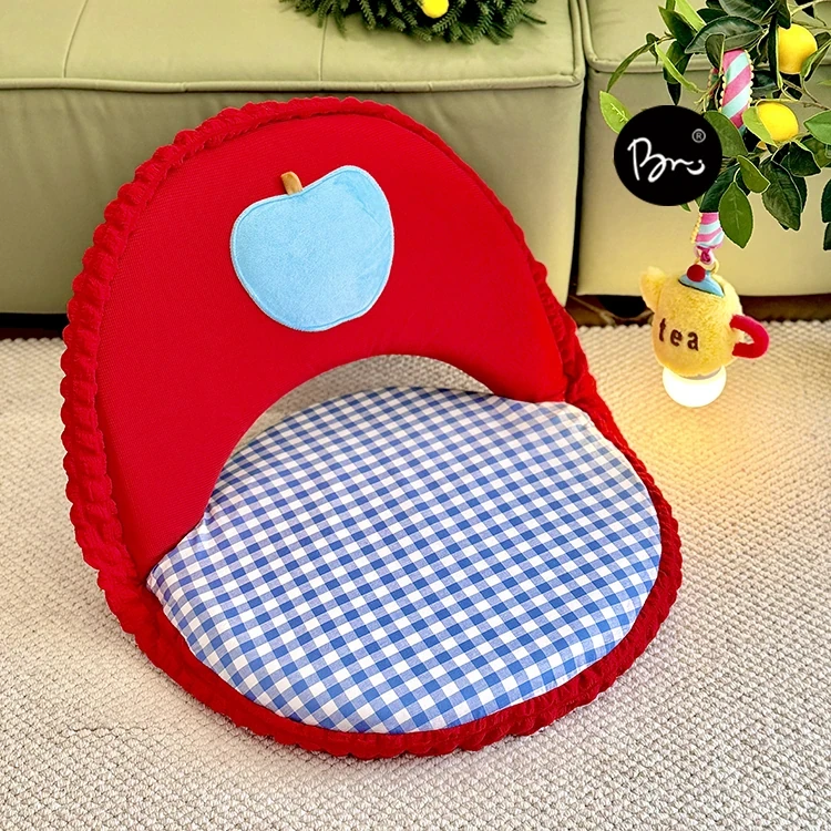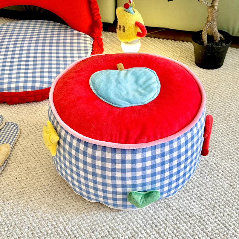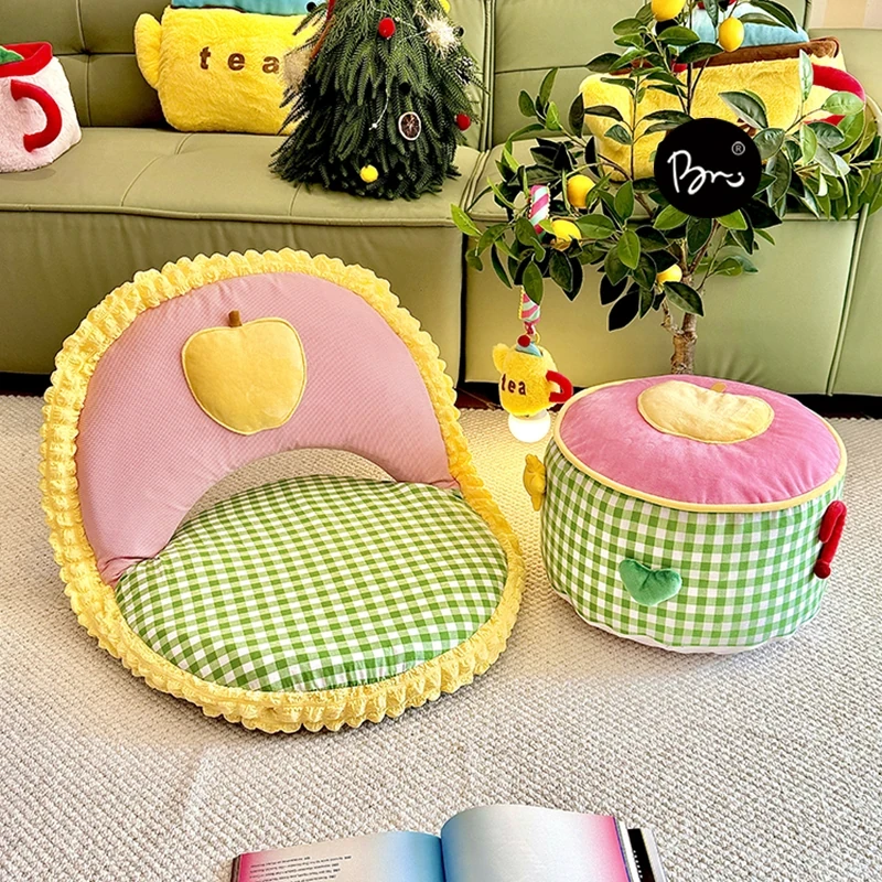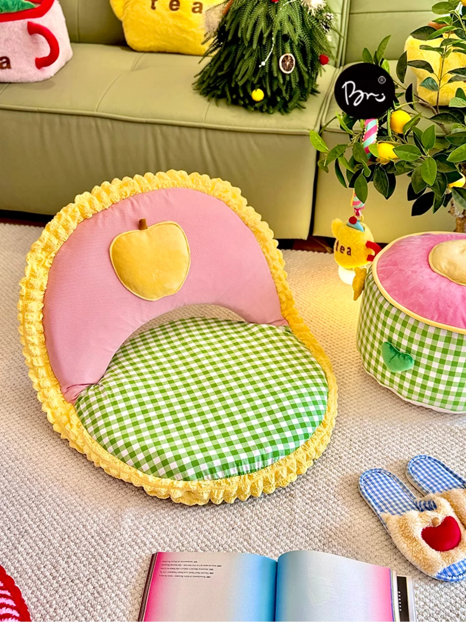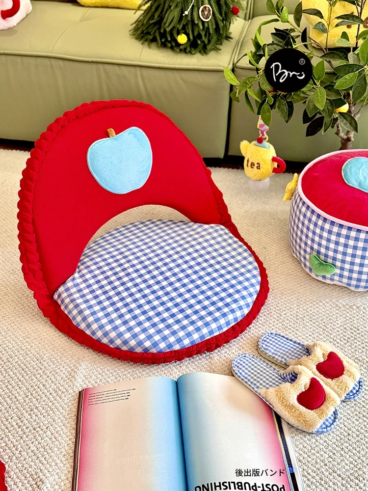 クリームチェック柄のアップルバックチェア!窓辺や畳のスペースにぴったりなリラックスソファ。子供用の可愛いデザインで、バルコニーやお部屋でも大活躍。くつろぎのひとときをお楽しみください!