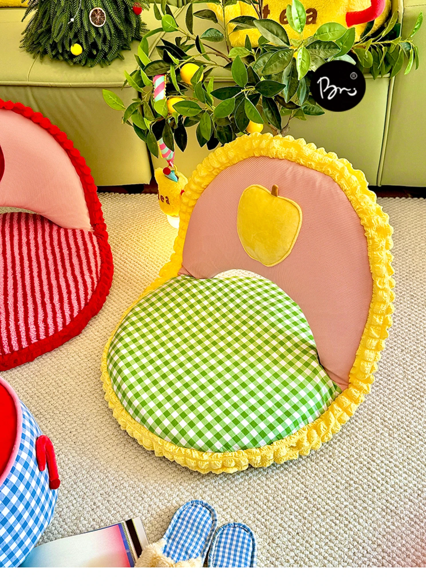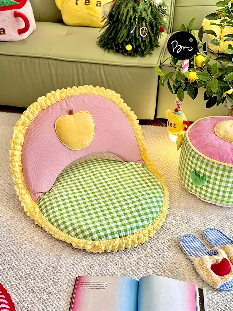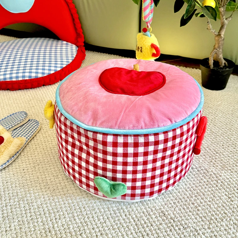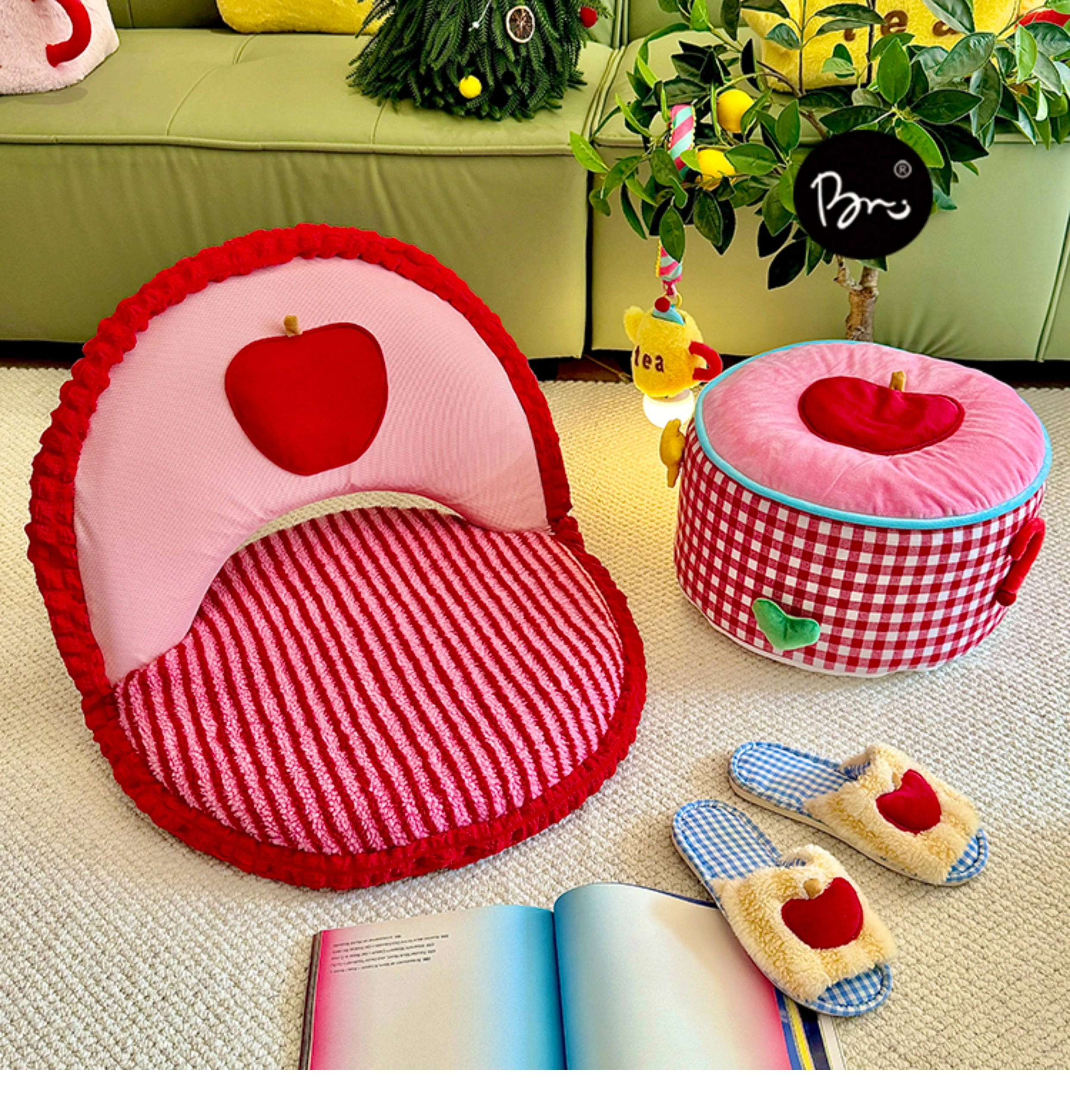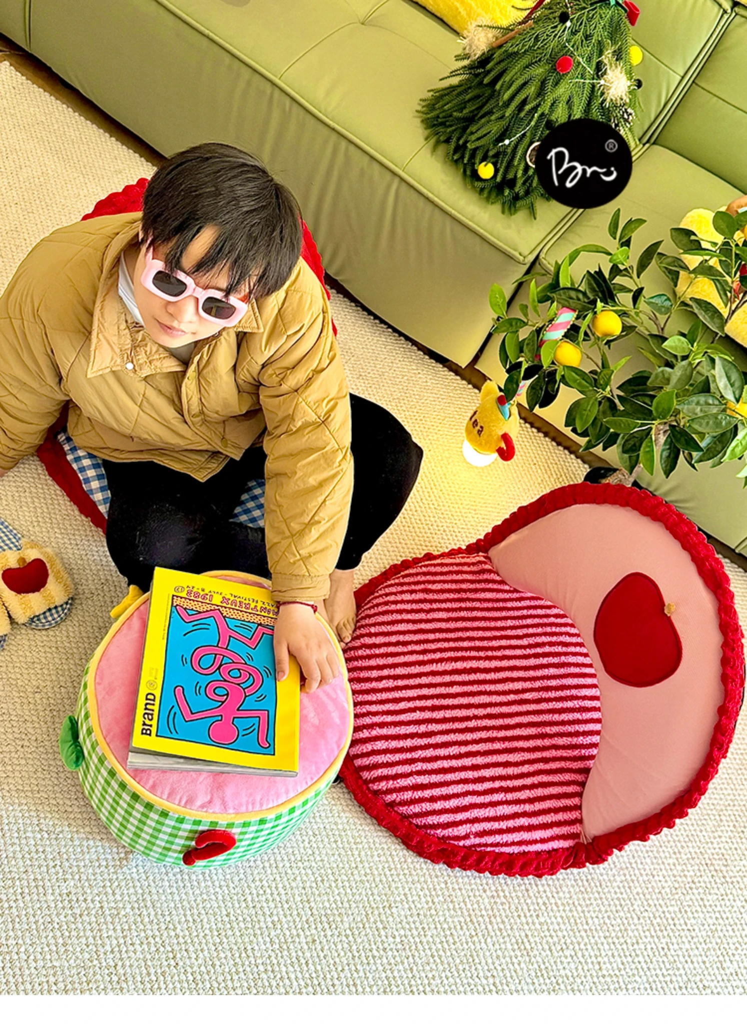クリームチェック柄のアップルバックチェア!窓辺や畳のスペースにぴったりなリラックスソファ。子供用の可愛いデザインで、バルコニーやお部屋でも大活躍。くつろぎのひとときをお楽しみください!