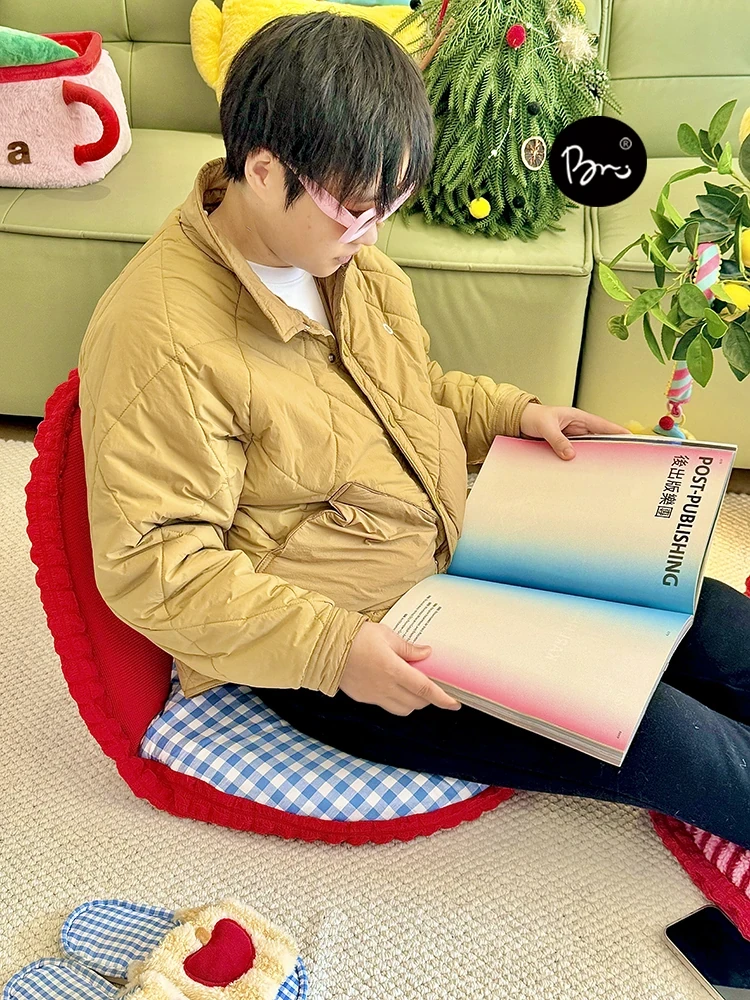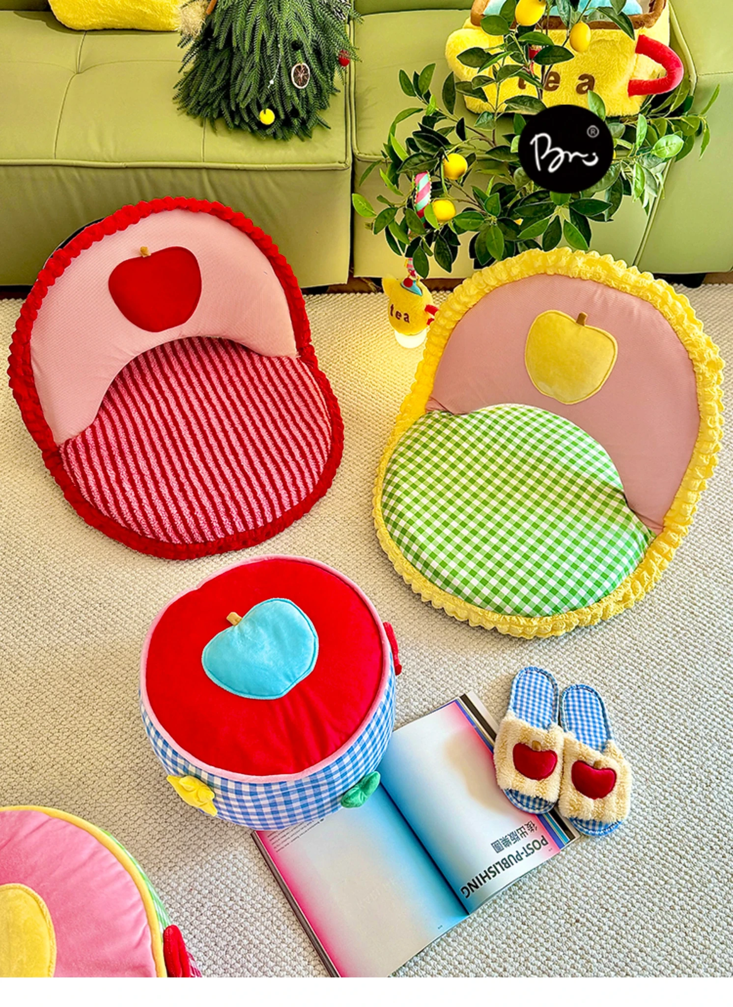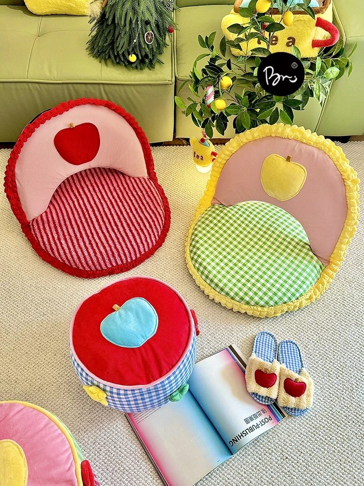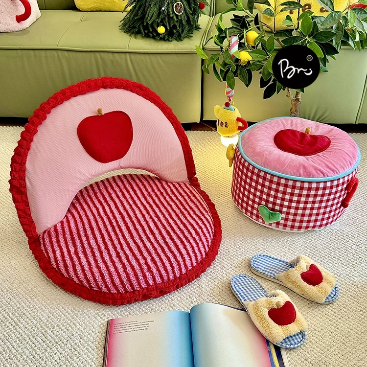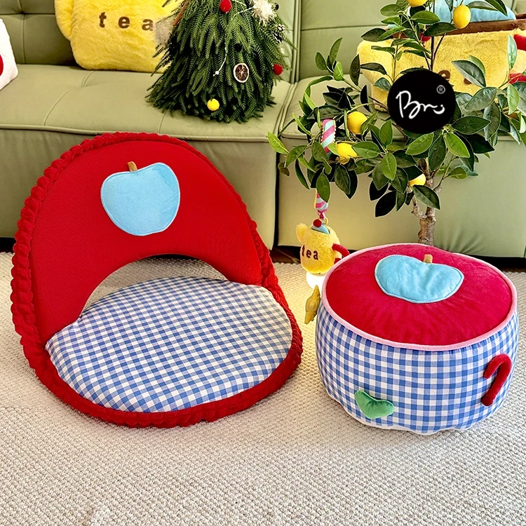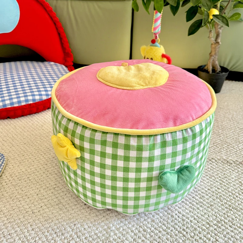 クリームチェック柄のアップルバックチェア!窓辺や畳のスペースにぴったりなリラックスソファ。子供用の可愛いデザインで、バルコニーやお部屋でも大活躍。くつろぎのひとときをお楽しみください!