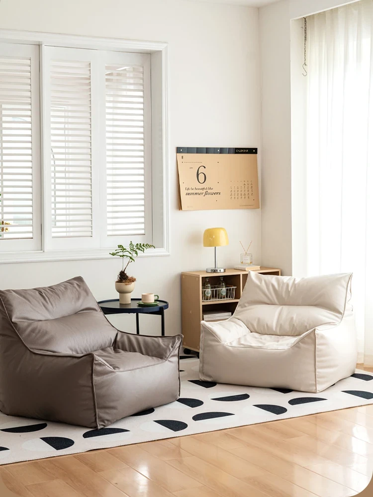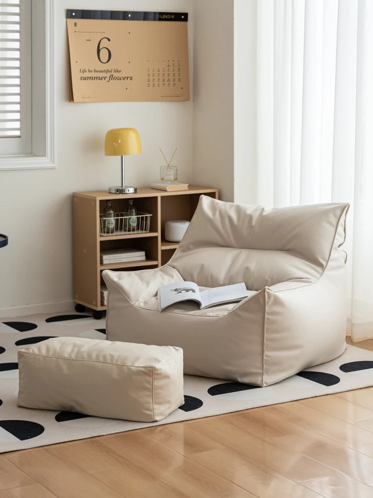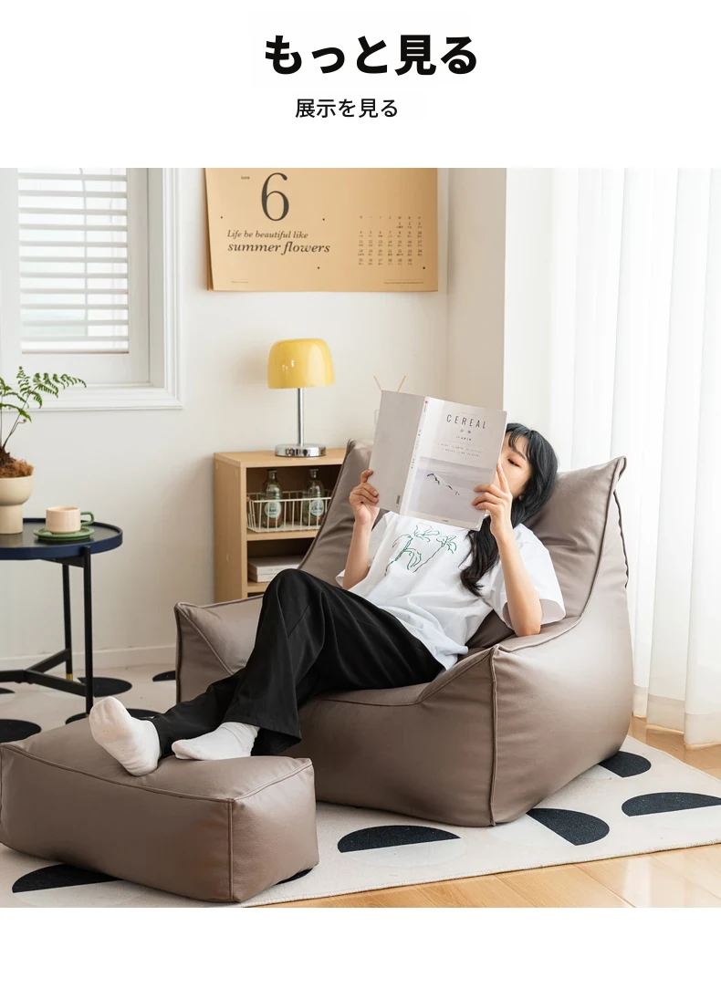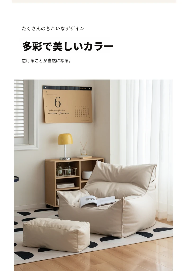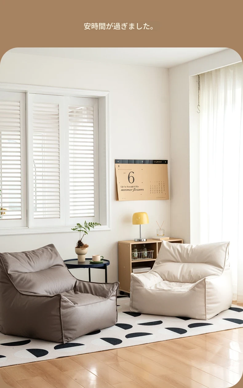 クリーミー風のリラックスソファ!寝転んでくつろげる小悪魔ソファ、寝室やバルコニーにぴったりの家庭用リクライニングチェア。和風デザインで一人暮らしにも最適!