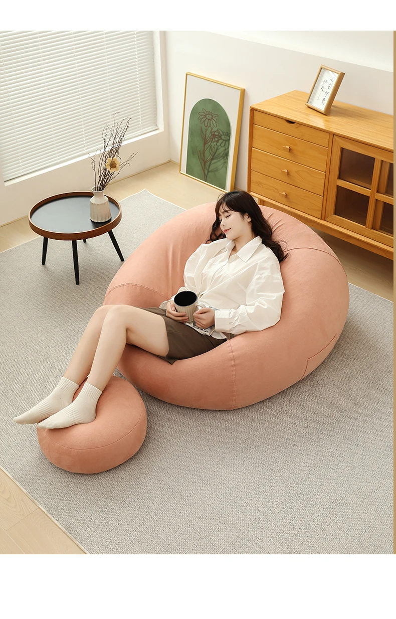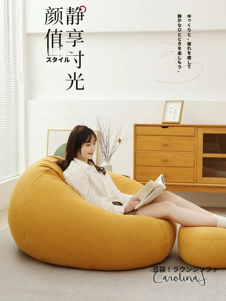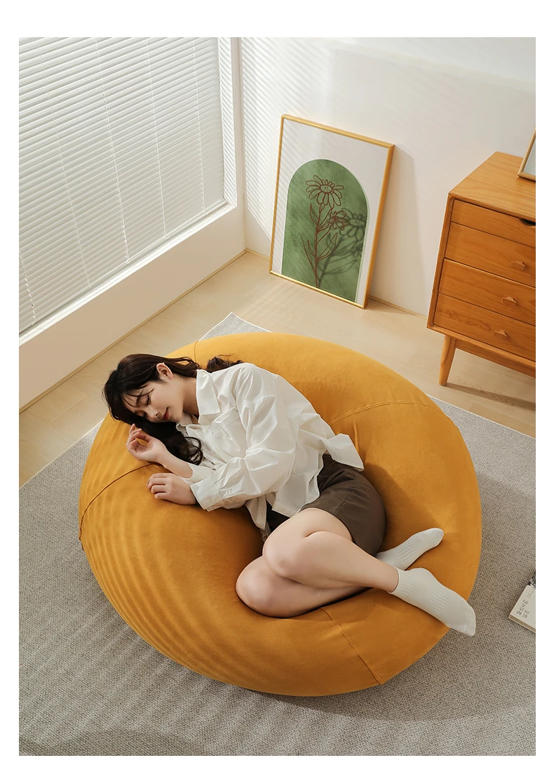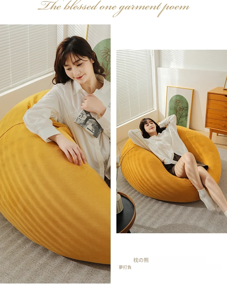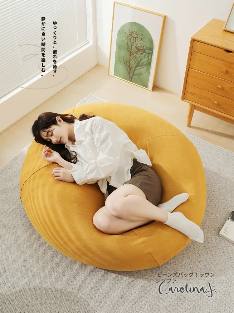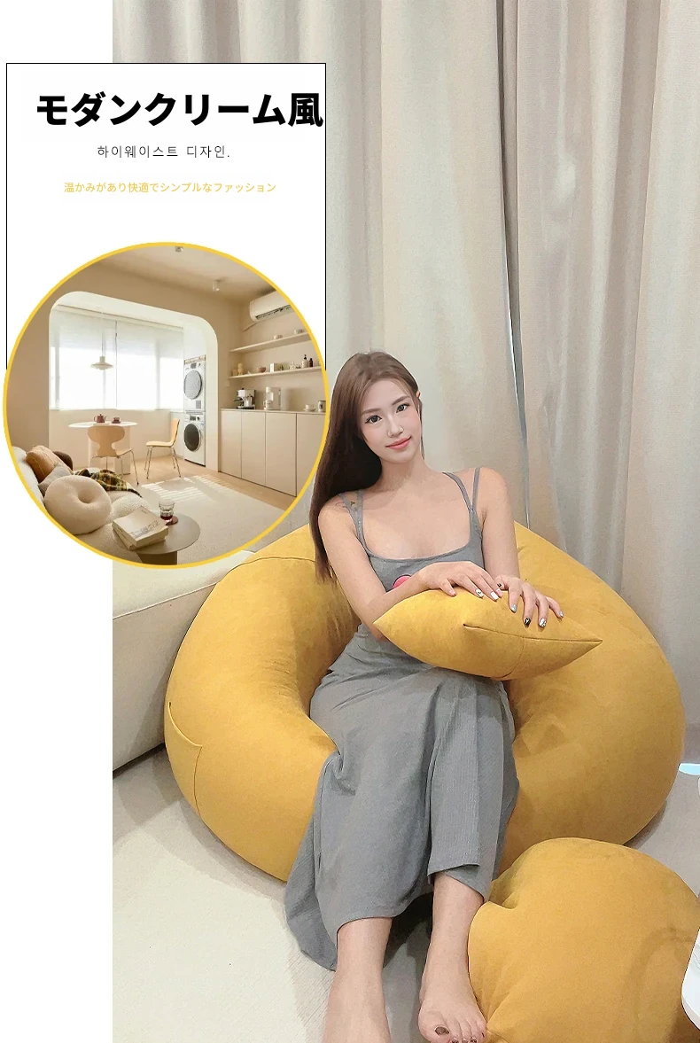 クリーム風のリラックスソファー・ビーンバッグ、畳スタイルの寝室やバルコニーにぴったり!一人用の居心地の良いベッド、子供の読書にも最適な柔らかい椅子です。あなたの空間に癒しをプラス!