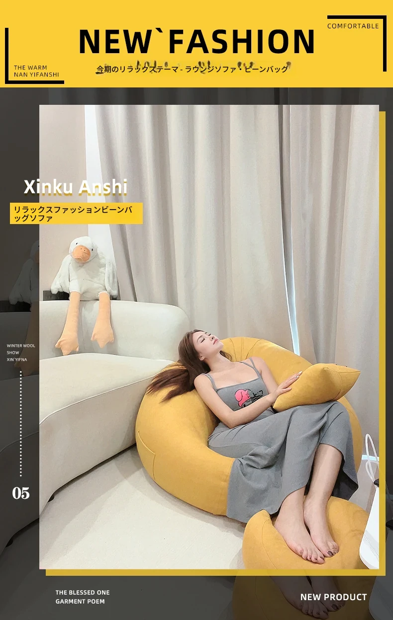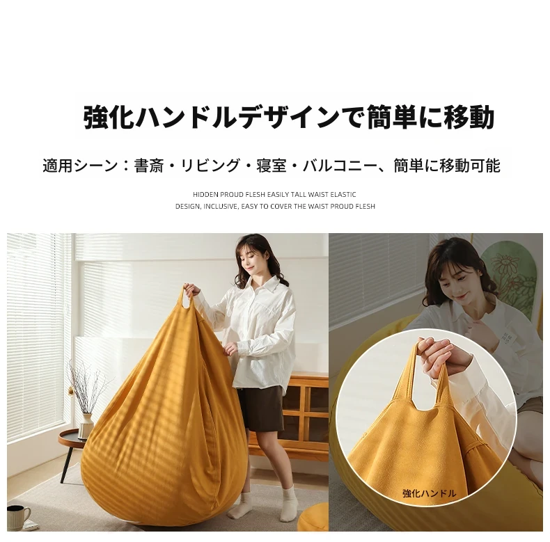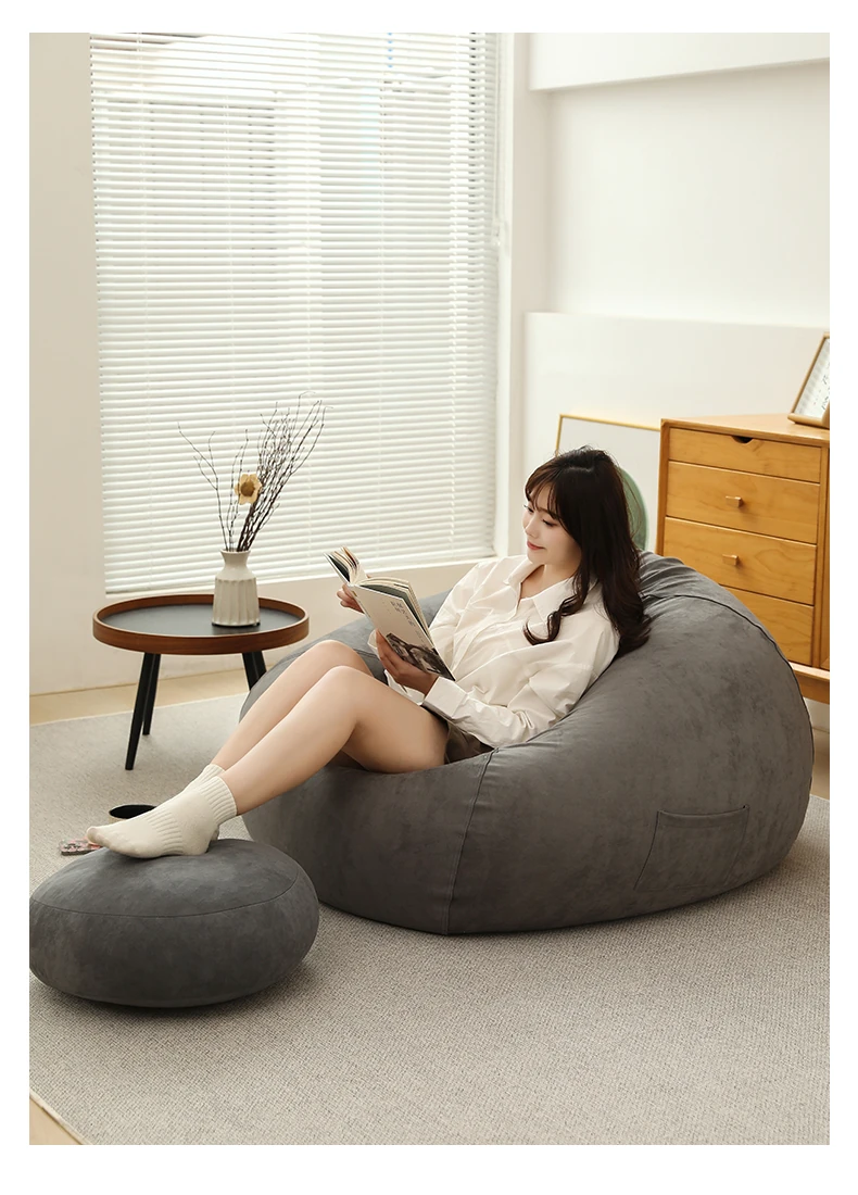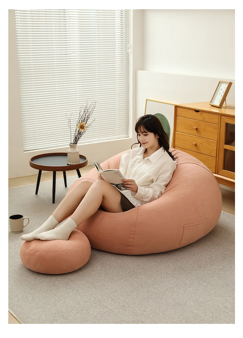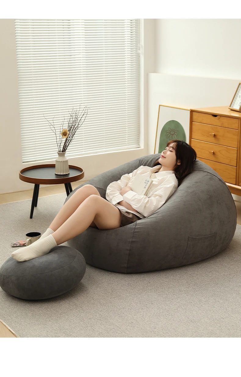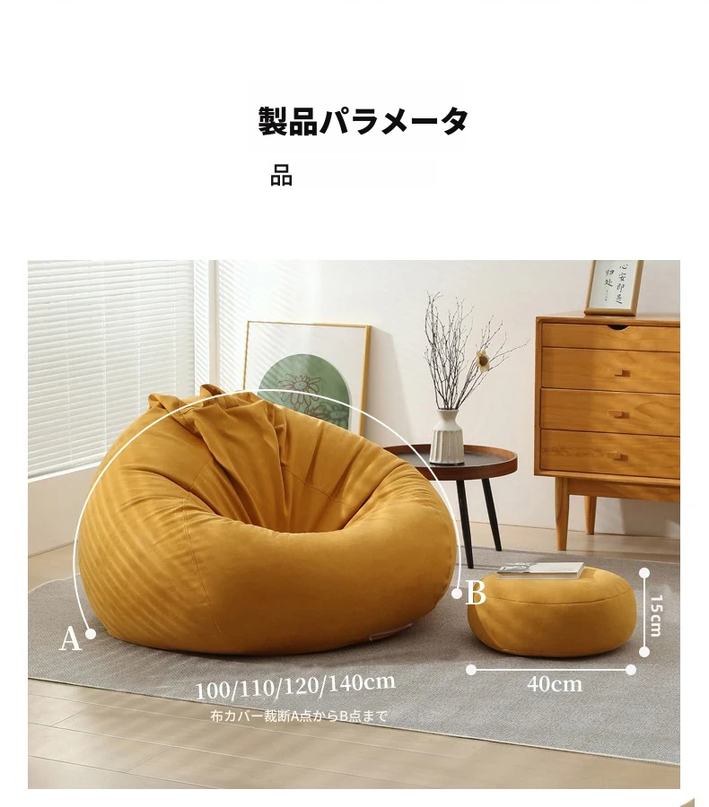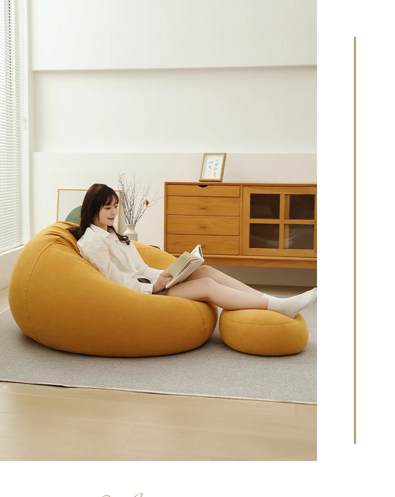 クリーム風のリラックスソファー・ビーンバッグ、畳スタイルの寝室やバルコニーにぴったり!一人用の居心地の良いベッド、子供の読書にも最適な柔らかい椅子です。あなたの空間に癒しをプラス!