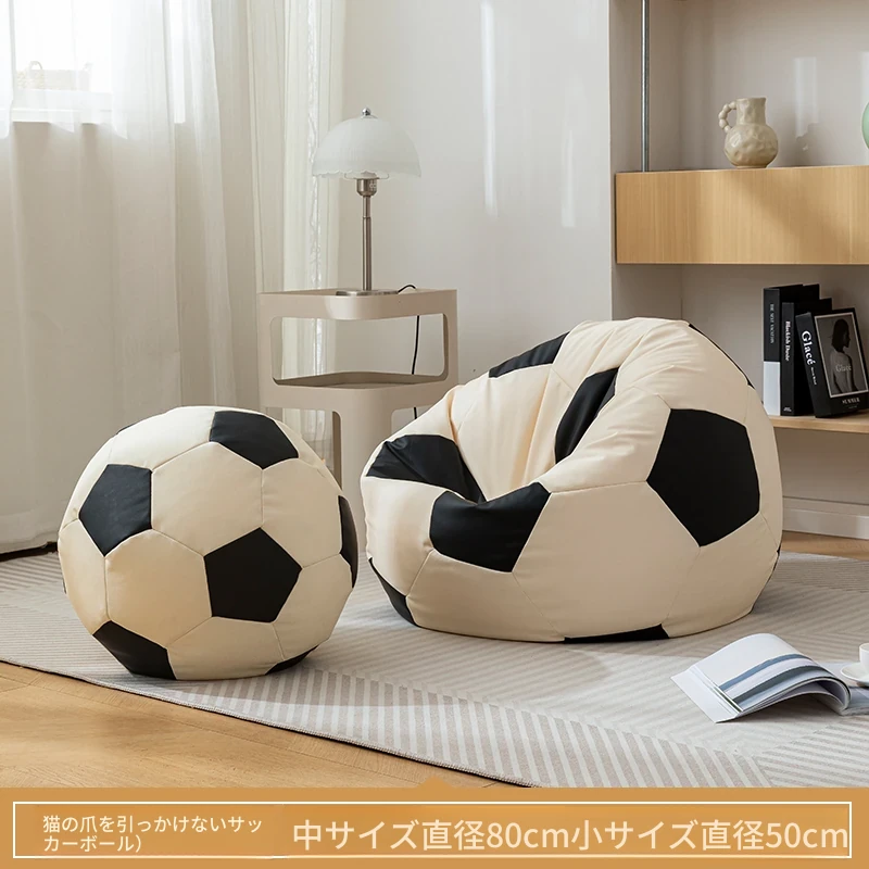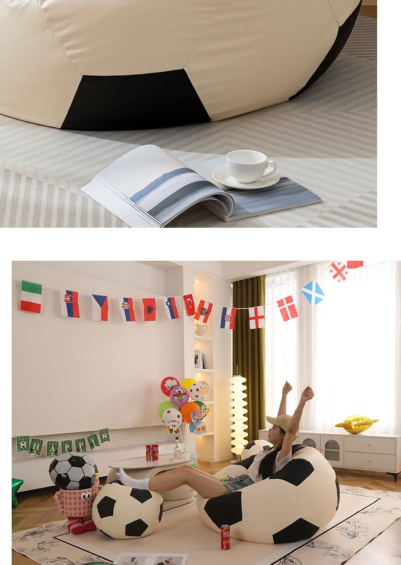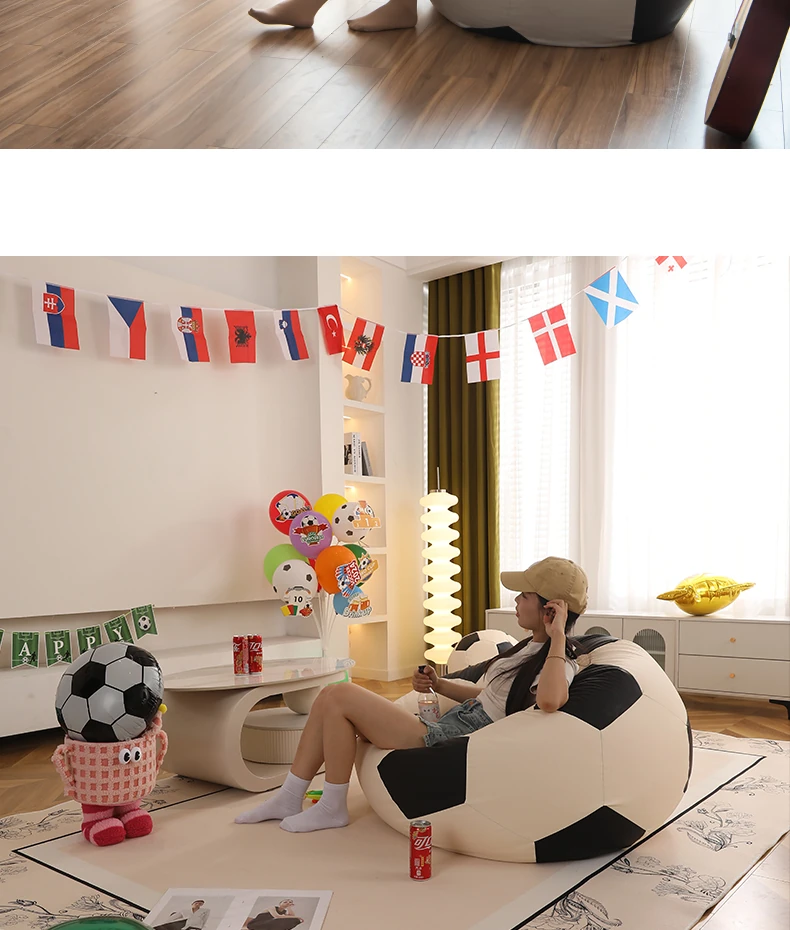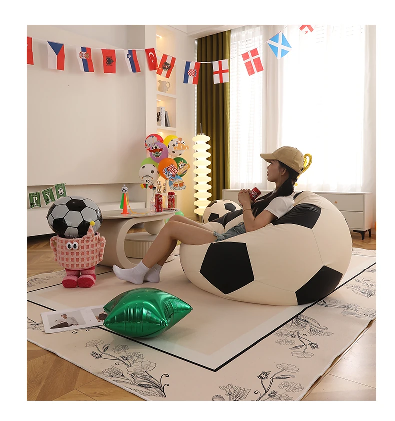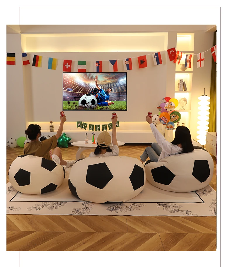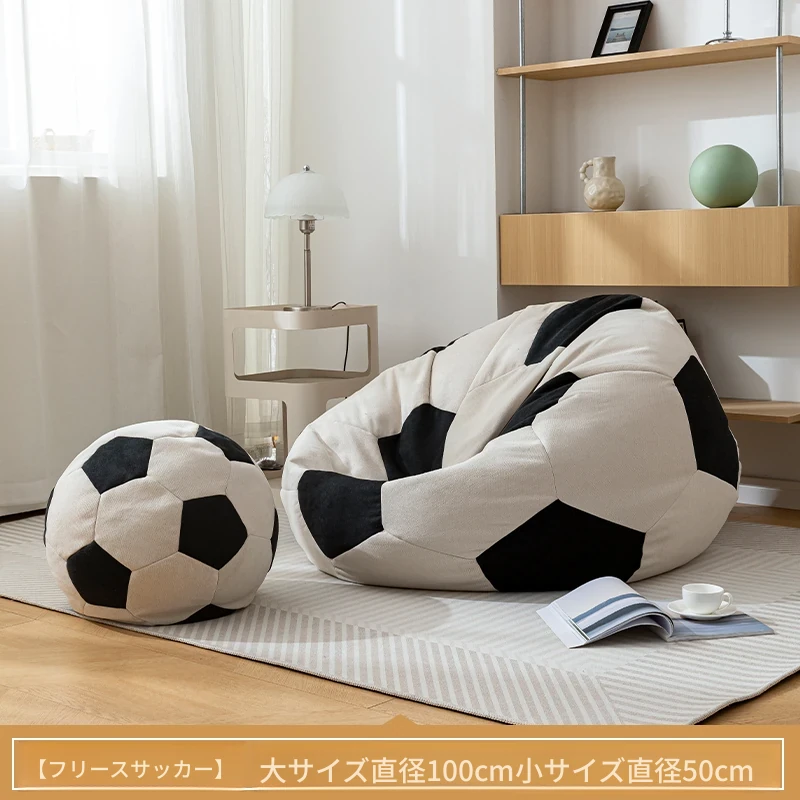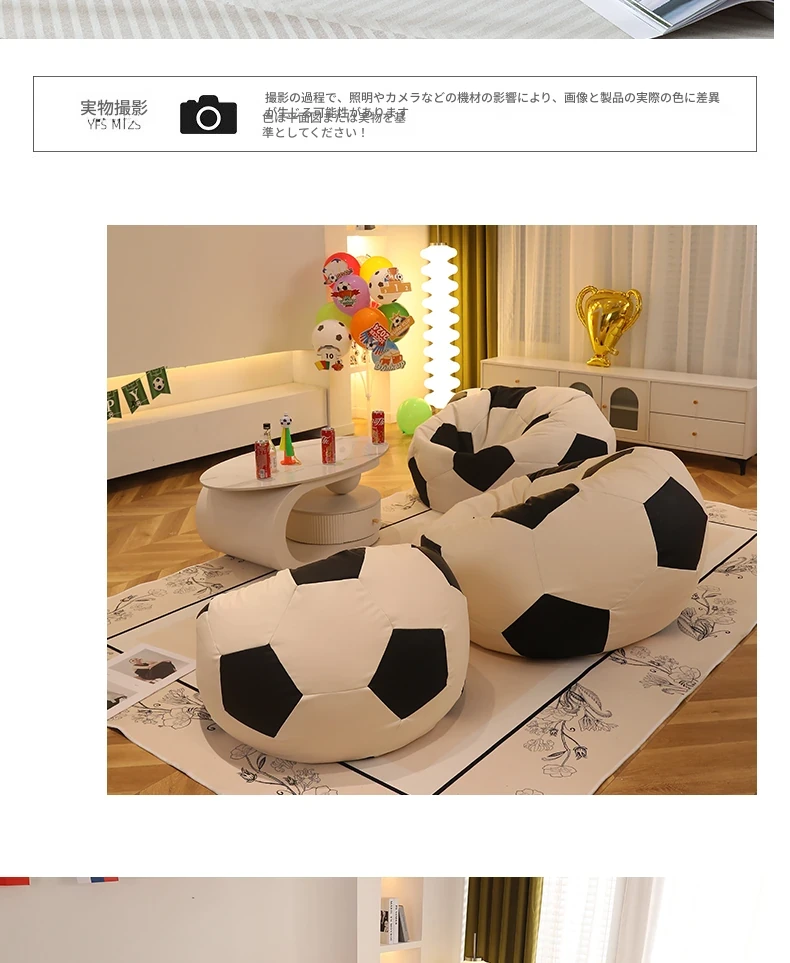 サッカー好き必見!おしゃれで高品質な豆袋ソファー - ワールドカップ気分を楽しむ個性的な子供用タタミソファ。リラックスしながら遊び心満載のデザインで、お部屋を彩ります!