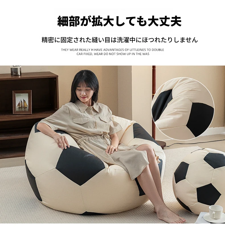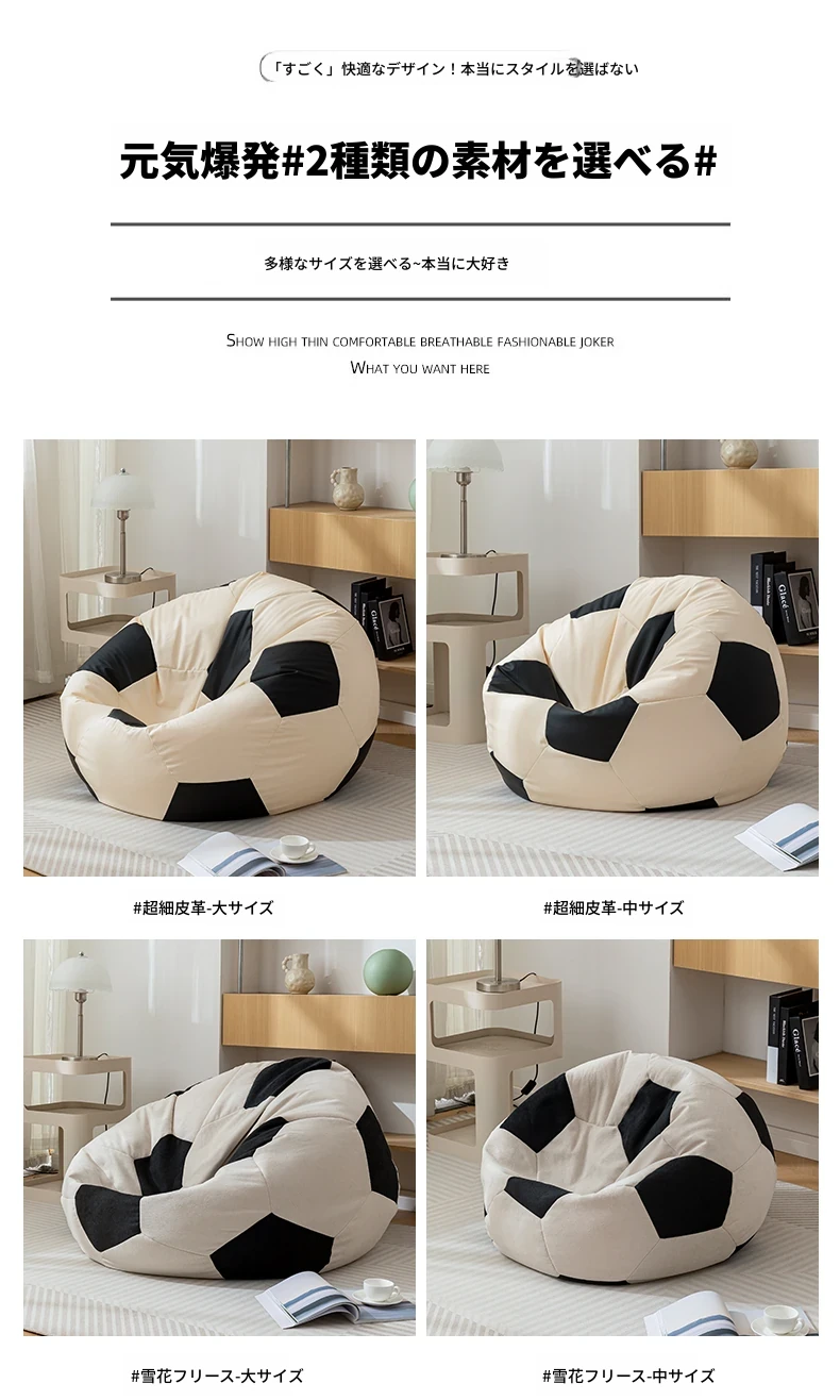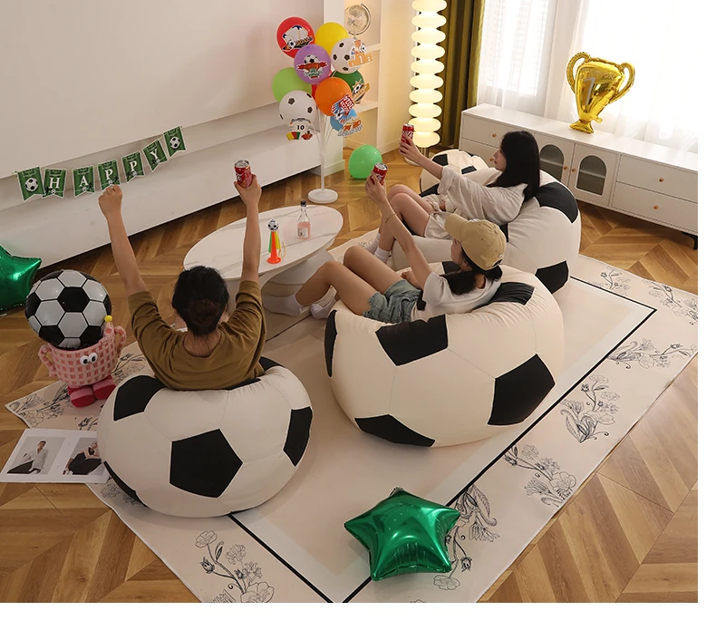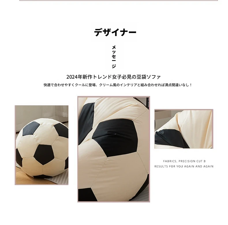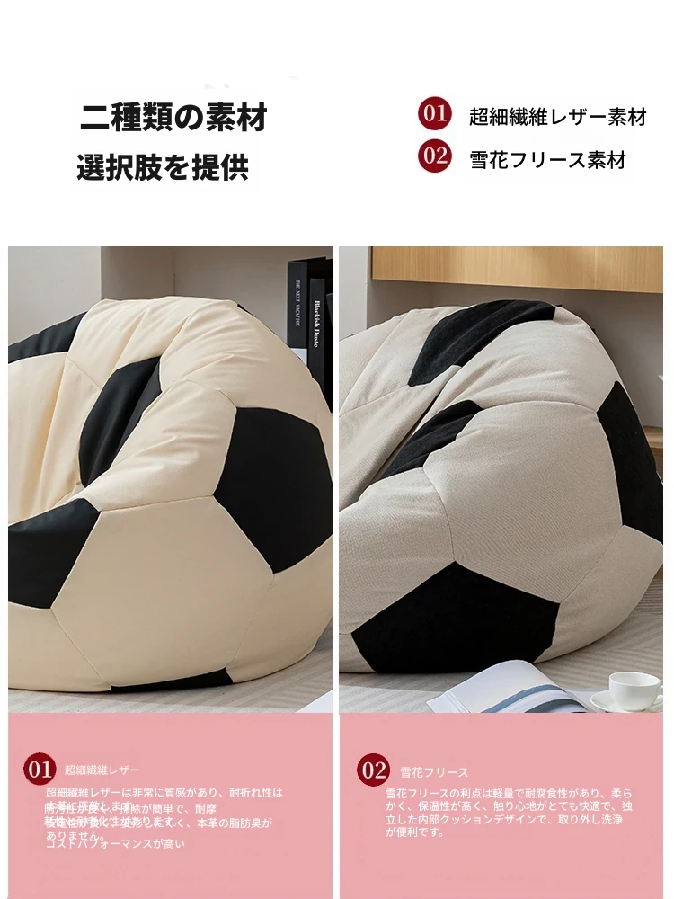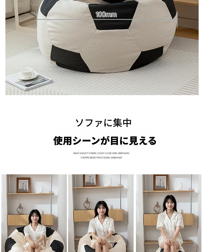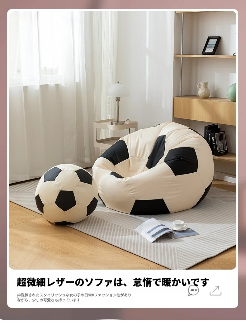 サッカー好き必見!おしゃれで高品質な豆袋ソファー - ワールドカップ気分を楽しむ個性的な子供用タタミソファ。リラックスしながら遊び心満載のデザインで、お部屋を彩ります!