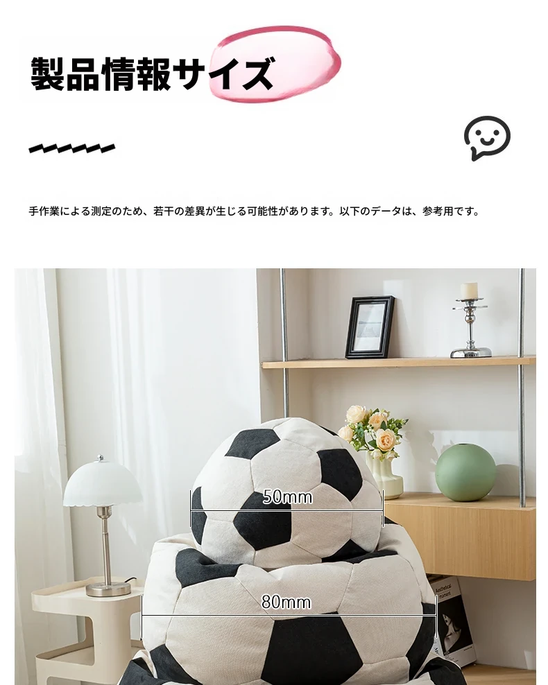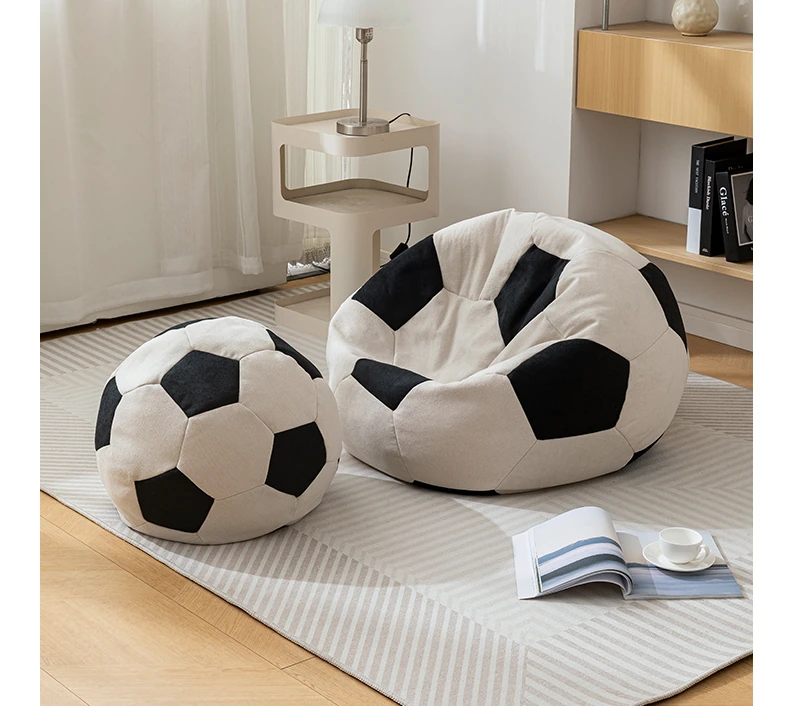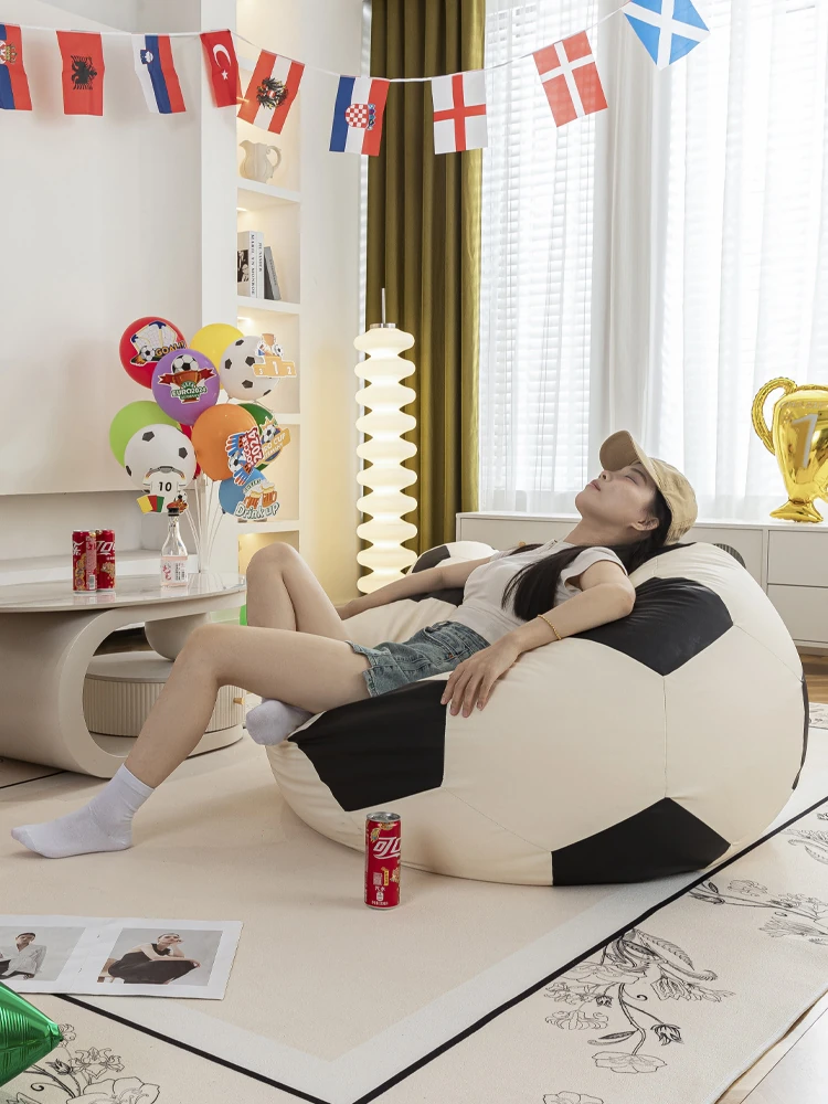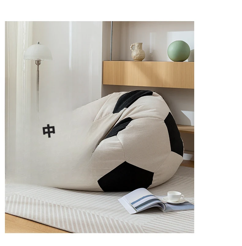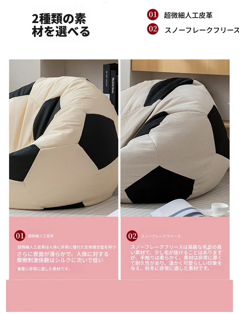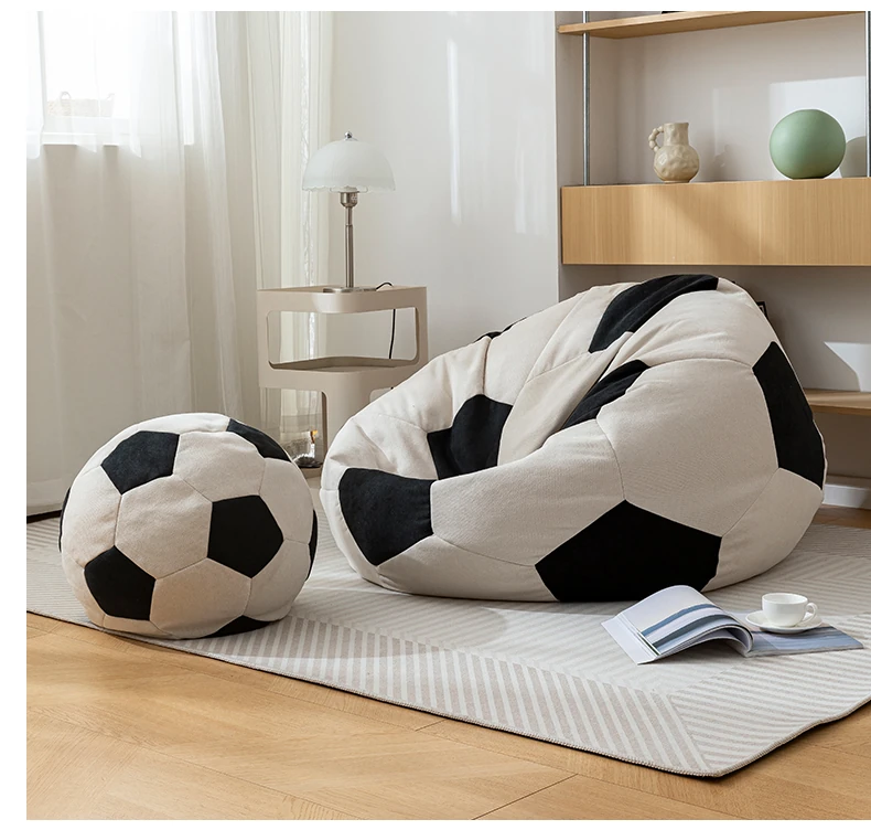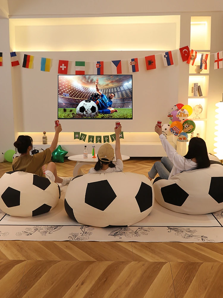 サッカー好き必見!おしゃれで高品質な豆袋ソファー - ワールドカップ気分を楽しむ個性的な子供用タタミソファ。リラックスしながら遊び心満載のデザインで、お部屋を彩ります!