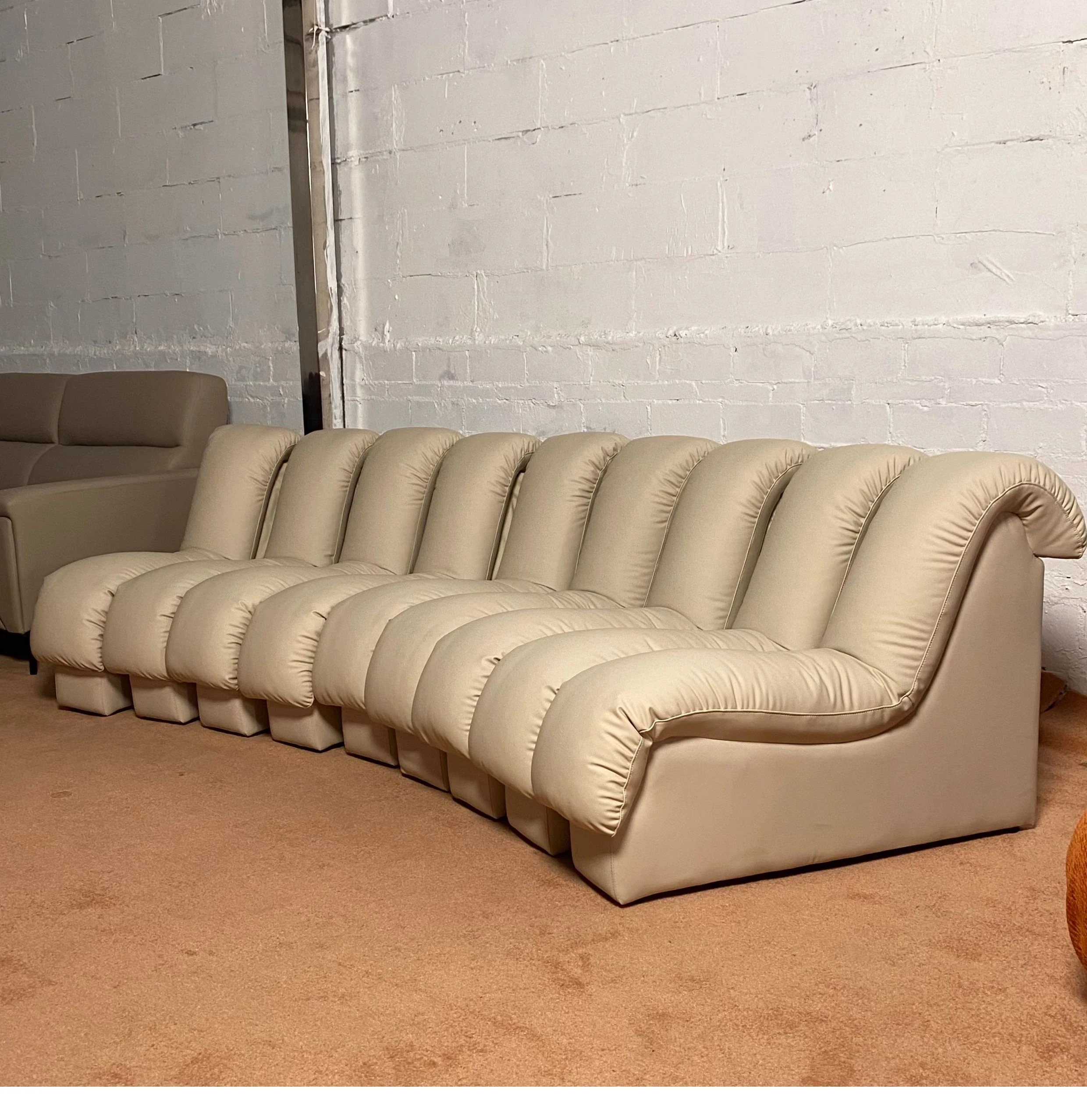曲線美が際立つイタリアンデザインの本革ソファ!モダンでシンプルなS字型、広々とした大空間にぴったりのモジュラー式レザーソファ。おしゃれなリビングに最適な一品です!