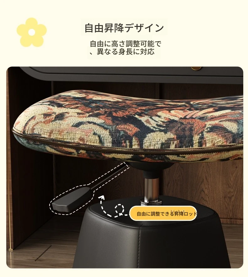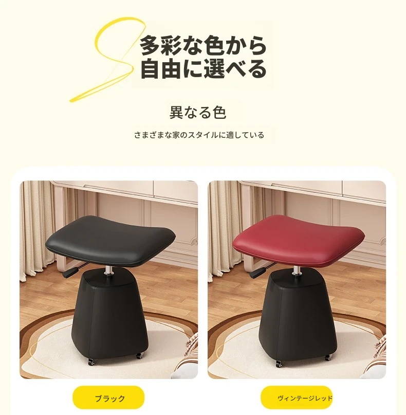 高級感溢れる軽やかなメイクアップスツール|調整可能なドレッサースツール|現代的でシンプルなデザイン|女性の寝室にぴったりな家庭用スツール