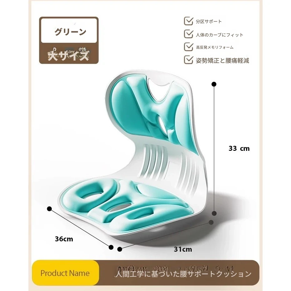 爽やかグリーン-大人用大サイズ【授乳/オフィス/学習用腰当てクッション】