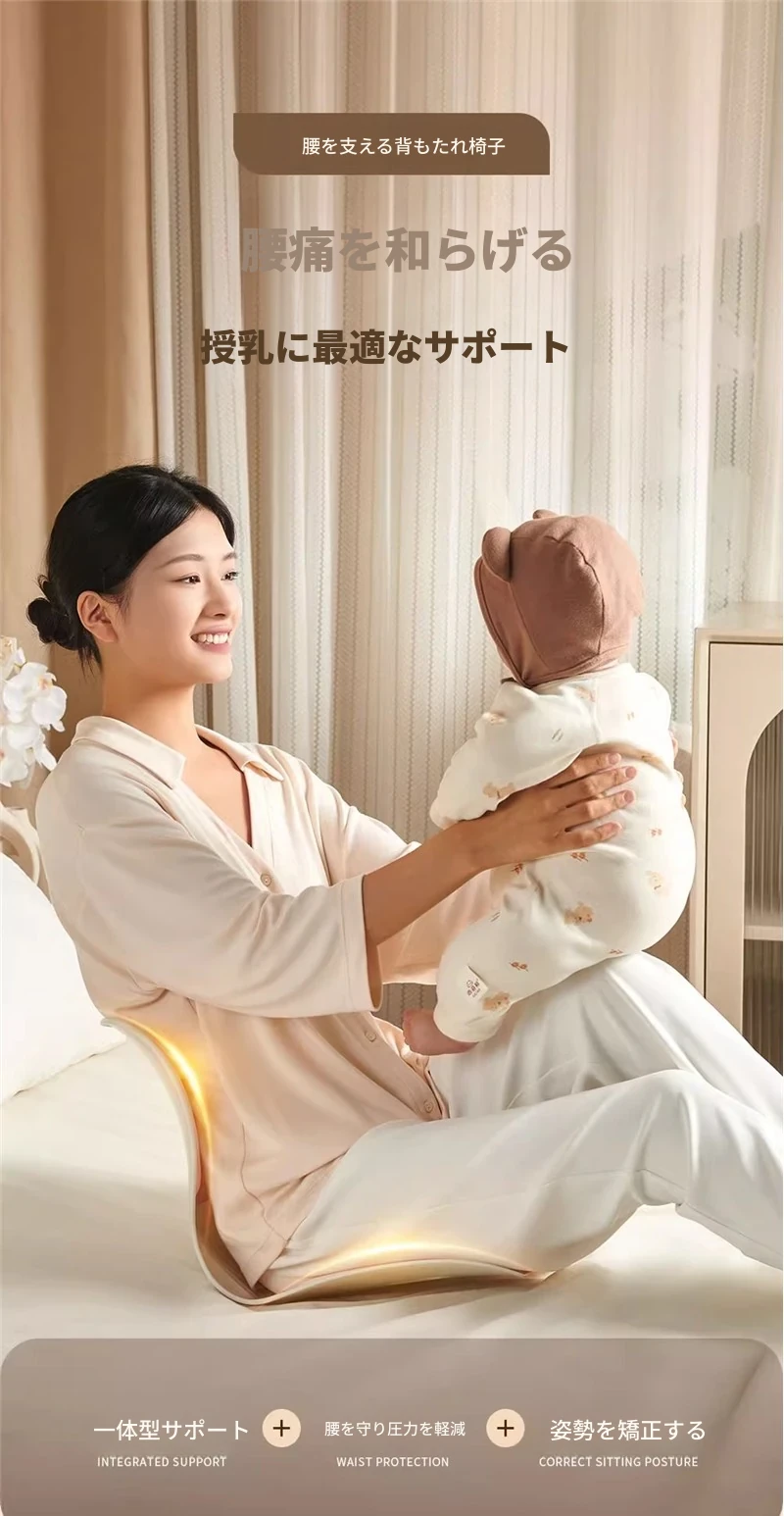 授乳に最適!人間工学デザインの快適な座椅子 - 腰をしっかりサポート!長時間の使用でも疲れにくい、ベッドでの授乳やリラックスタイムにぴったりのクッション付き!