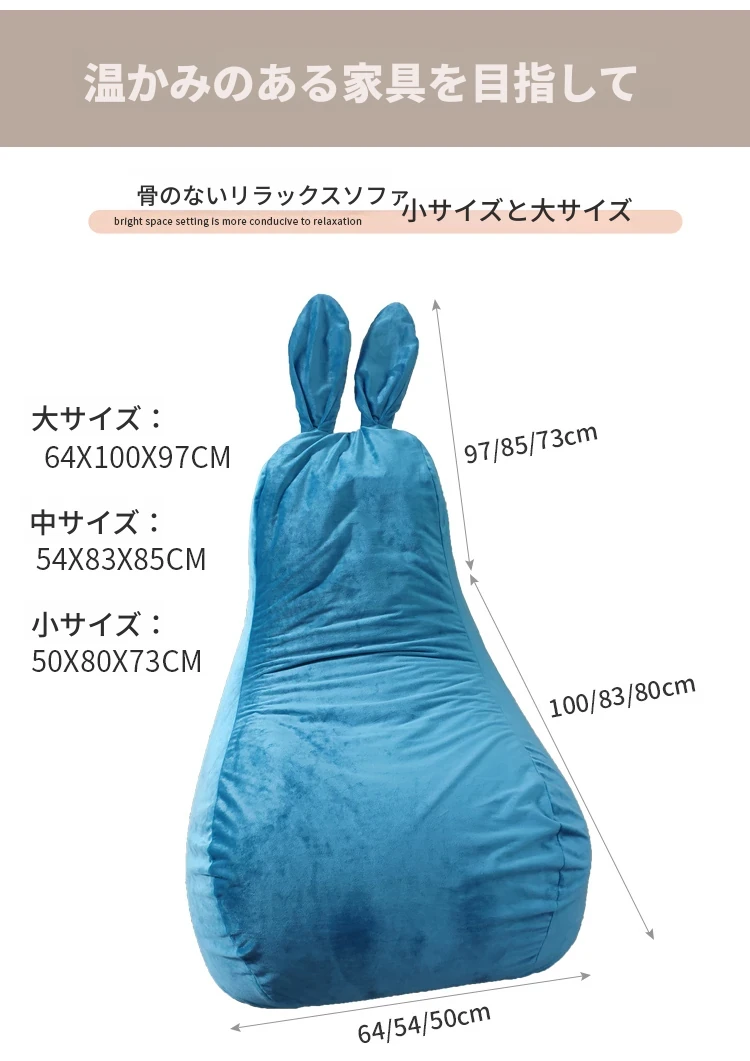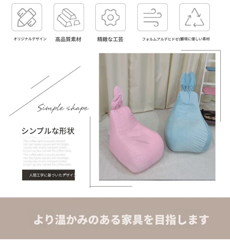 表情豊かな都市スタイルのラウンジソファ!ふわふわのフォームビーズで作られた可愛いウサギのデザイン。お子様のお部屋にぴったりのギフトアイテム、リラックスできる休憩椅子です!